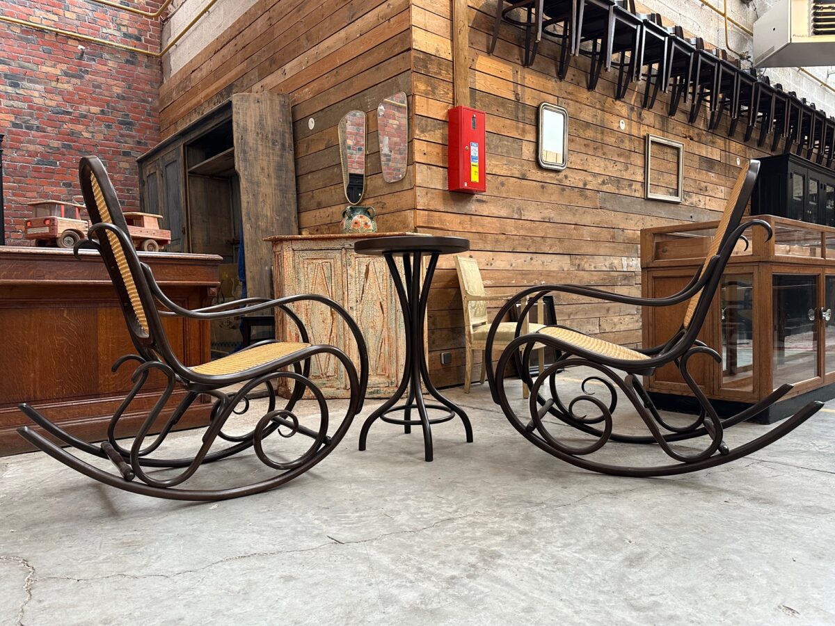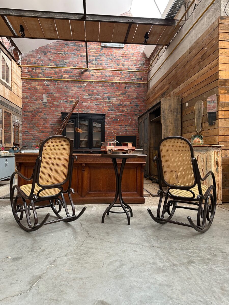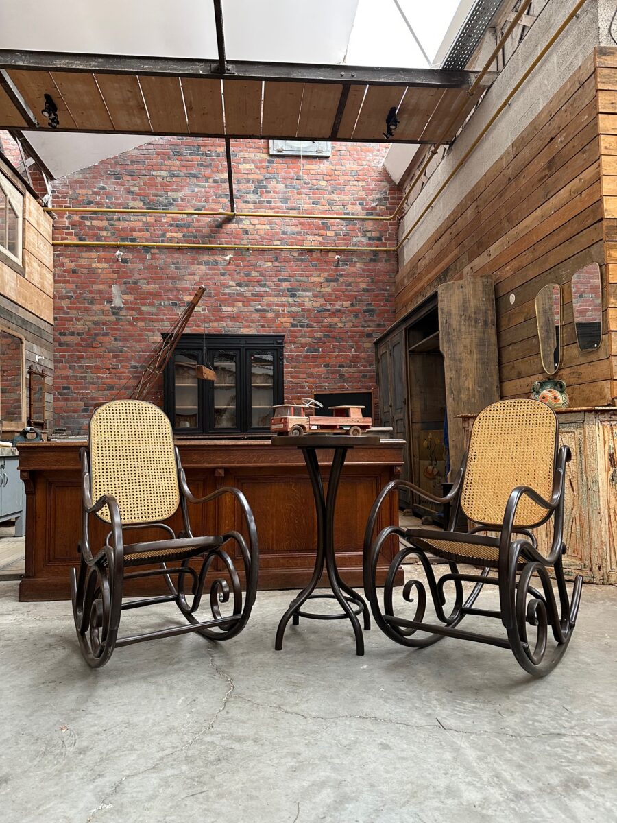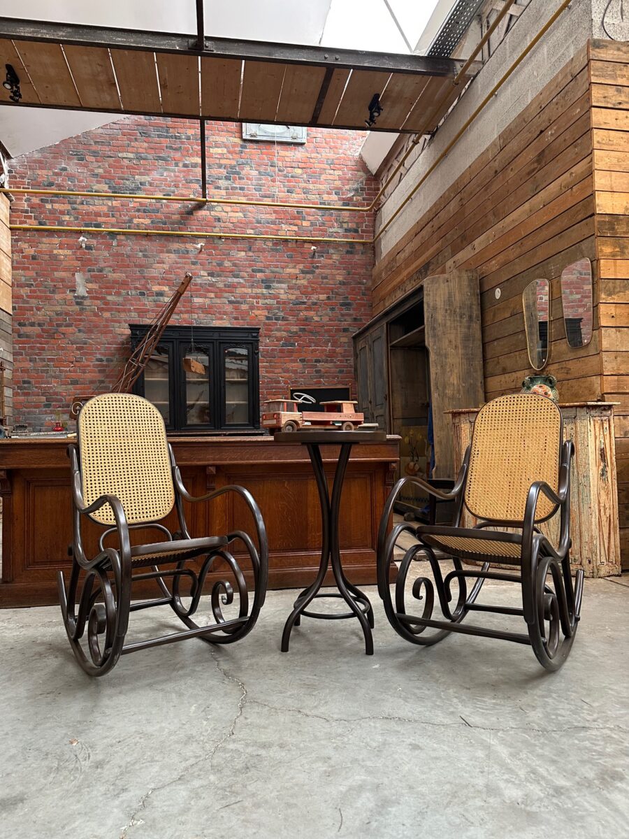 Magnifique ensemble de la marque THONET composé de 2 rocking chair et d’un guéridon