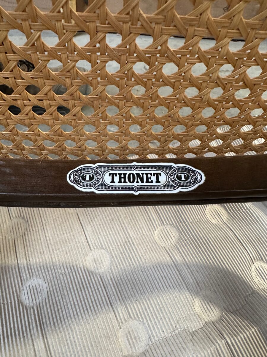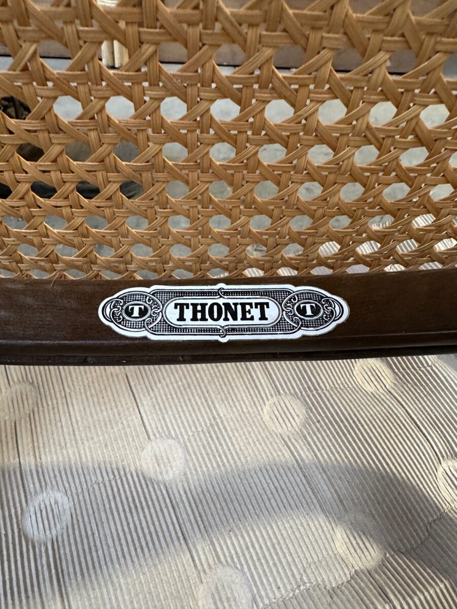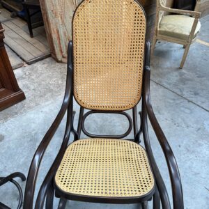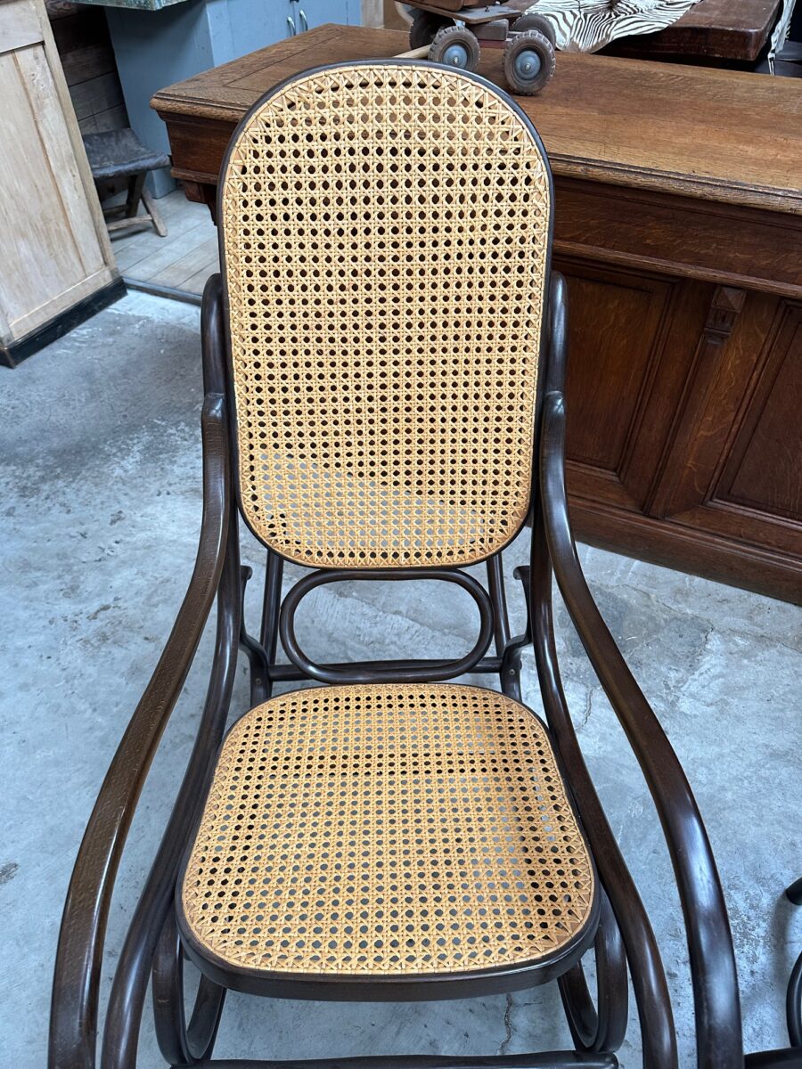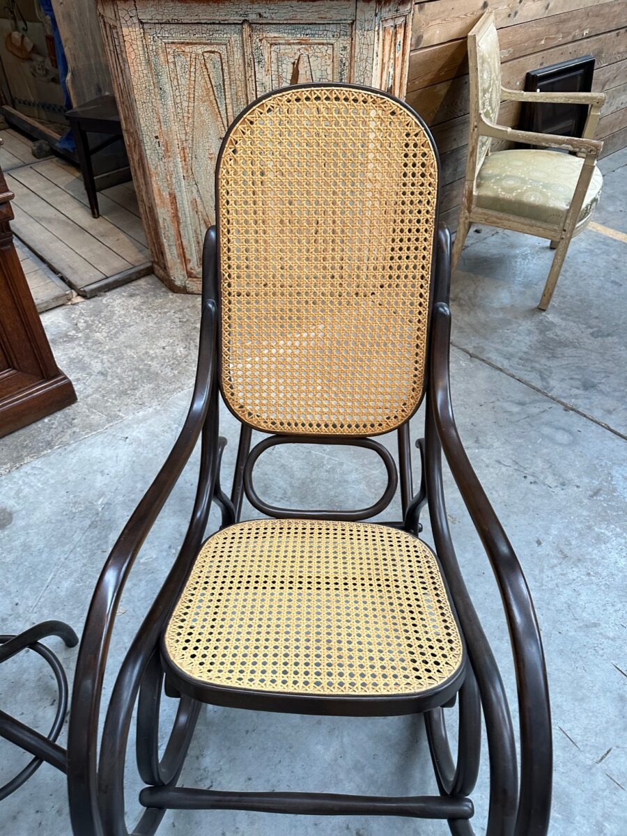 Les rocking chair, emblématiques de la marque, sont en bois tourné et cannage (très bon état)