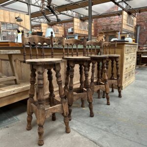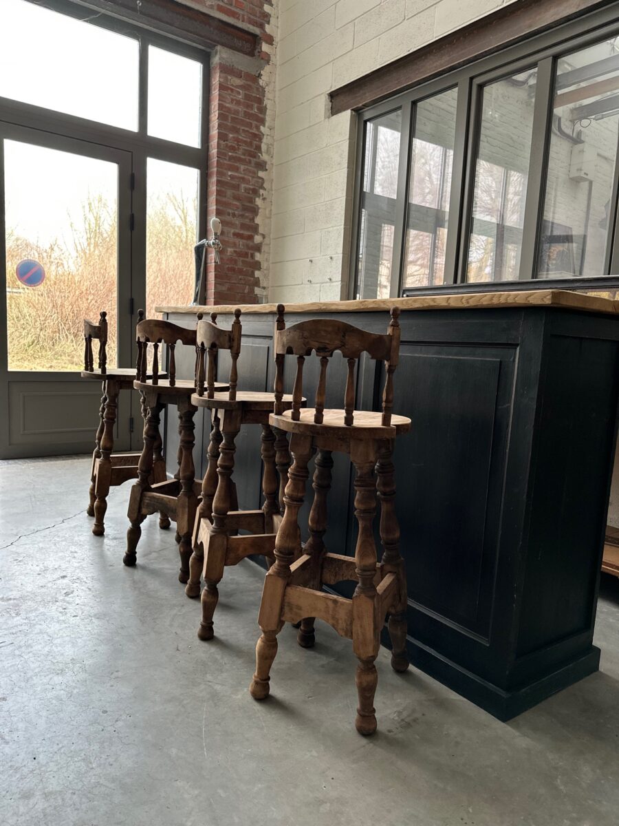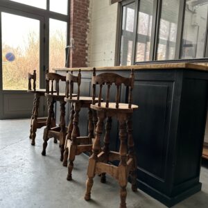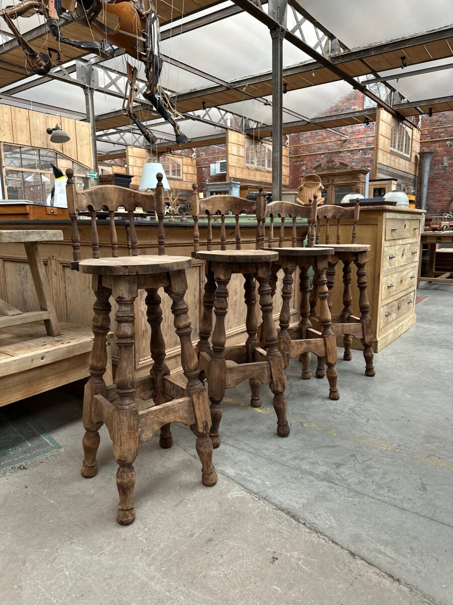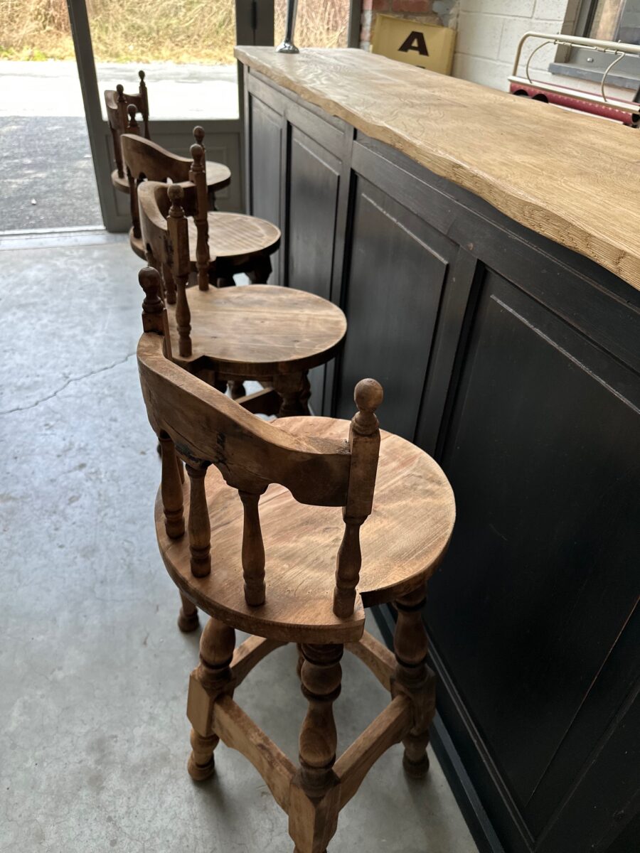 Série de 4 tabourets de bar à dossiers, de style brutaliste, en hêtre, datant des années 60