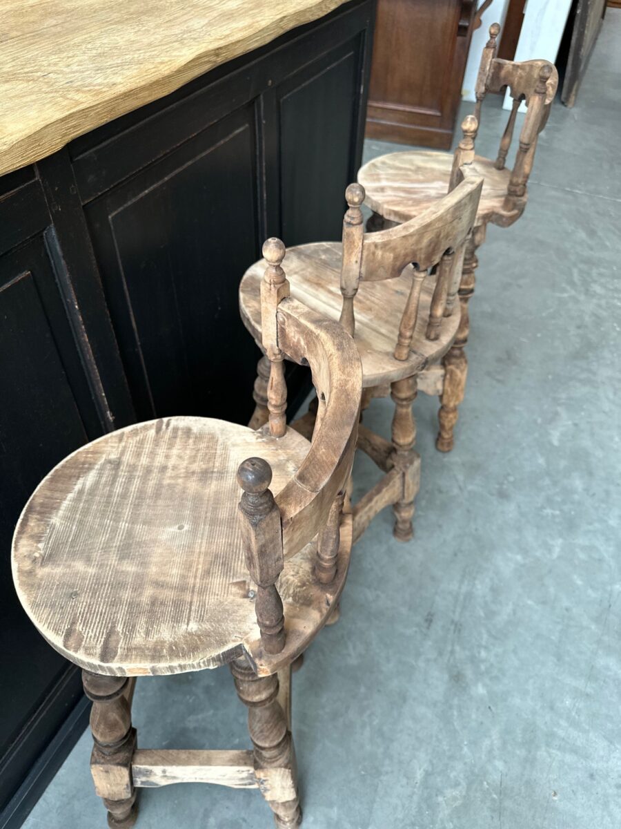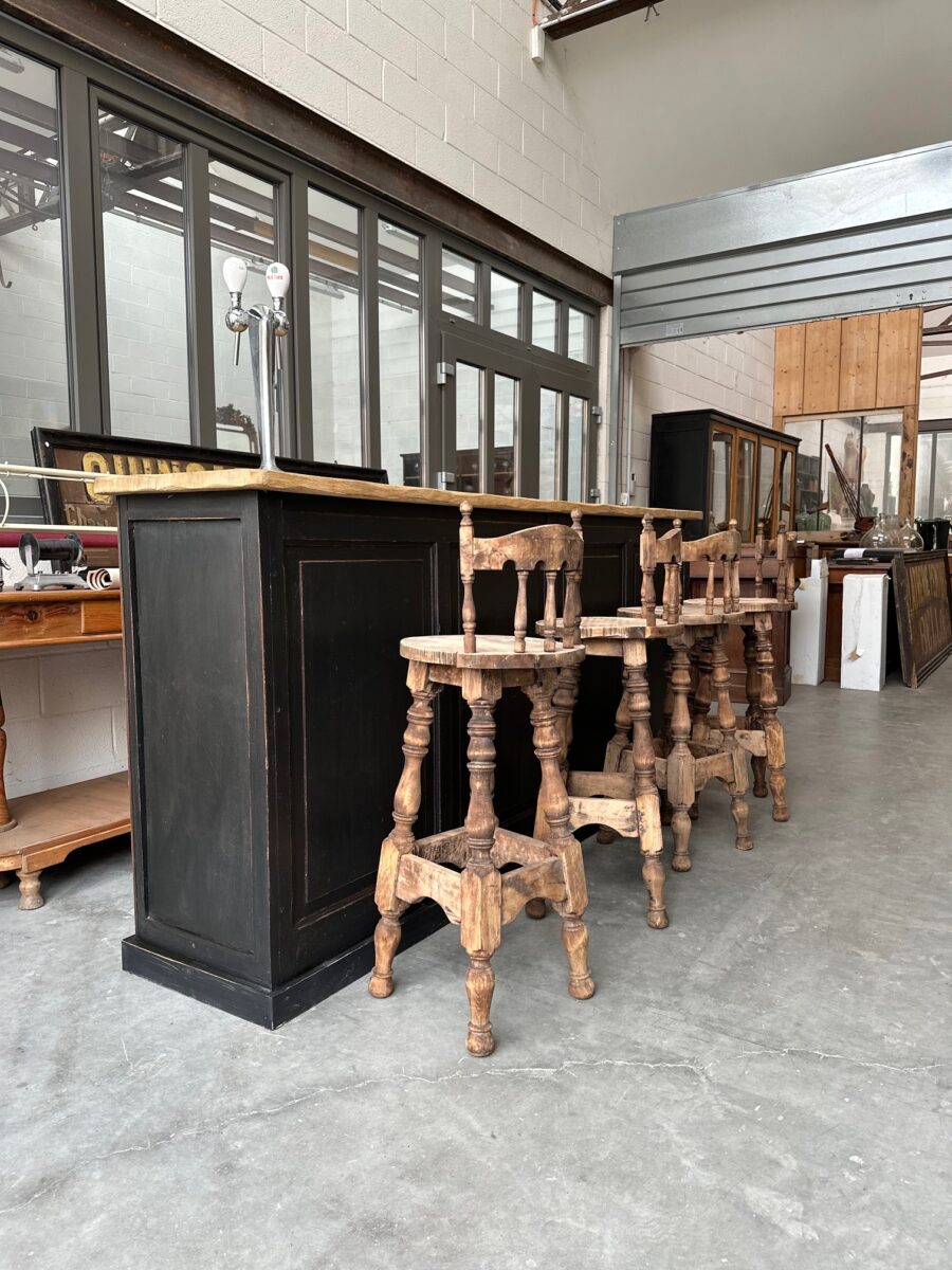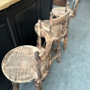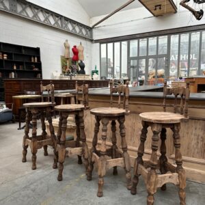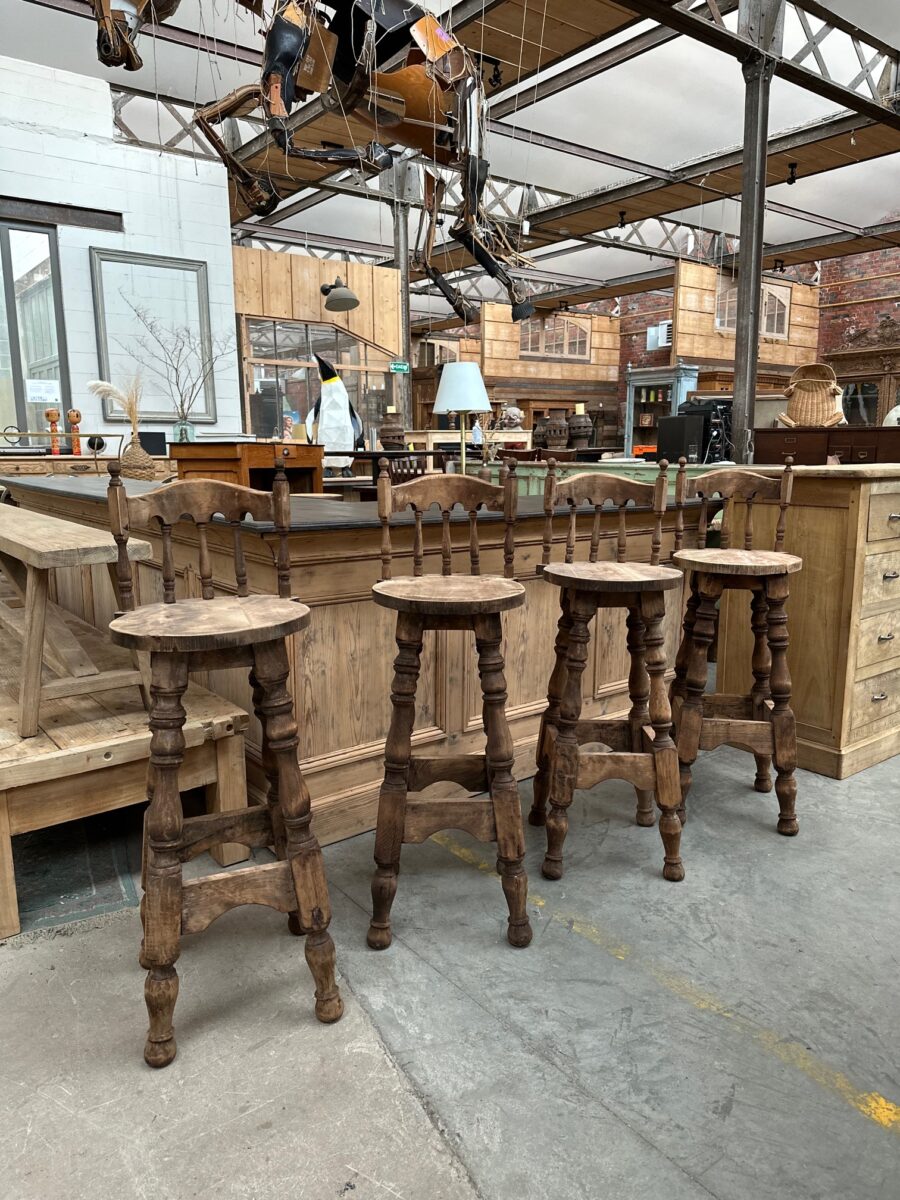 Série de 4 tabourets de bar à dossiers, de style brutaliste, en hêtre, datant des années 60