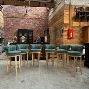 Leurs dossiers et assises sont en alcantara et leurs piètements sont en bois clair et métal.