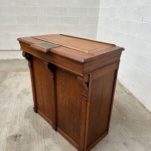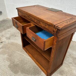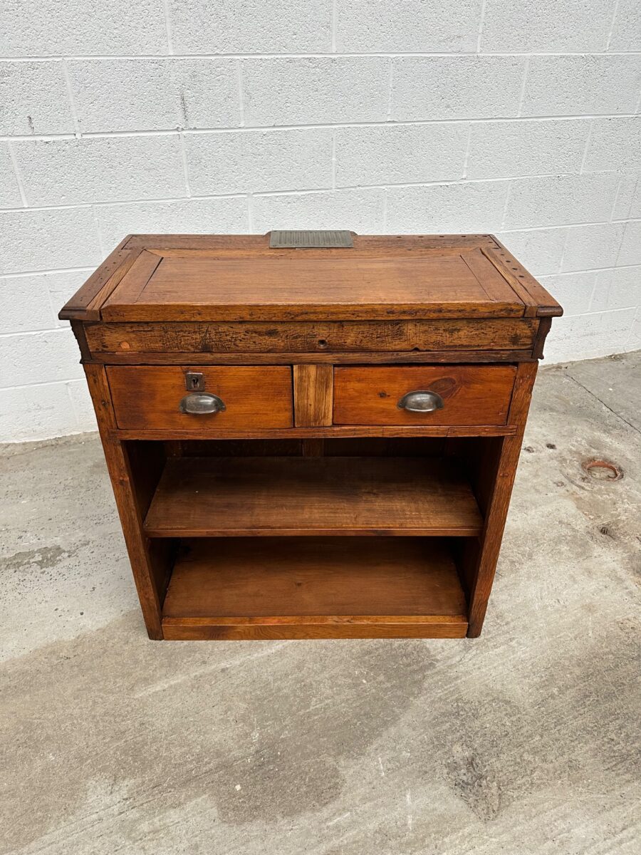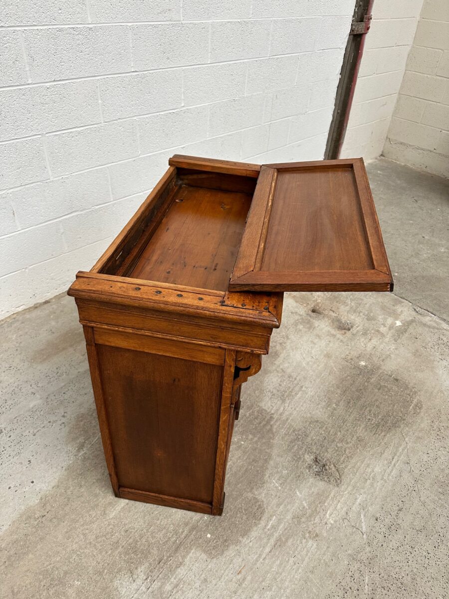 Cet ancien comptoir d’accueil en chêne massif a été entièrement restauré