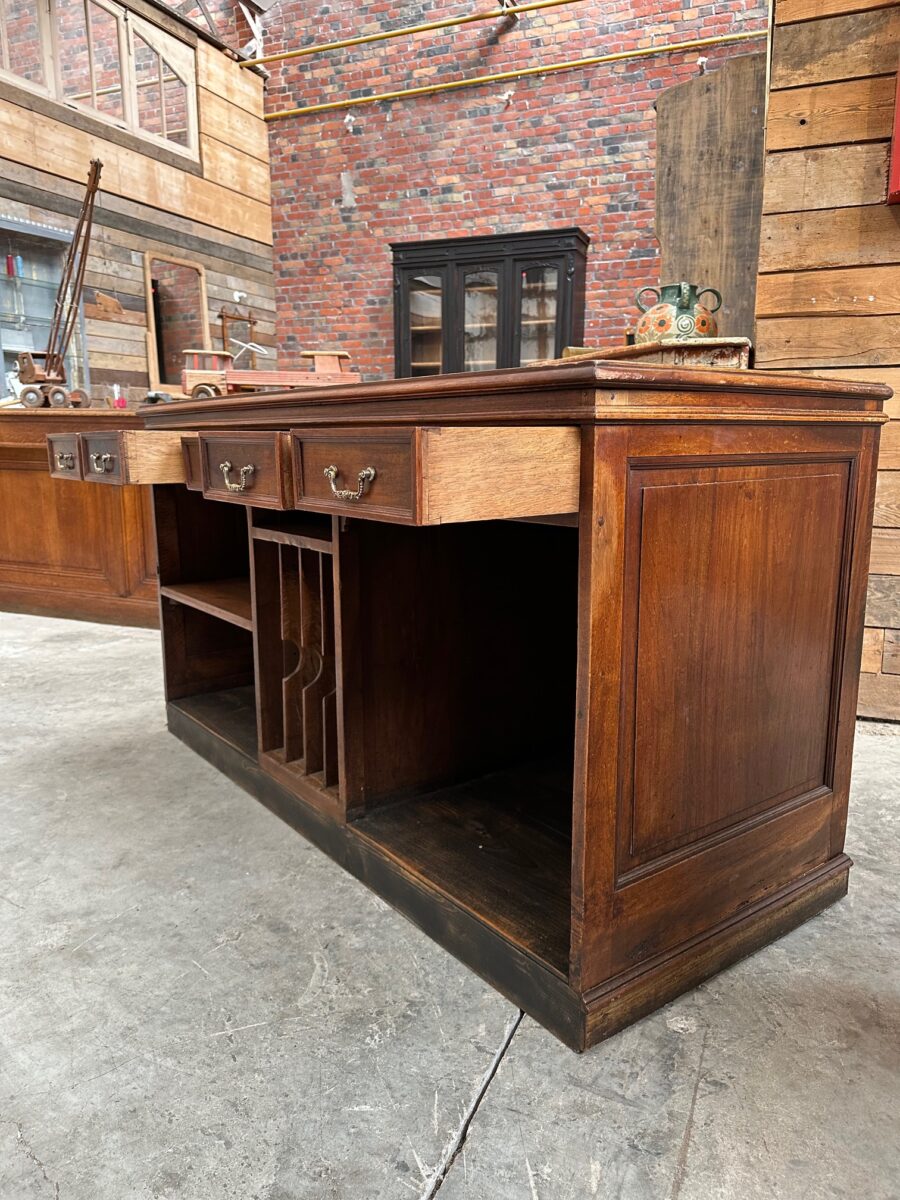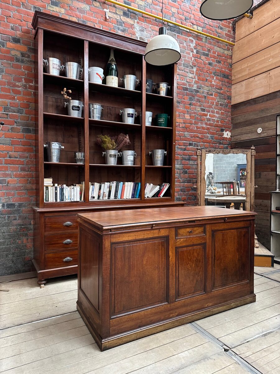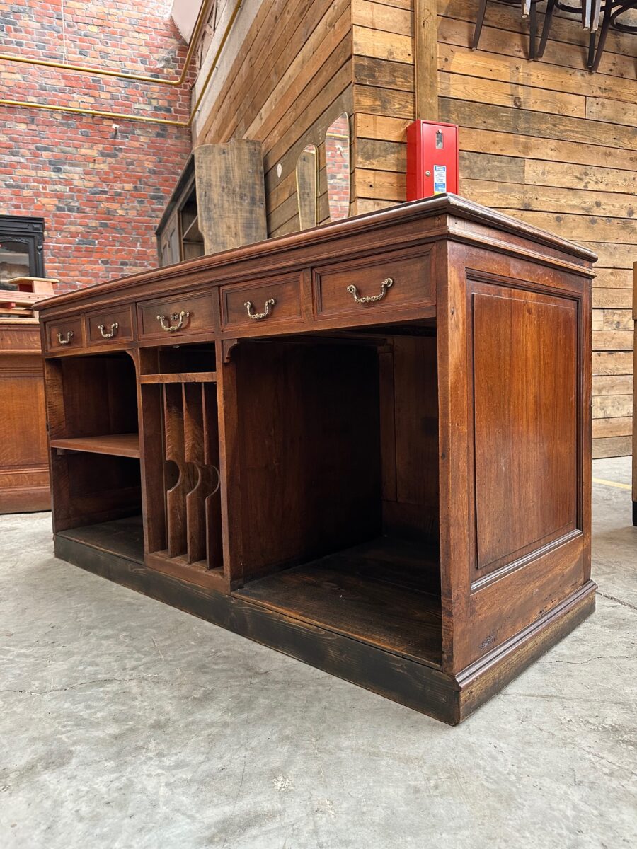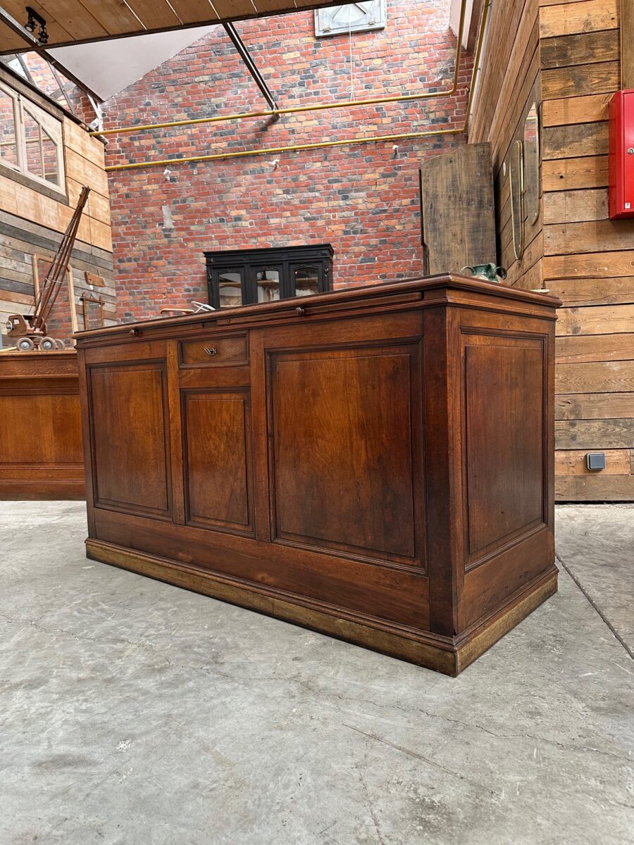 Cet ancien comptoir de banque en noyer a été entièrement restauré