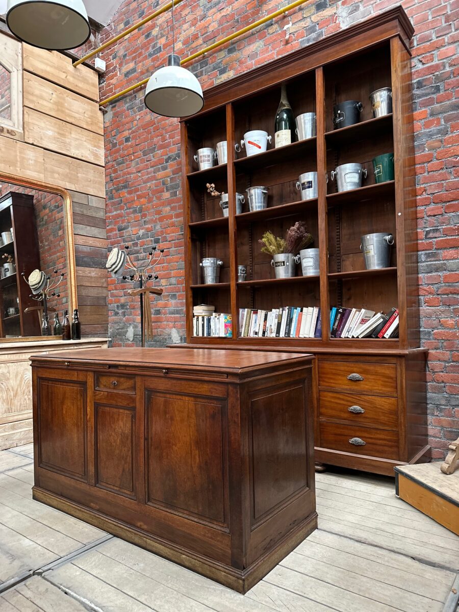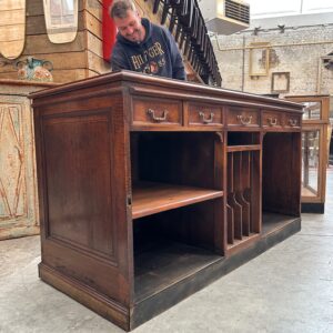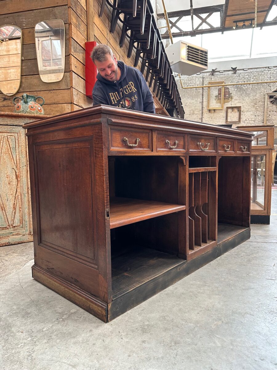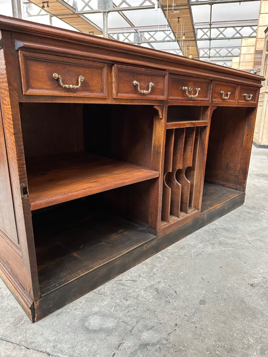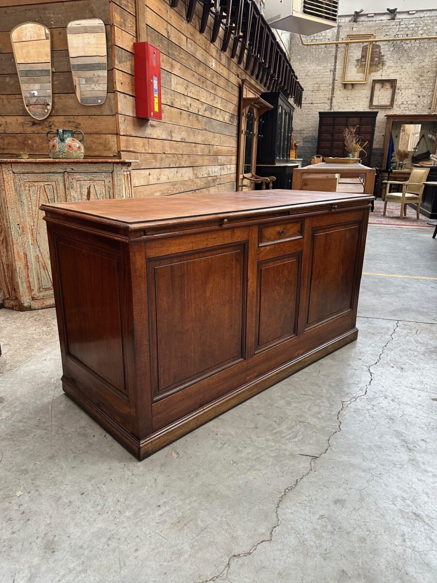 Cet ancien comptoir de banque en noyer a été entièrement restauré