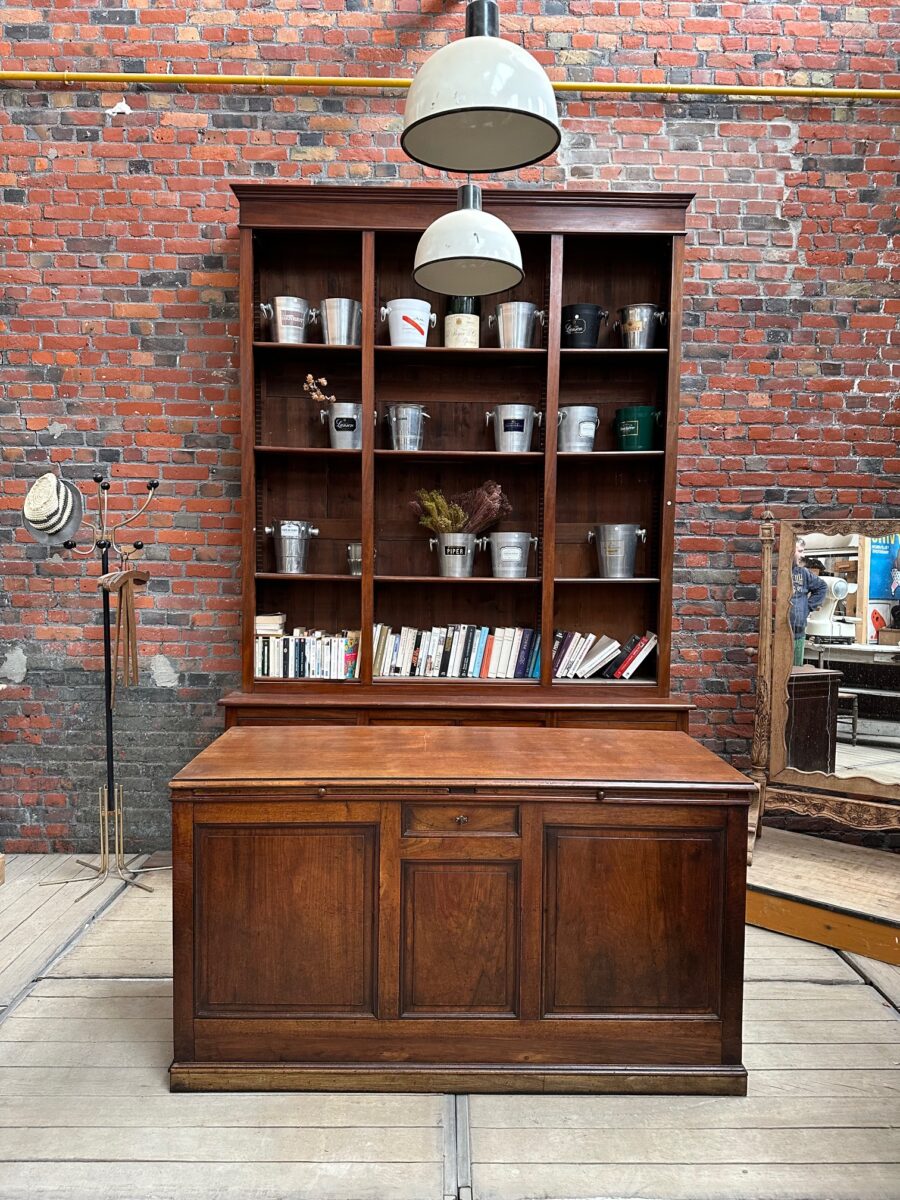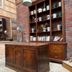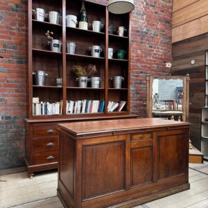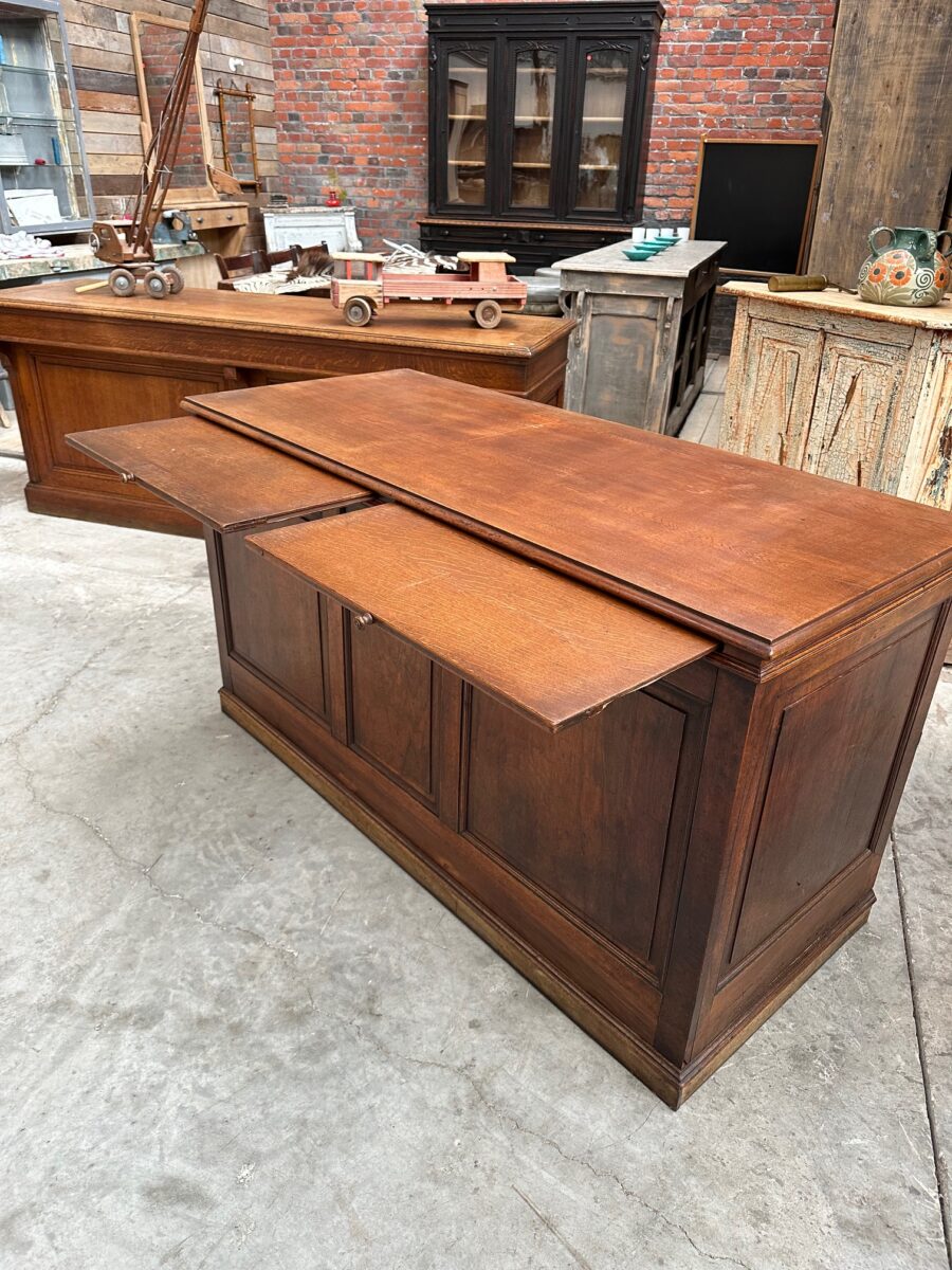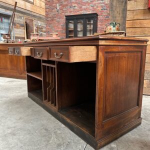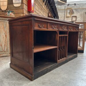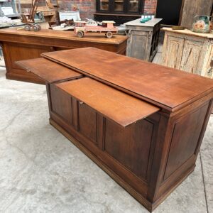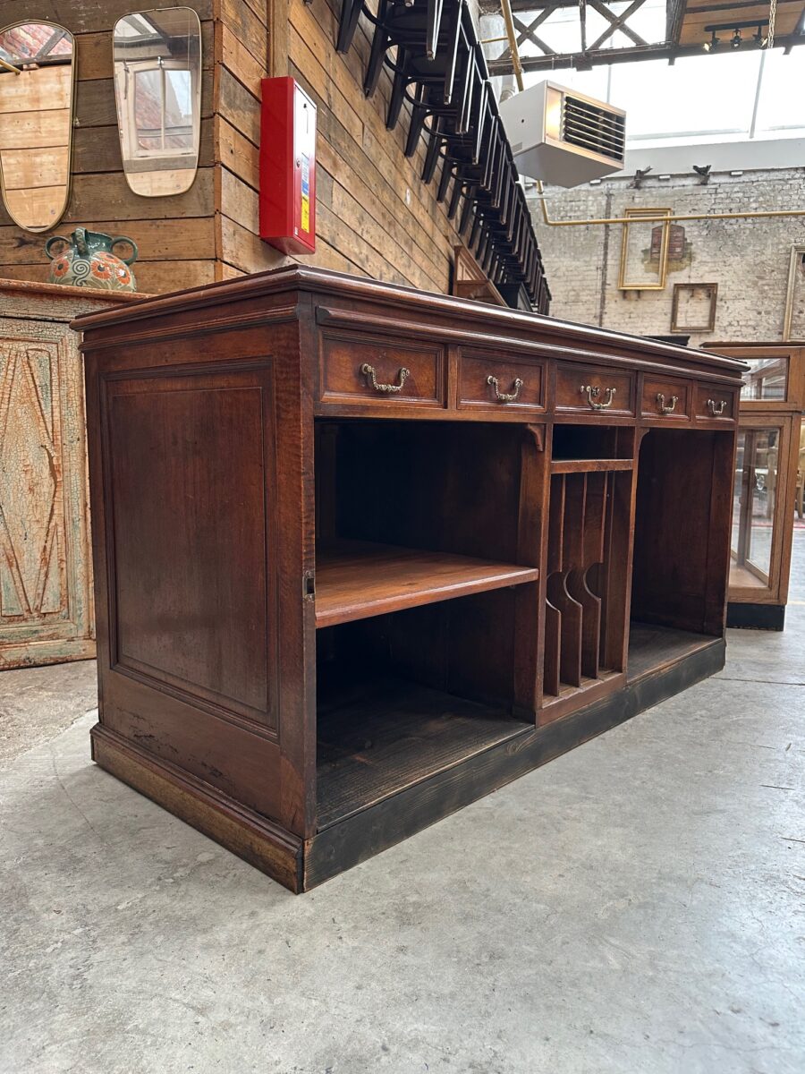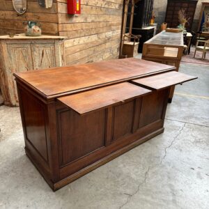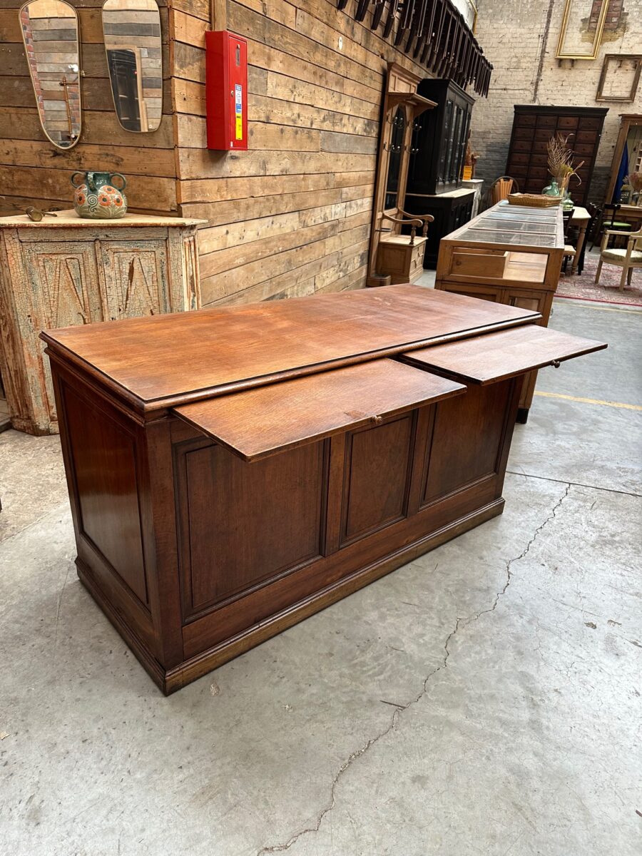 Cet ancien comptoir de banque en noyer a été entièrement restauré