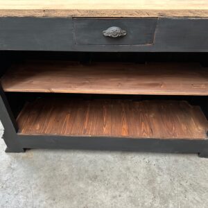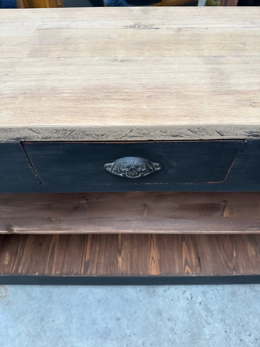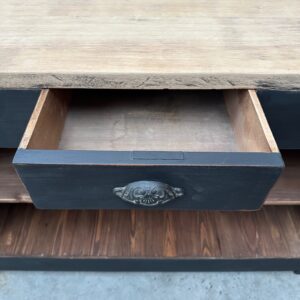 A l’arrière, il dispose d’un petit tiroir fonctionnel doté d’une poignée coquille et de 2 énormes espaces de stockages ouverts.