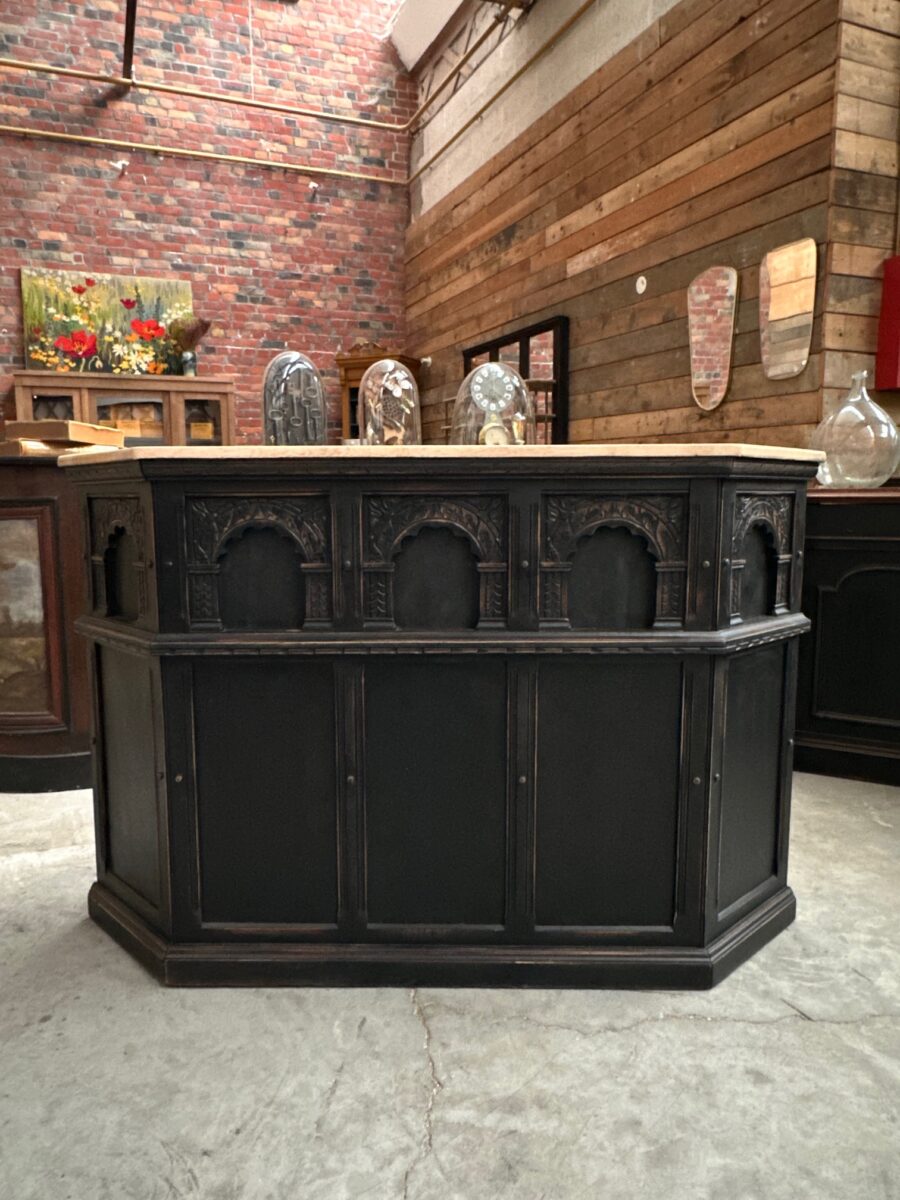 Cet ancien comptoir de bar en chêne a été entièrement restauré