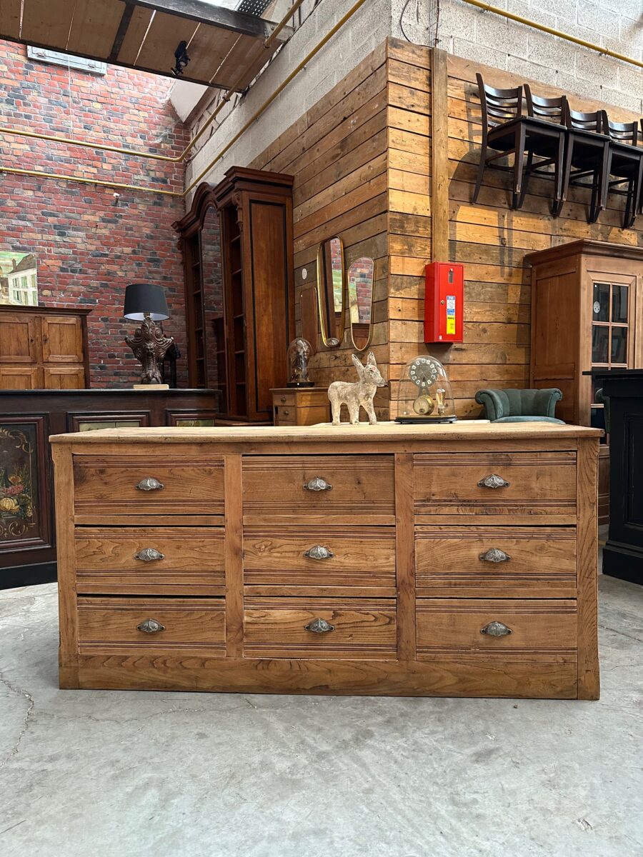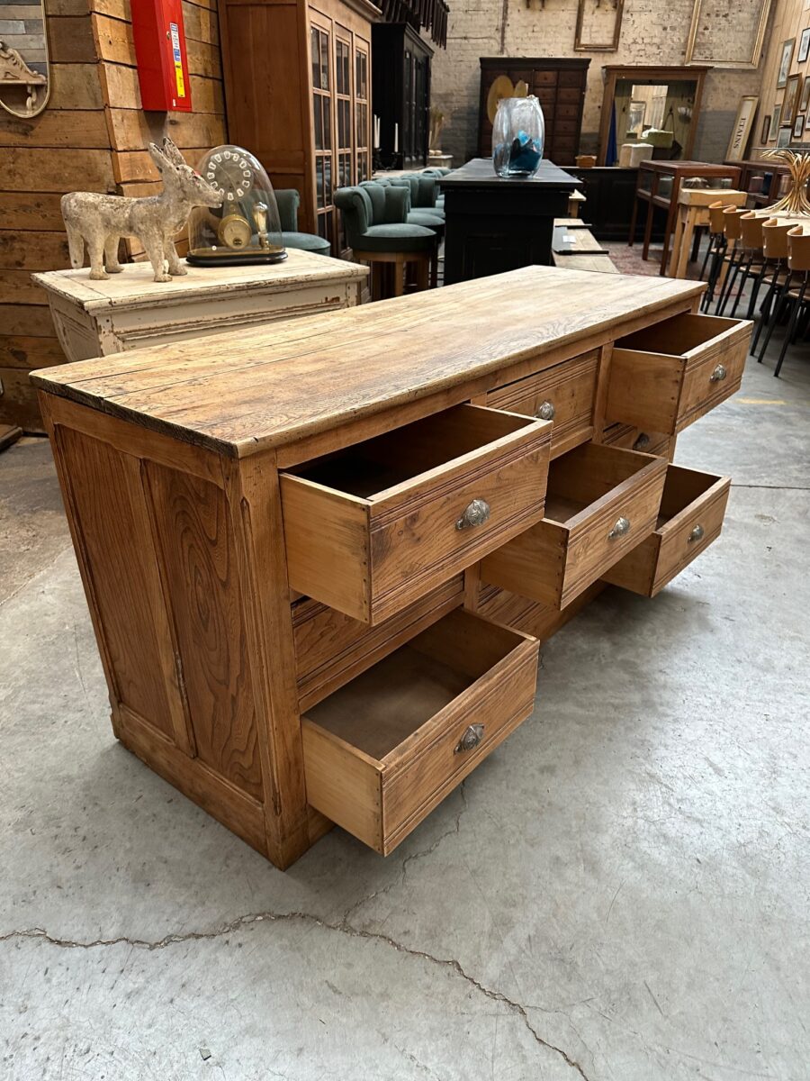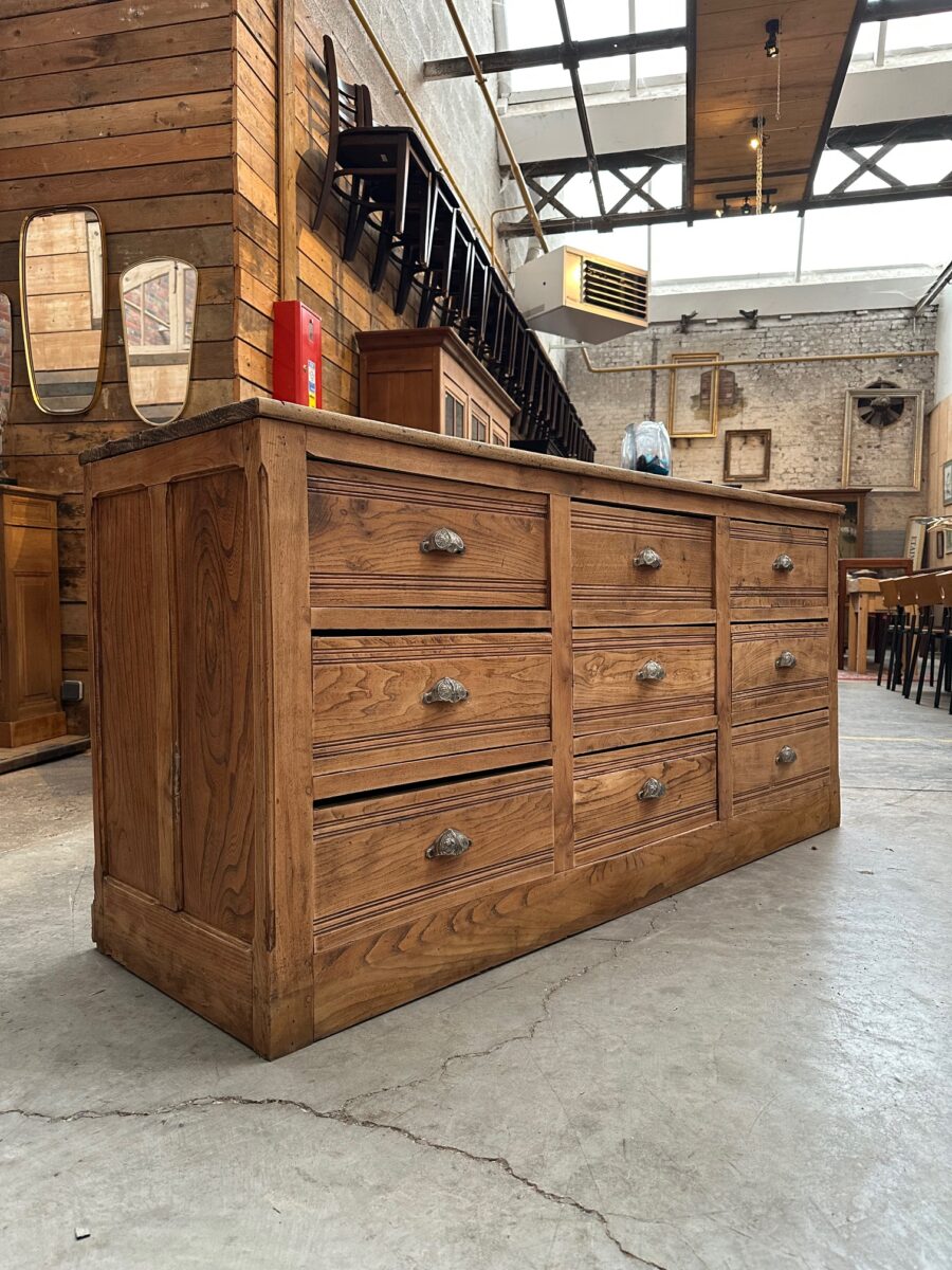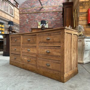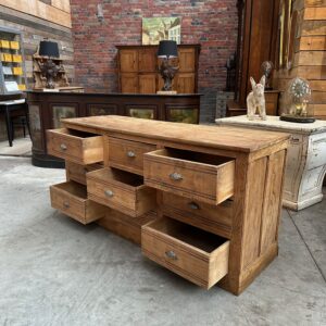 A l’arrière, il dispose de 9 grands tiroirs parfaitement fonctionnels dotés de poignées coquilles.