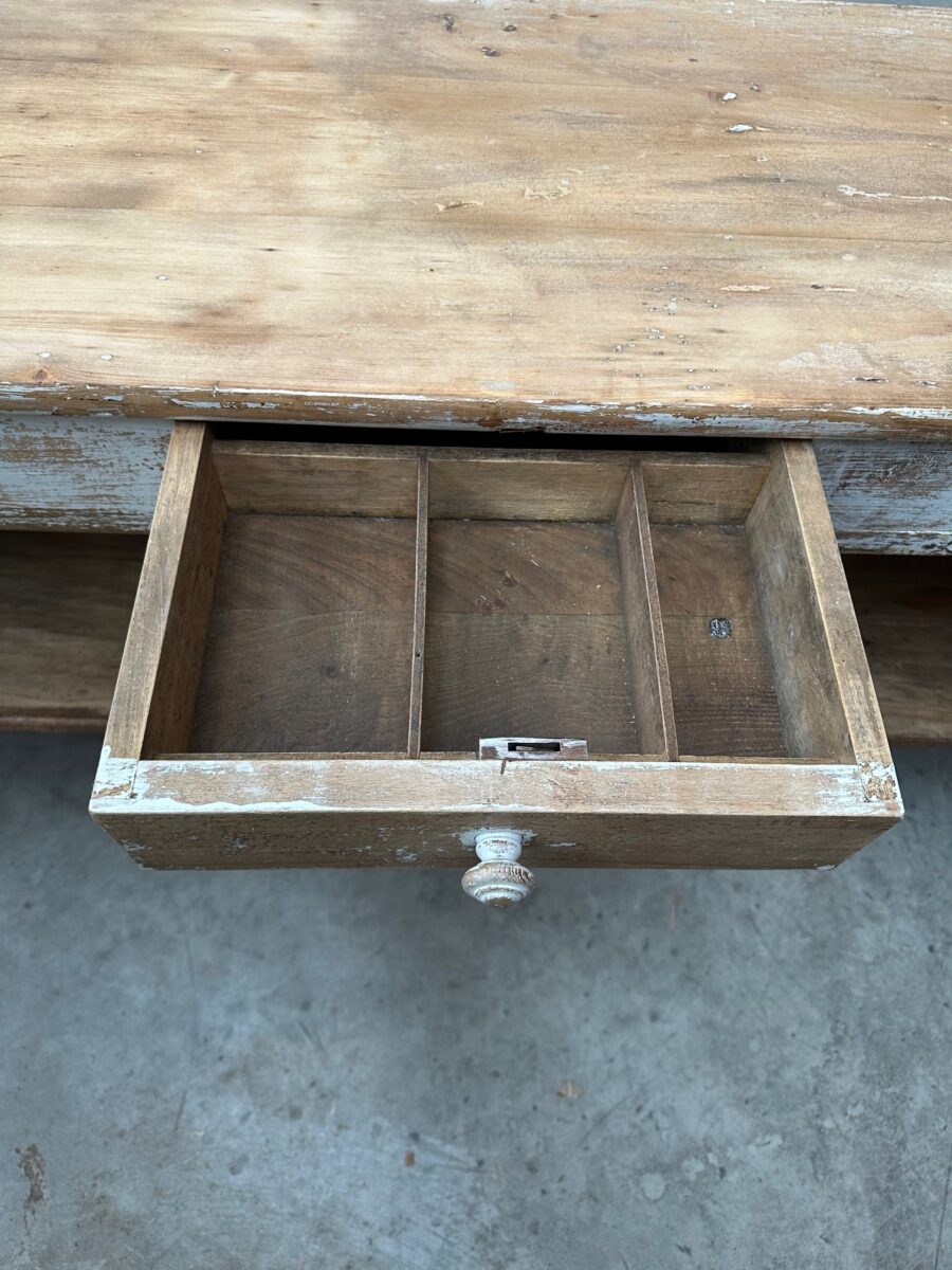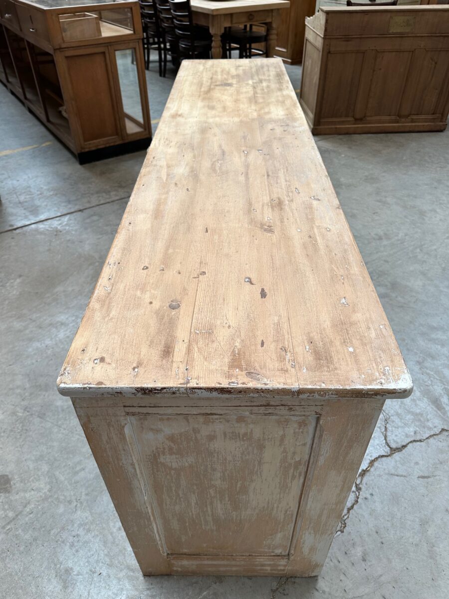 Cet ancien comptoir de fleuriste patiné a été entièrement restauré