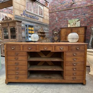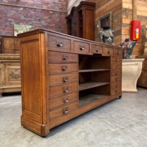 Comptoir de quincaillier en chêne début XXème