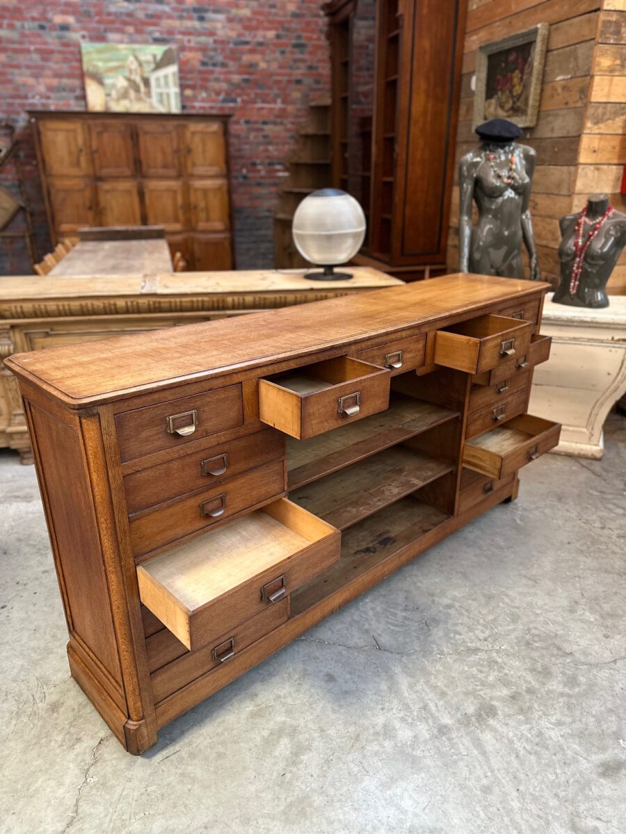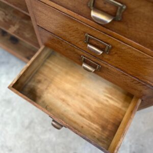 Il dispose de 17 tiroirs parfaitement fonctionnels rehaussés de poignées porte étiquette