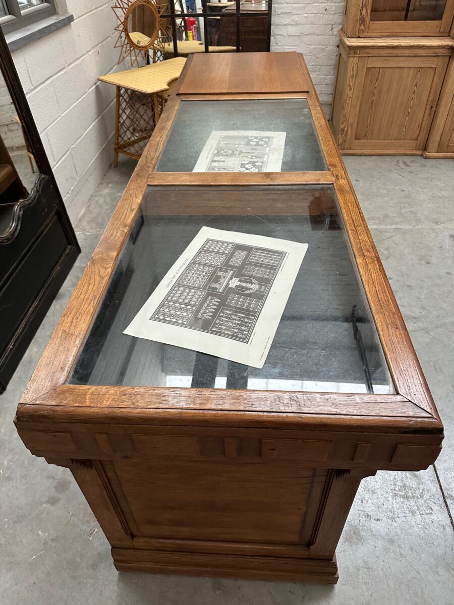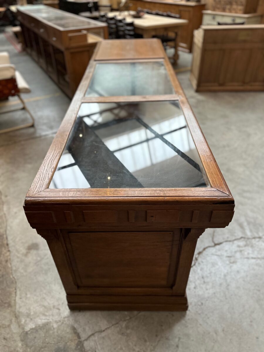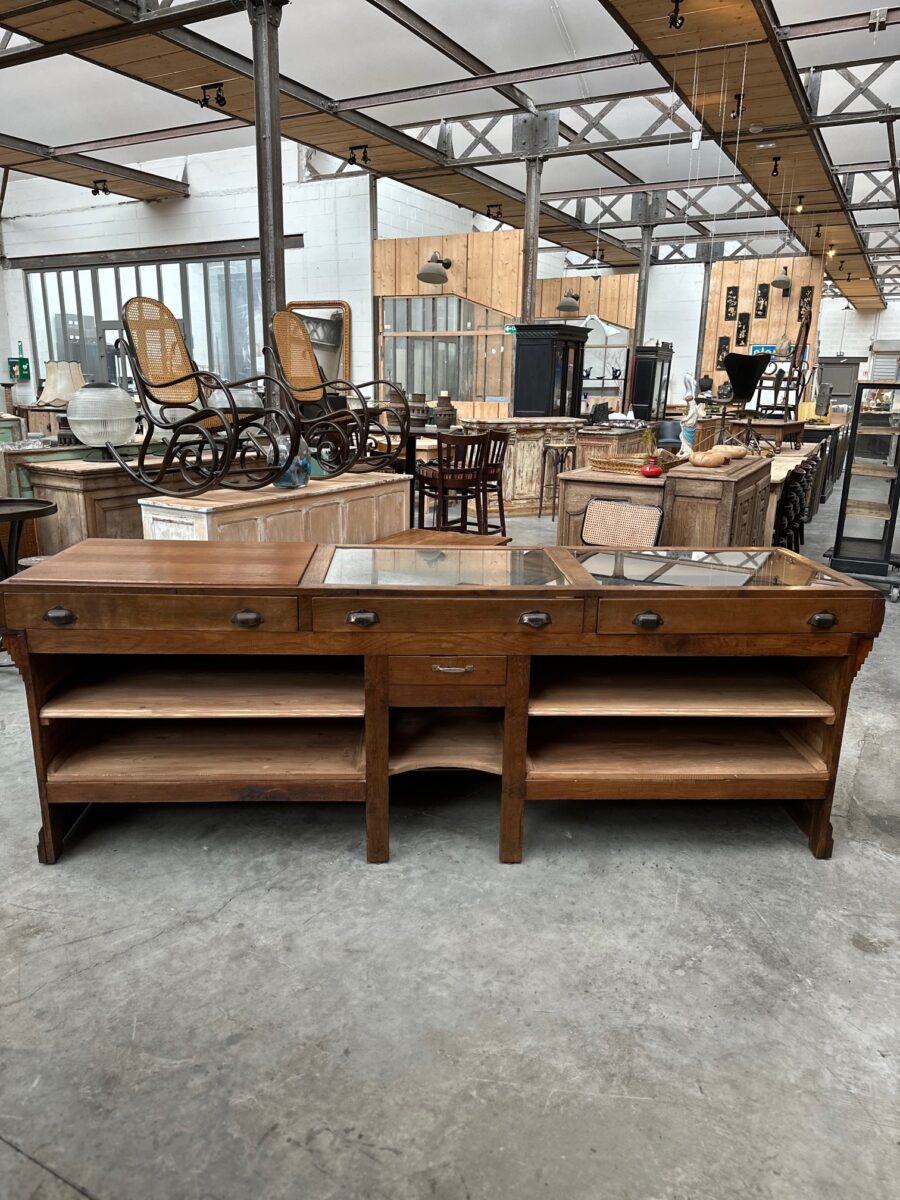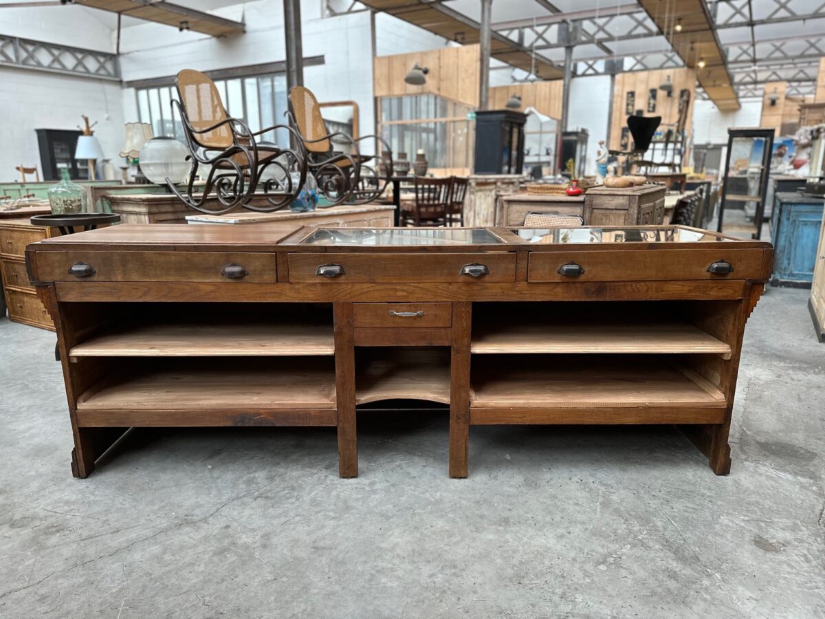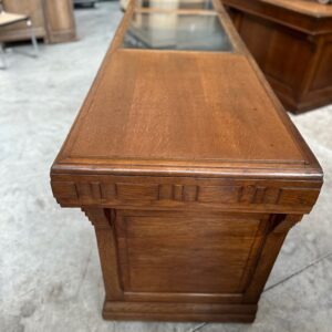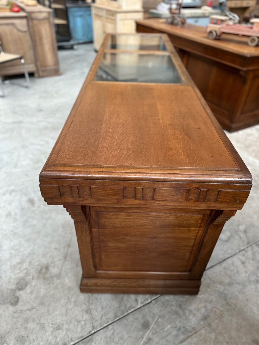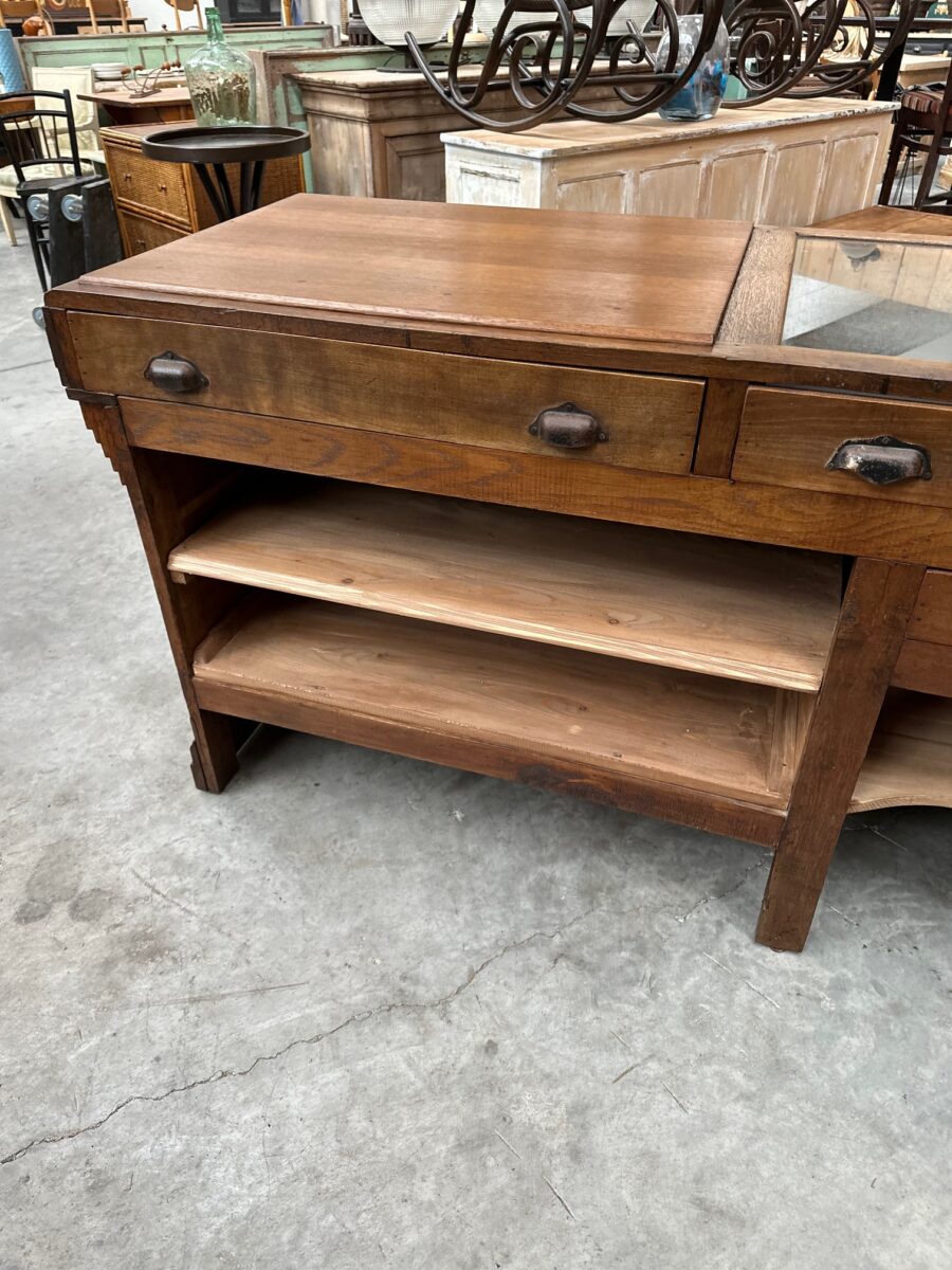 Cette pièce incroyable dispose d’un plateau doté de vitrines sur les 2/3, accessibles par des tiroirs.