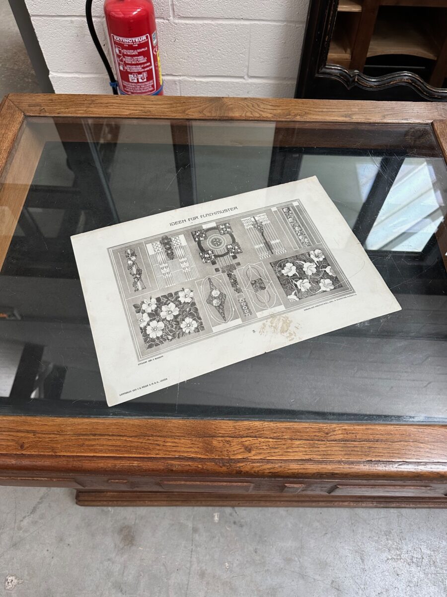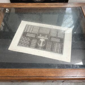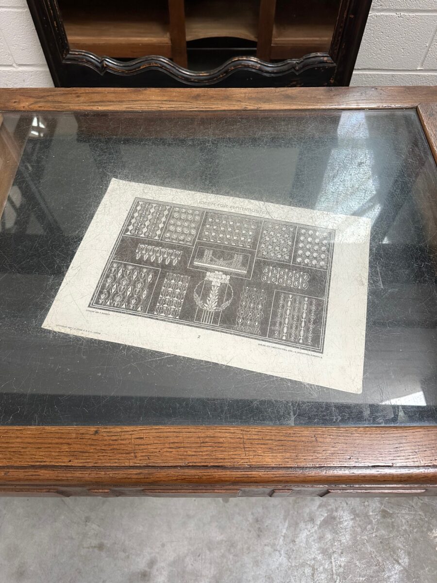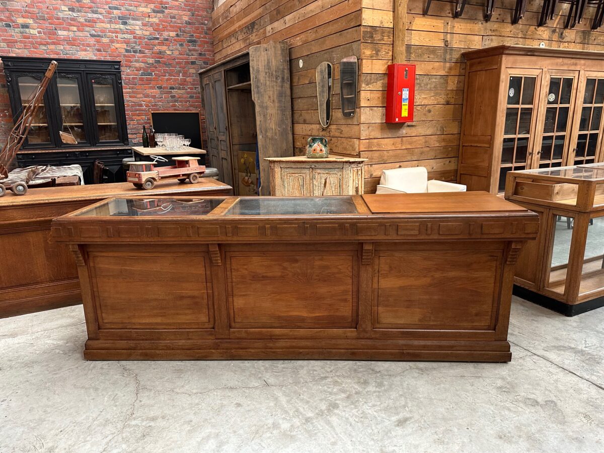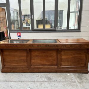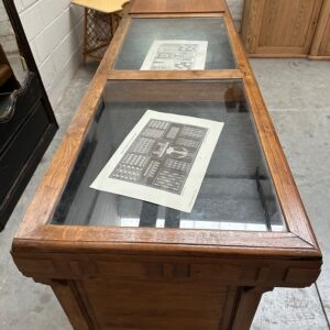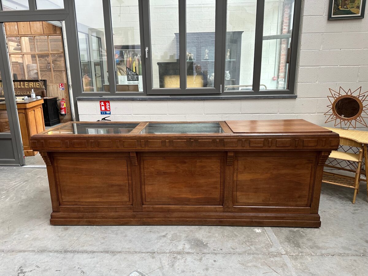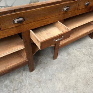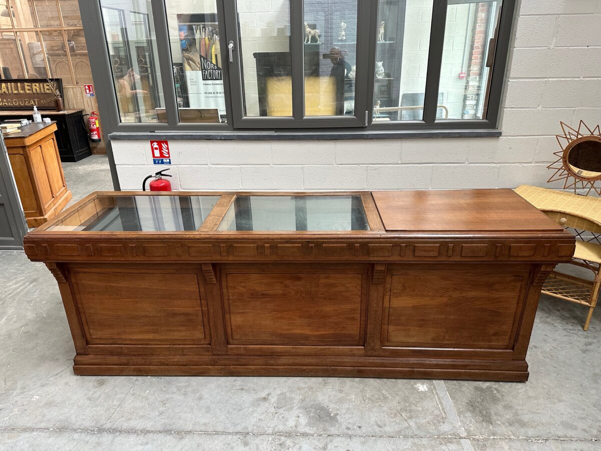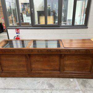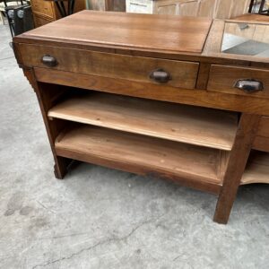 Cette pièce incroyable dispose d’un plateau doté de vitrines sur les 2/3, accessibles par des tiroirs.