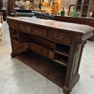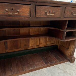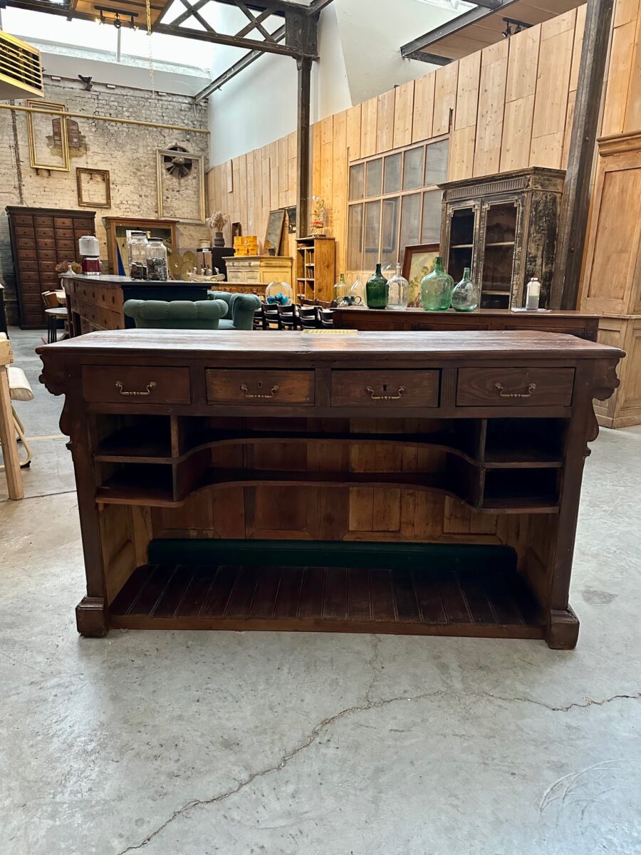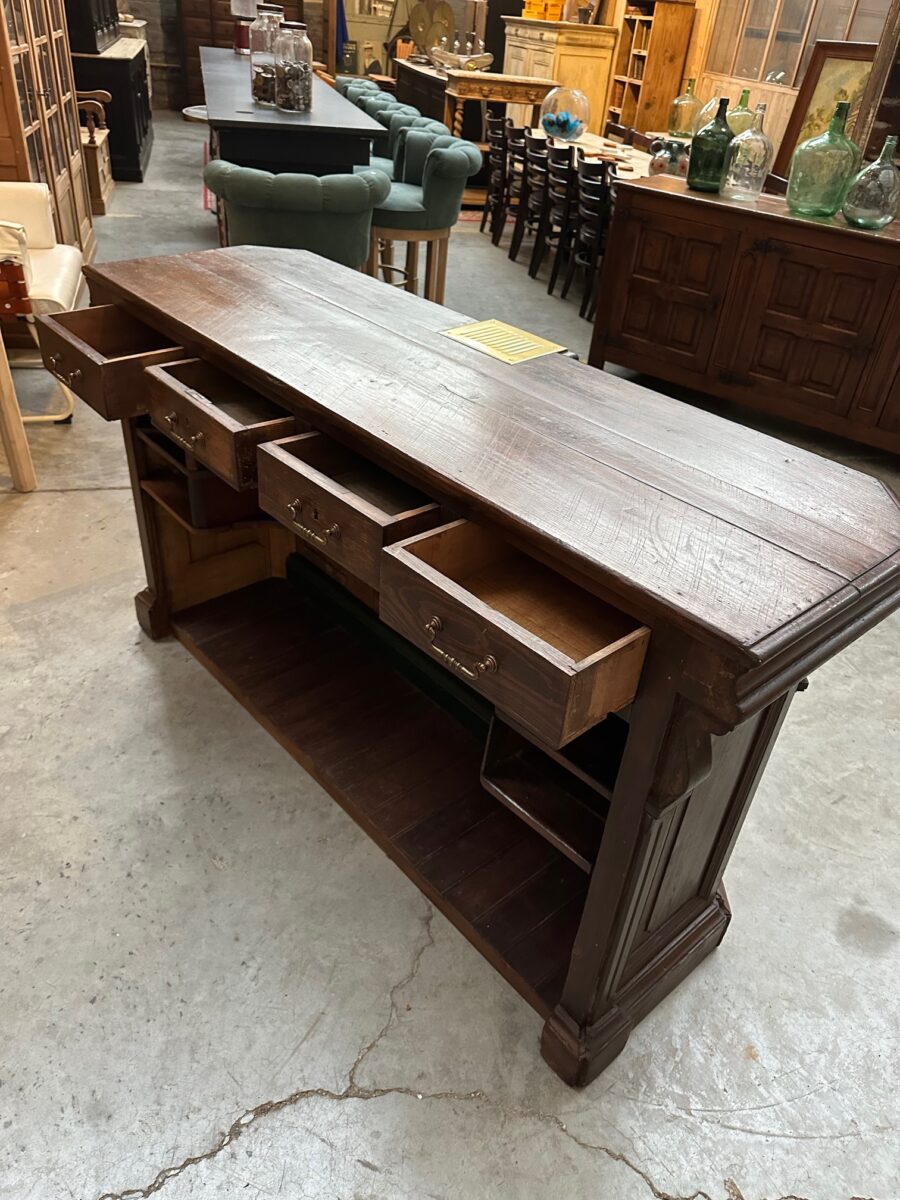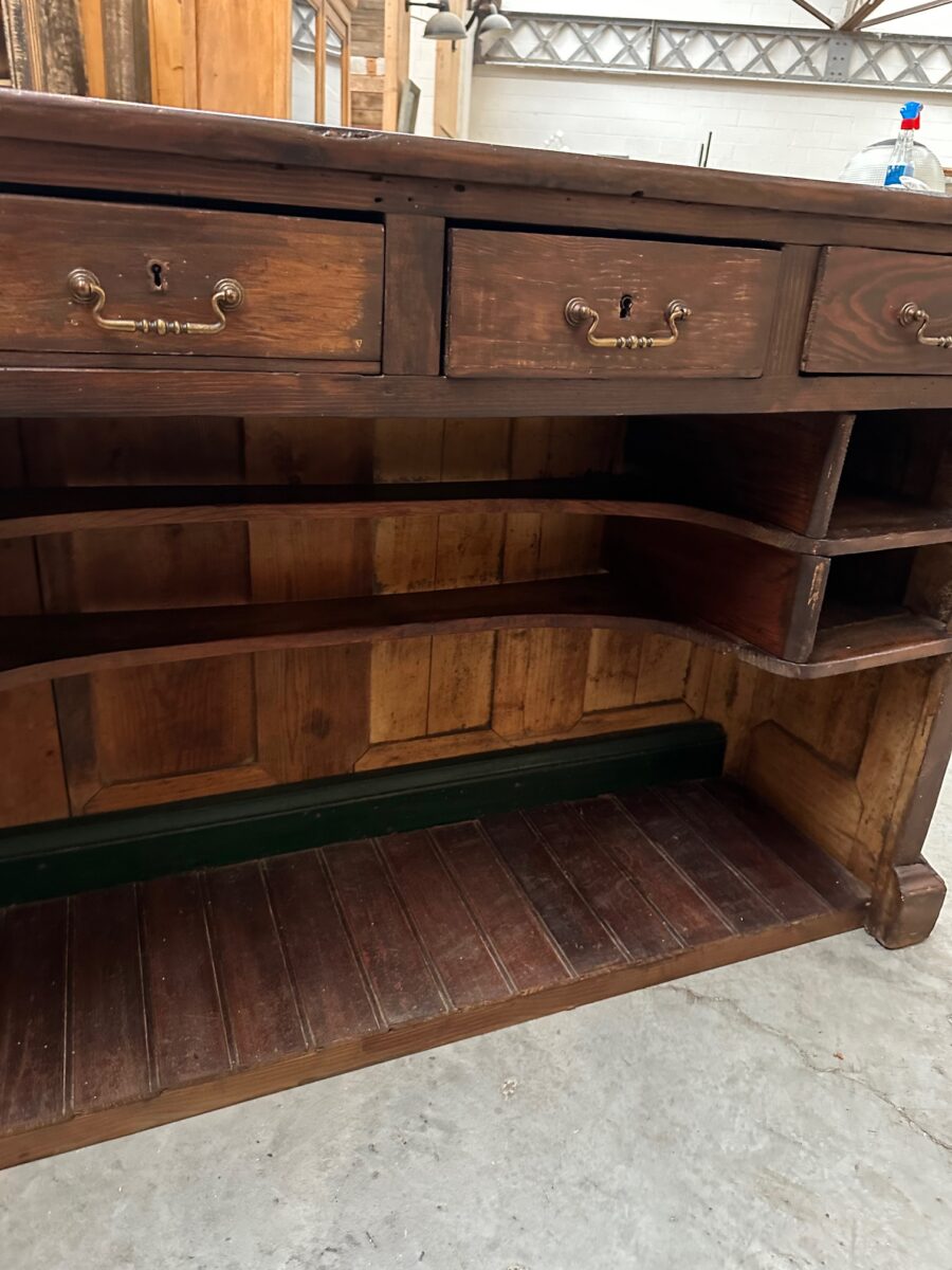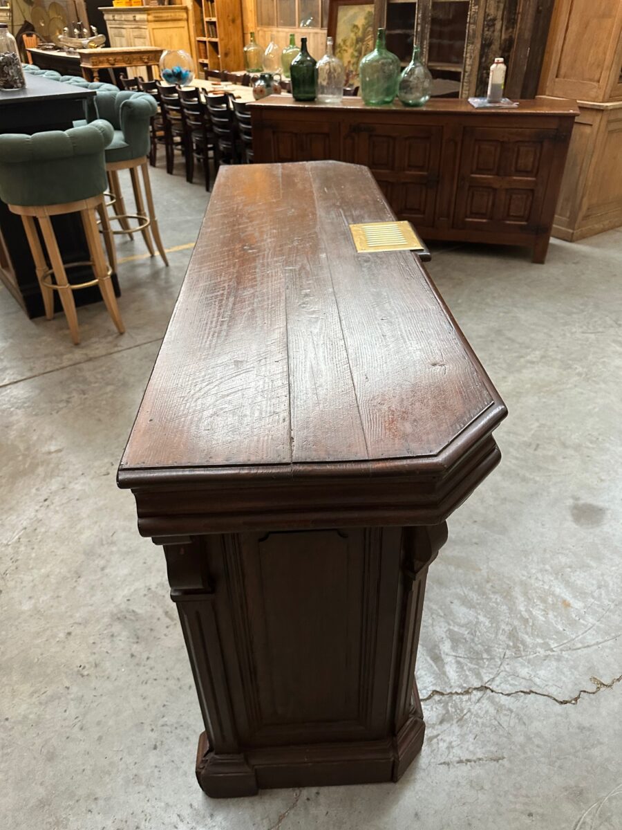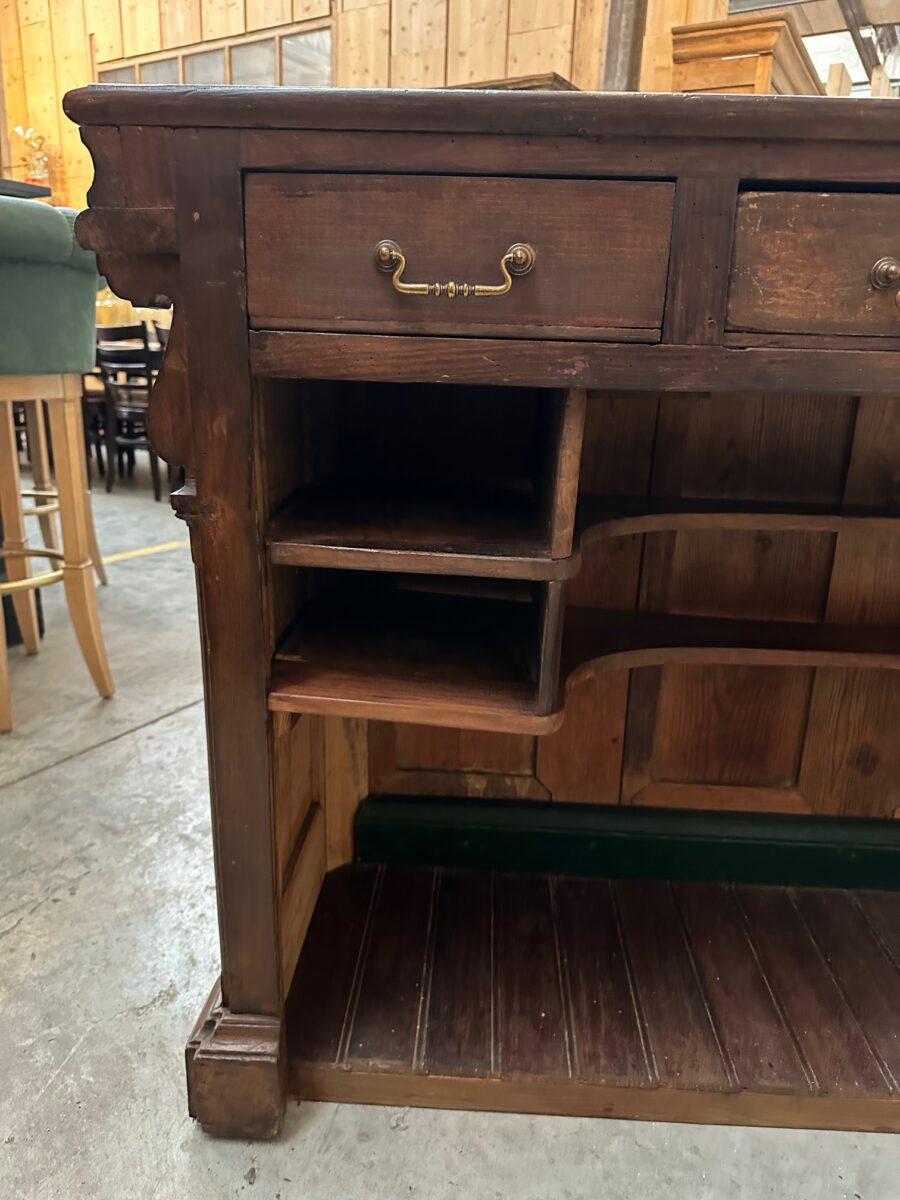 Cet ancien comptoir en sapin et chêne a été entièrement restauré