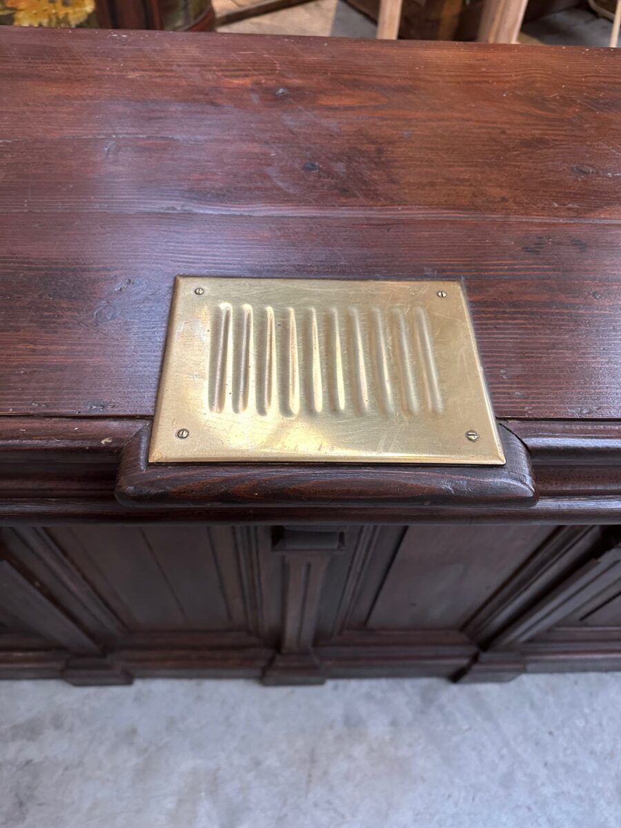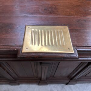 Son plateau dispose d’un monnayeur en laiton et sa façade est ornée de crosses.