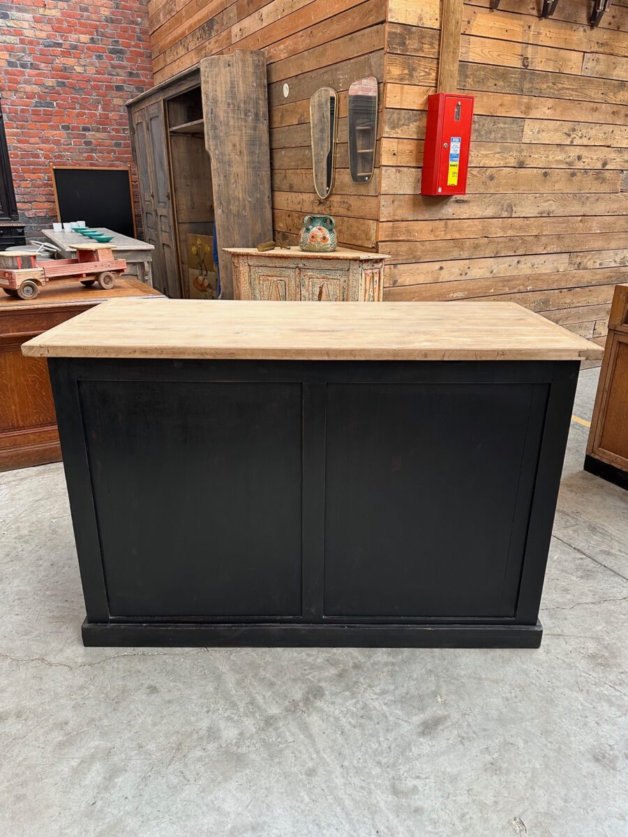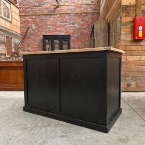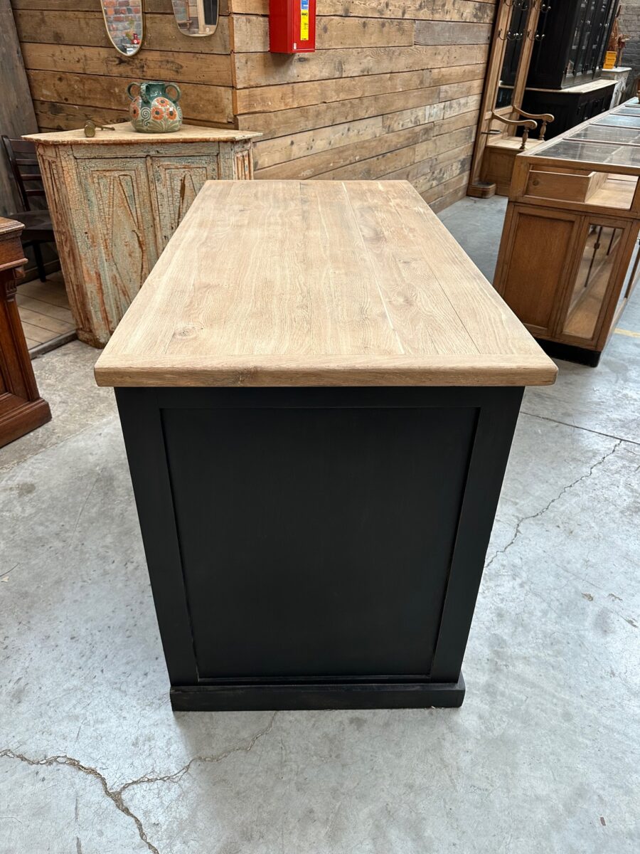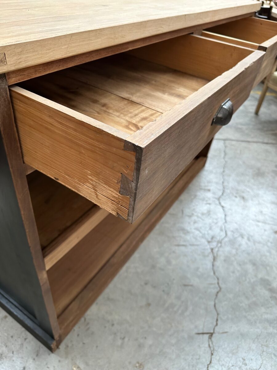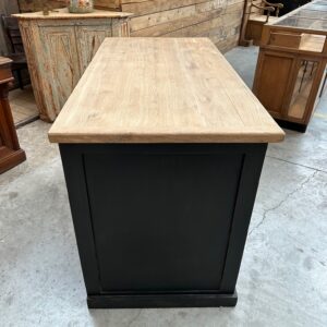 Son corps en acajou a été patiné en noir en façade et son plateau est en chêne.