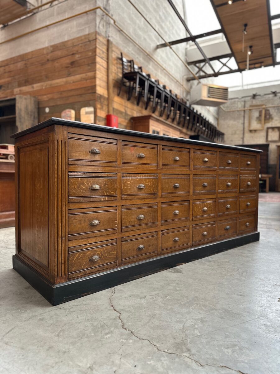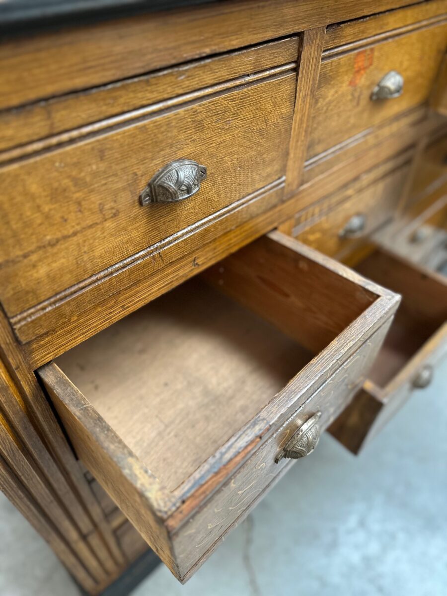Sur l’arrière de 24 tiroirs parfaitement fonctionnels (1 poignée différente)