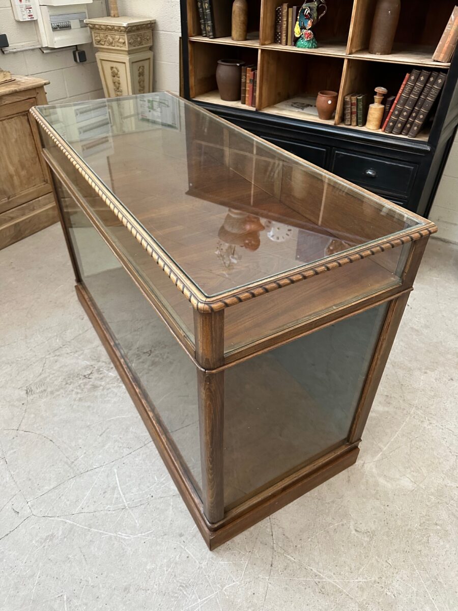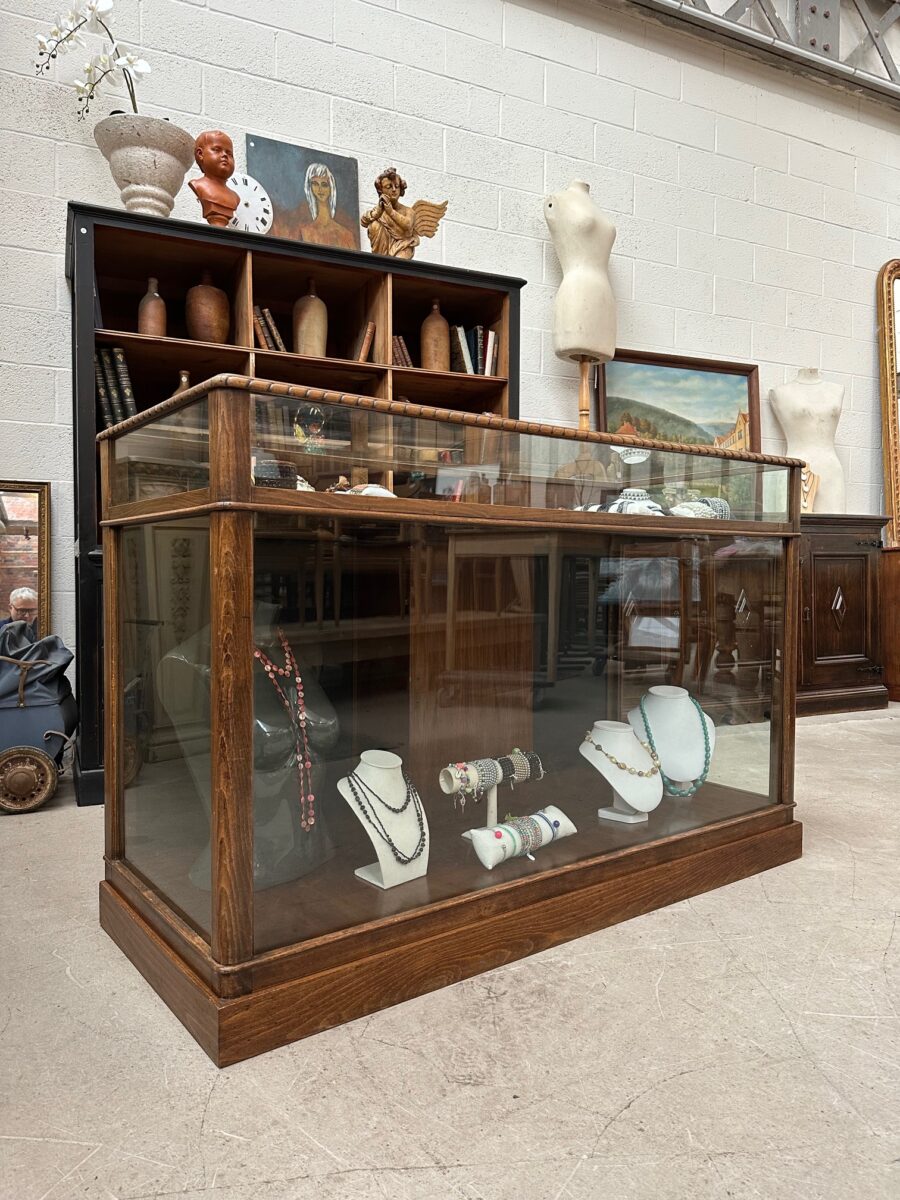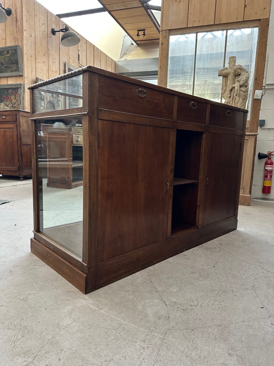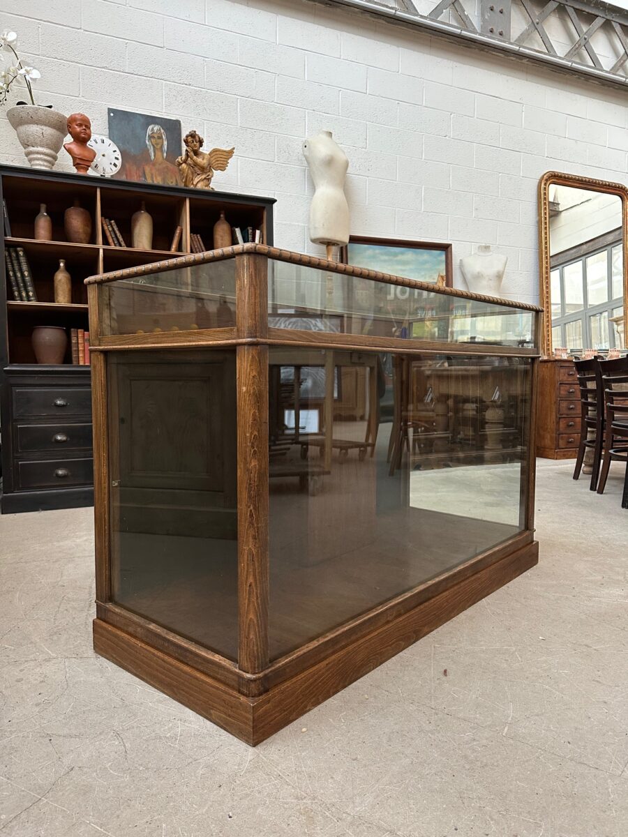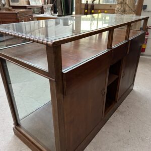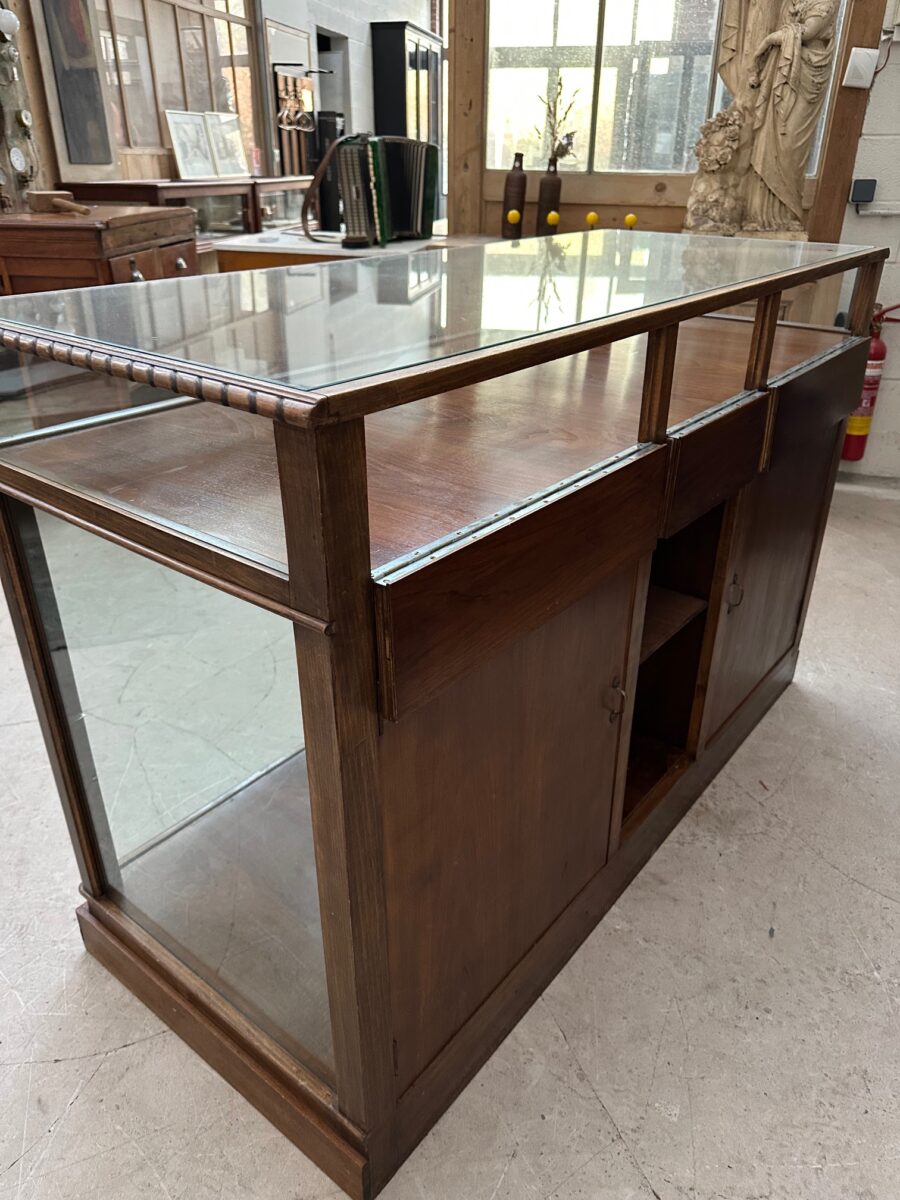 Cet ancien comptoir vitré en noyer et hêtre a été entièrement restauré