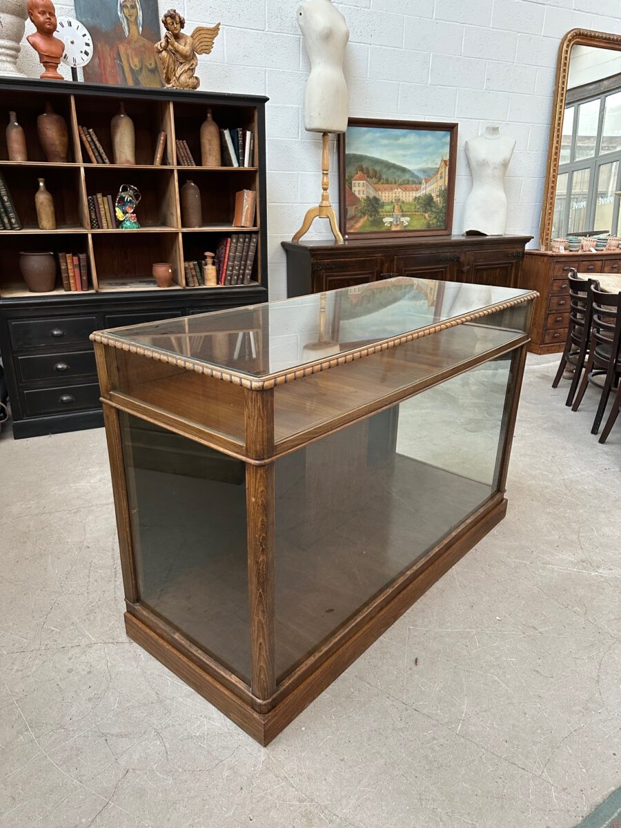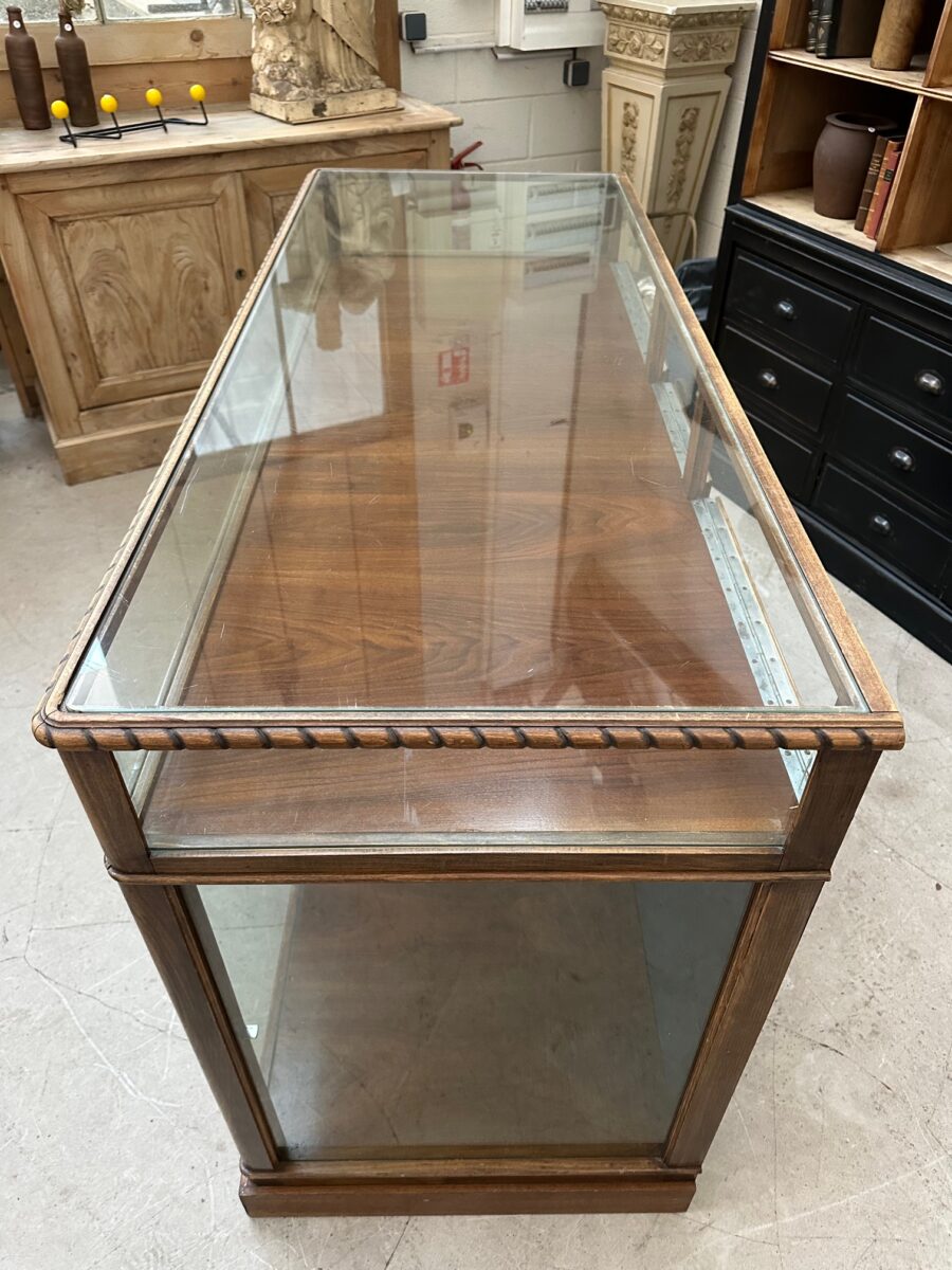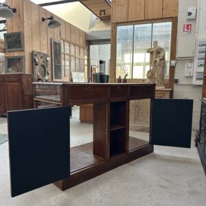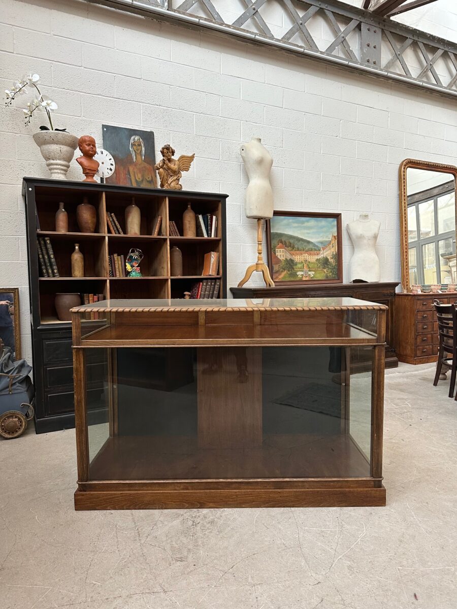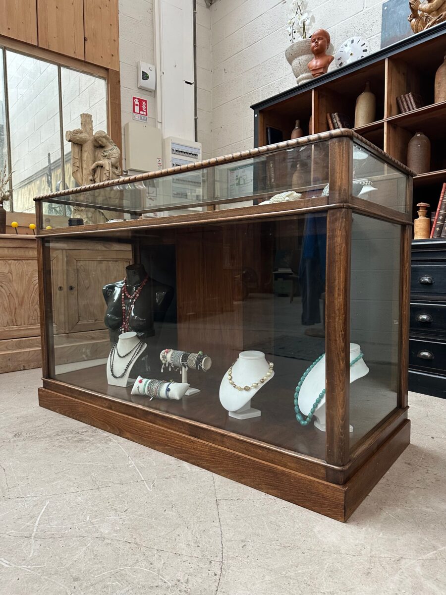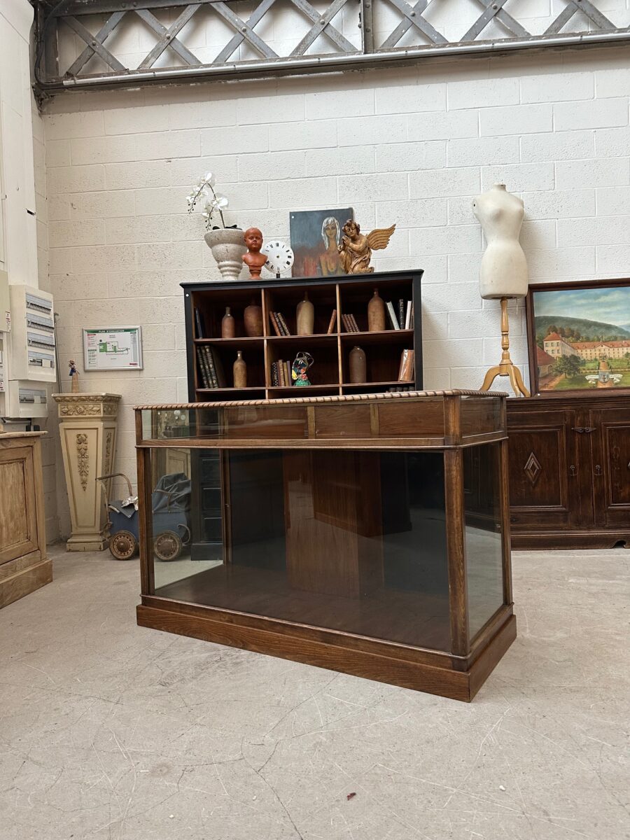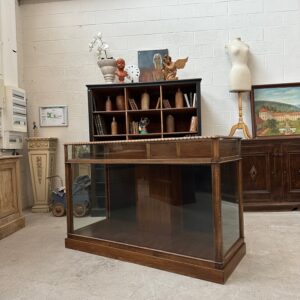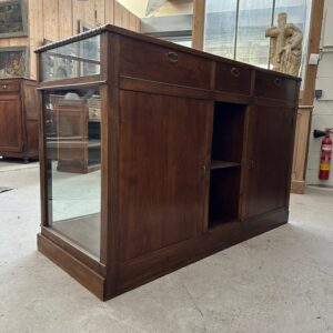 Cet ancien comptoir vitré en noyer et hêtre a été entièrement restauré
