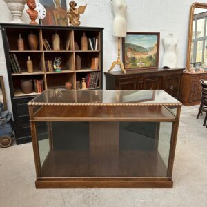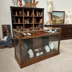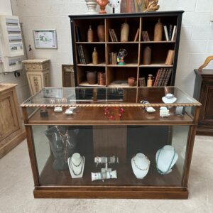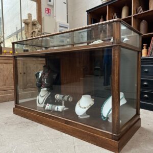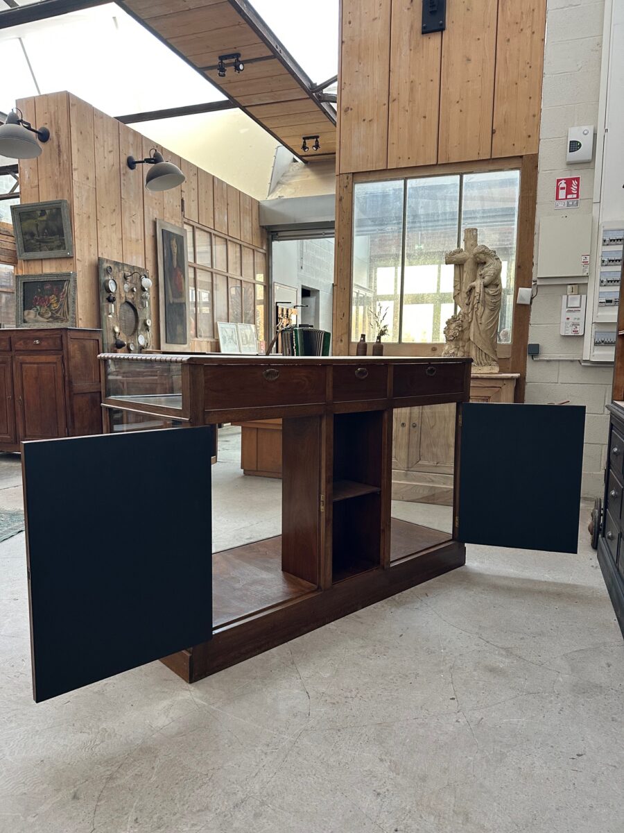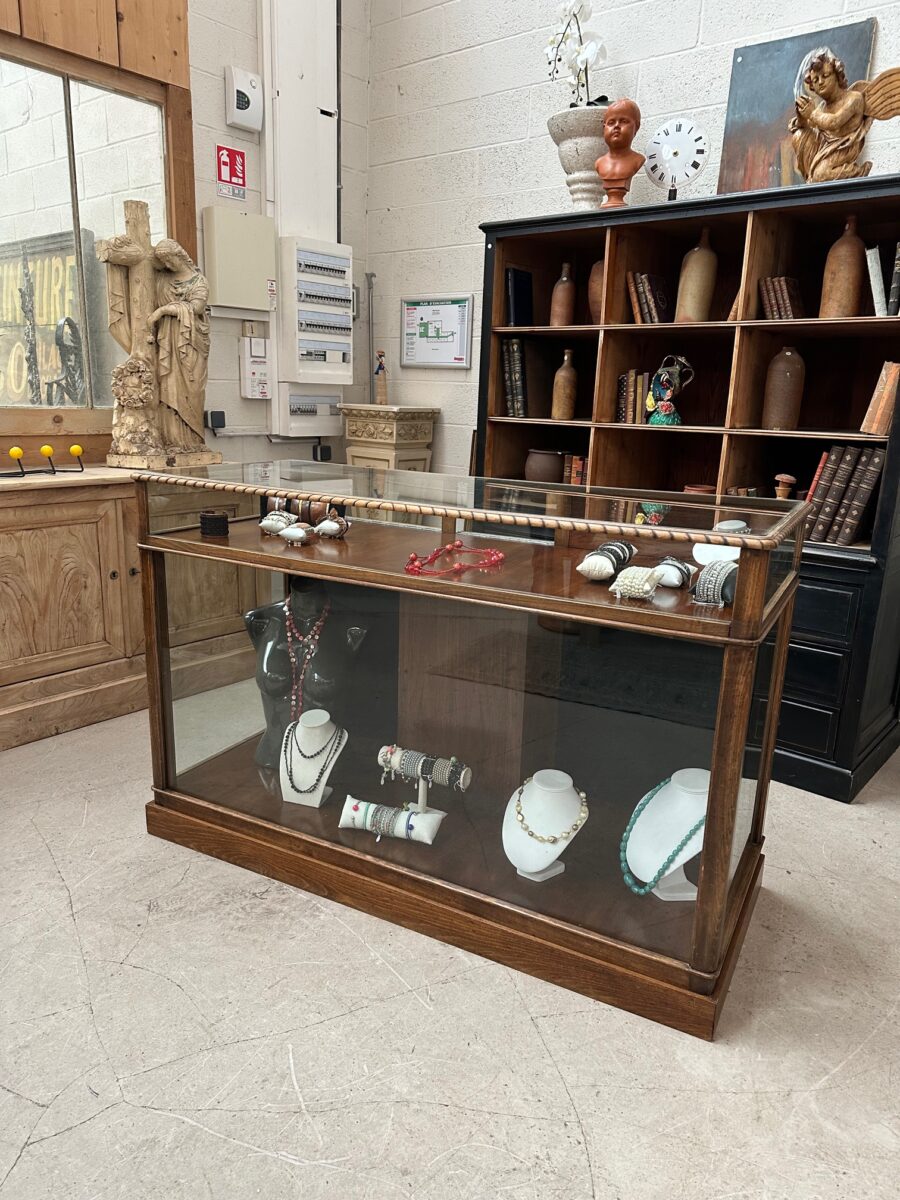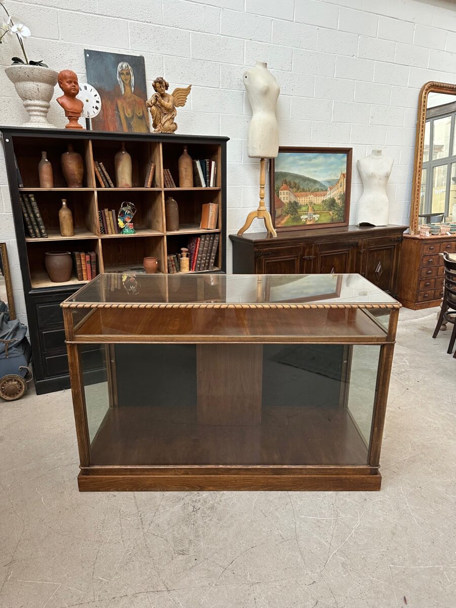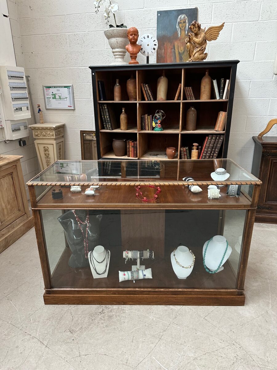 Cet ancien comptoir vitré en noyer et hêtre a été entièrement restauré