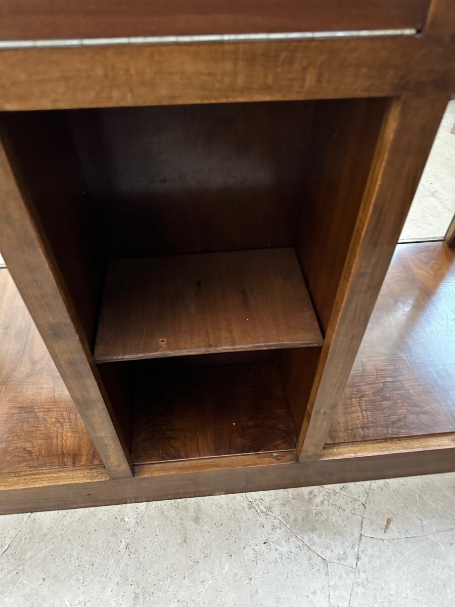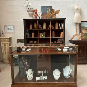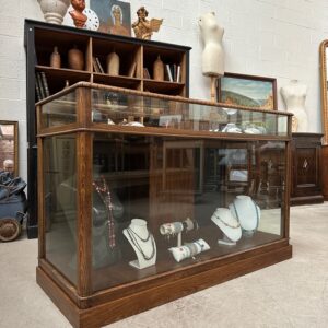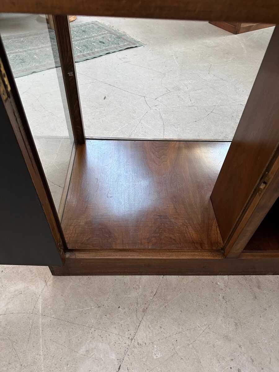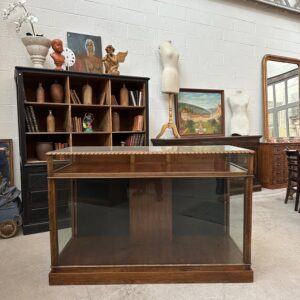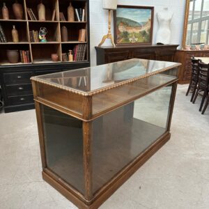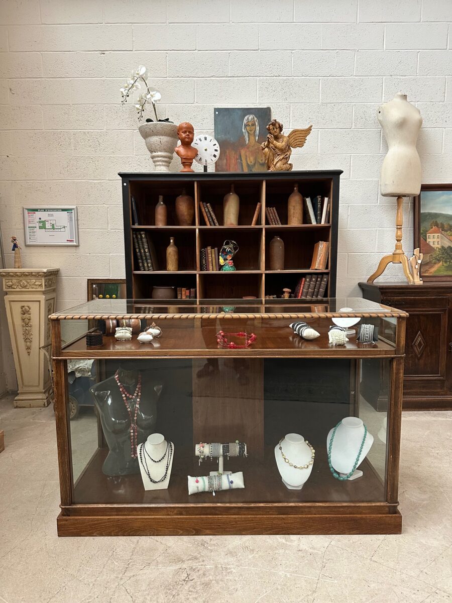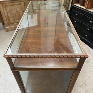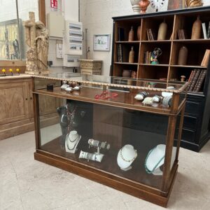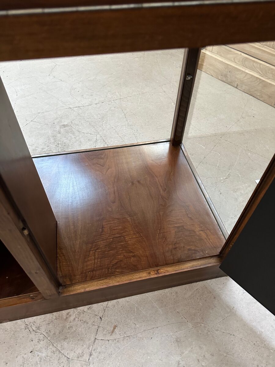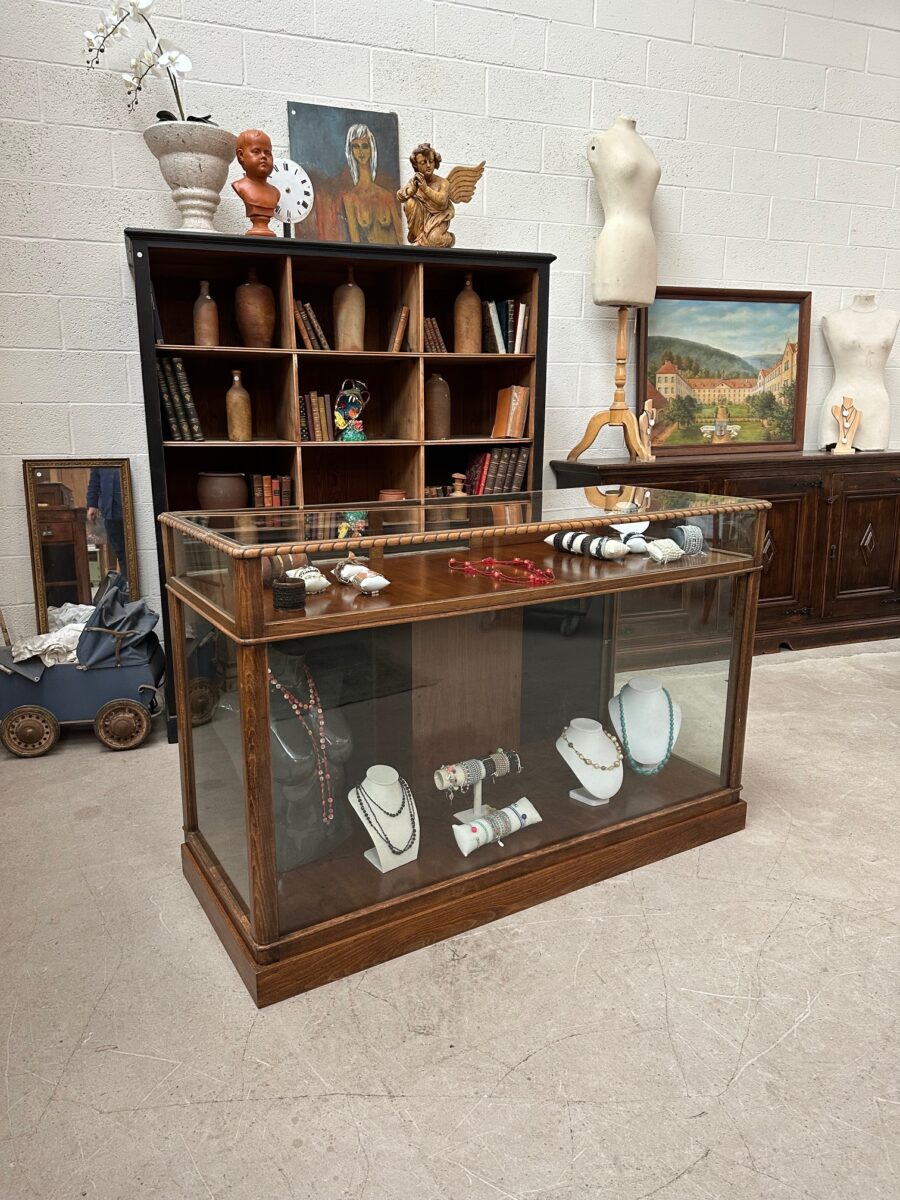 Cet ancien comptoir vitré en noyer et hêtre a été entièrement restauré