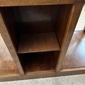 Sa partie inférieure est également vitrée et on y accède par 2 portes à l’arrière au milieu desquelles se trouve un espace de rangement ouvert.