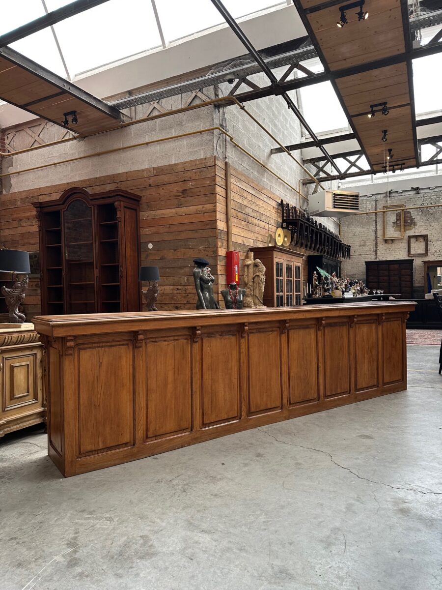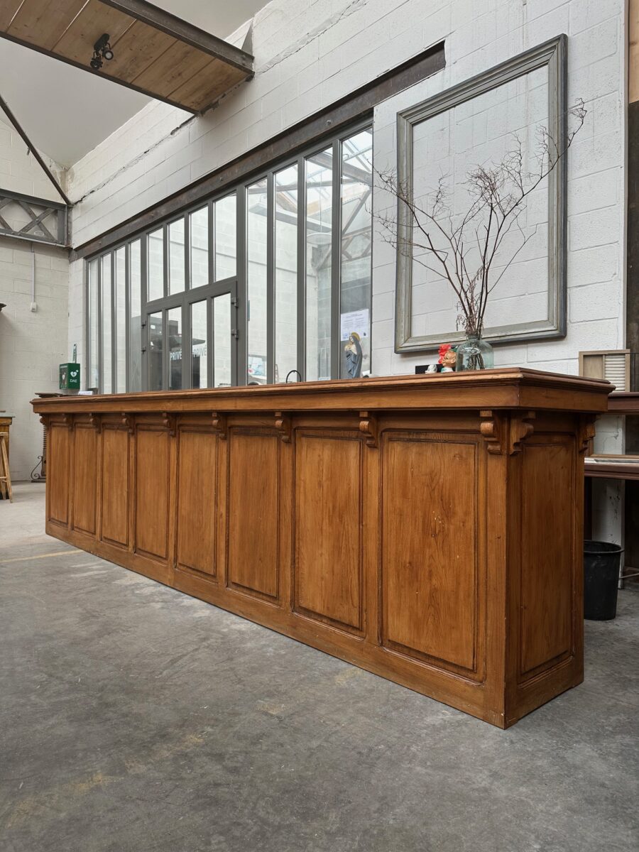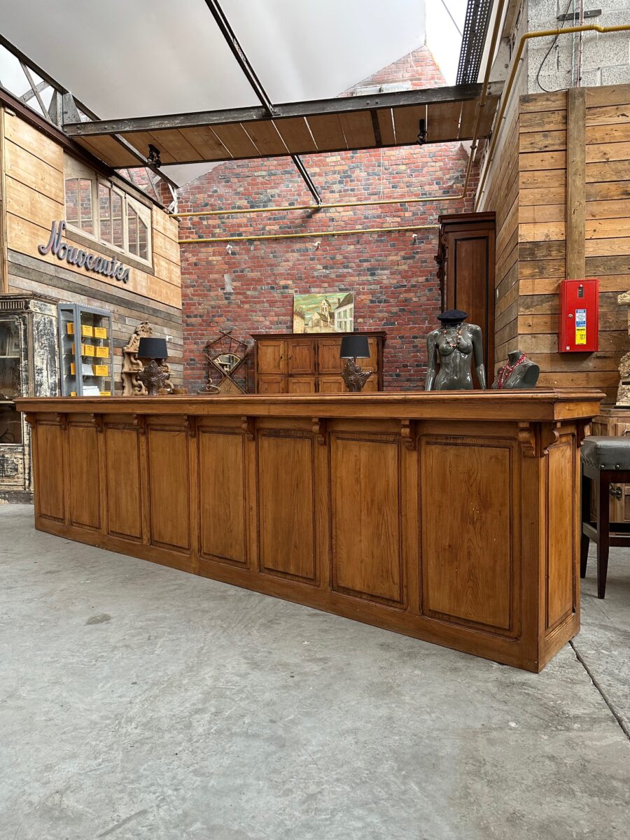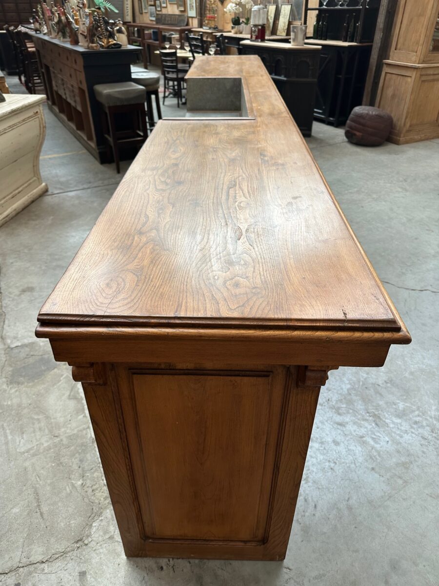 Immense comptoir de bar fin XIXème en orme massif