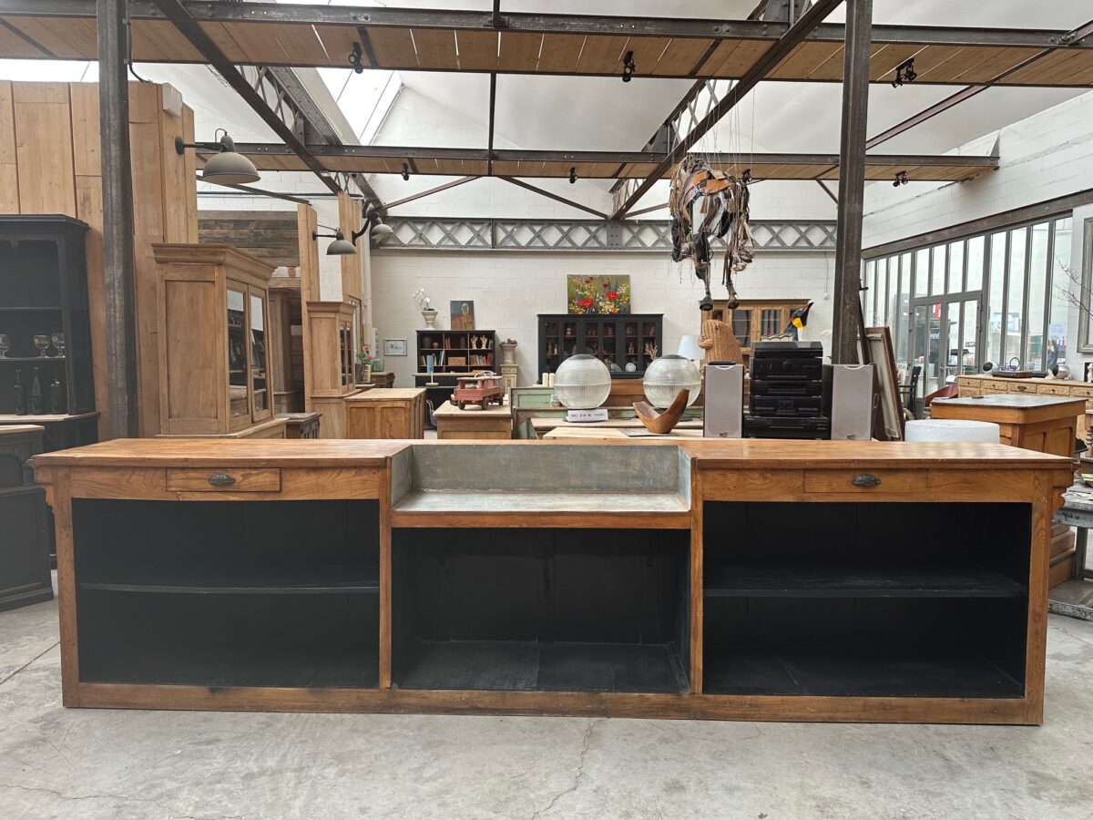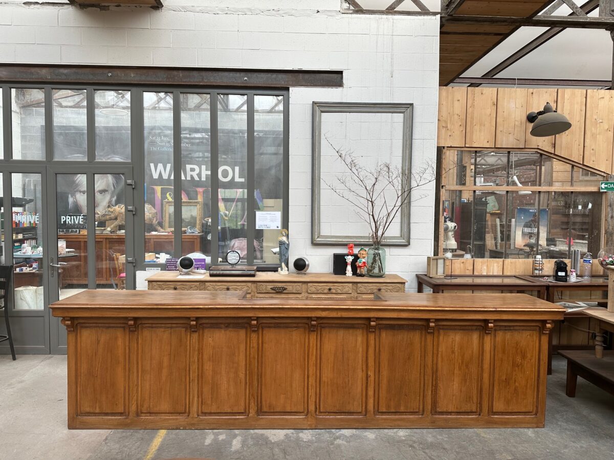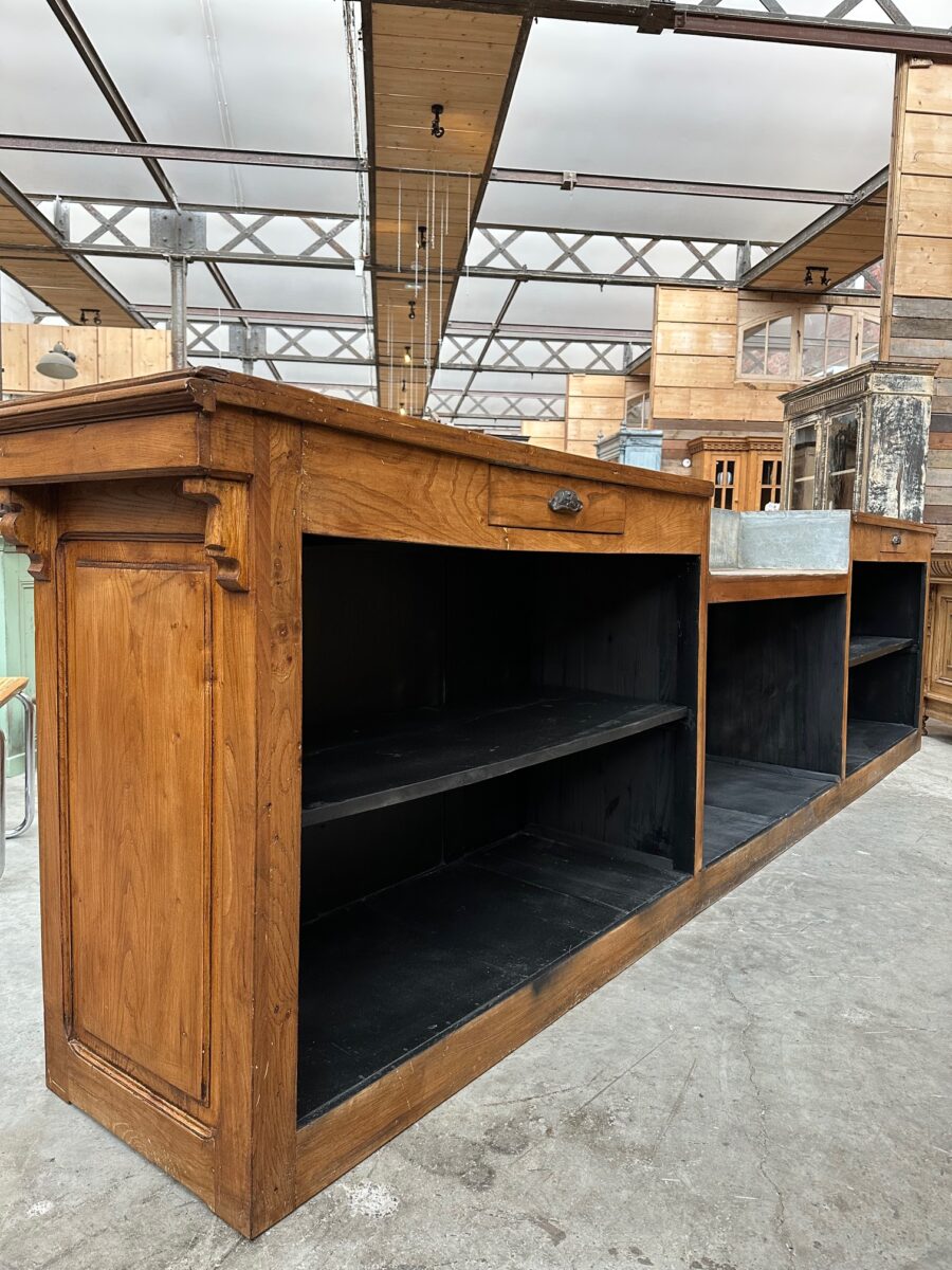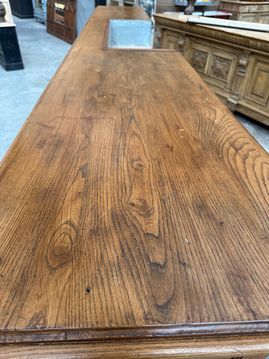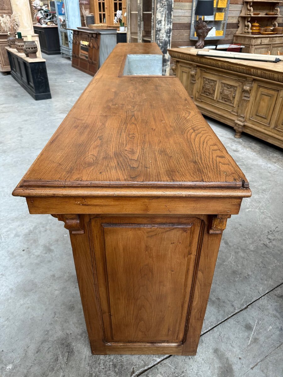 Immense comptoir de bar fin XIXème en orme massif