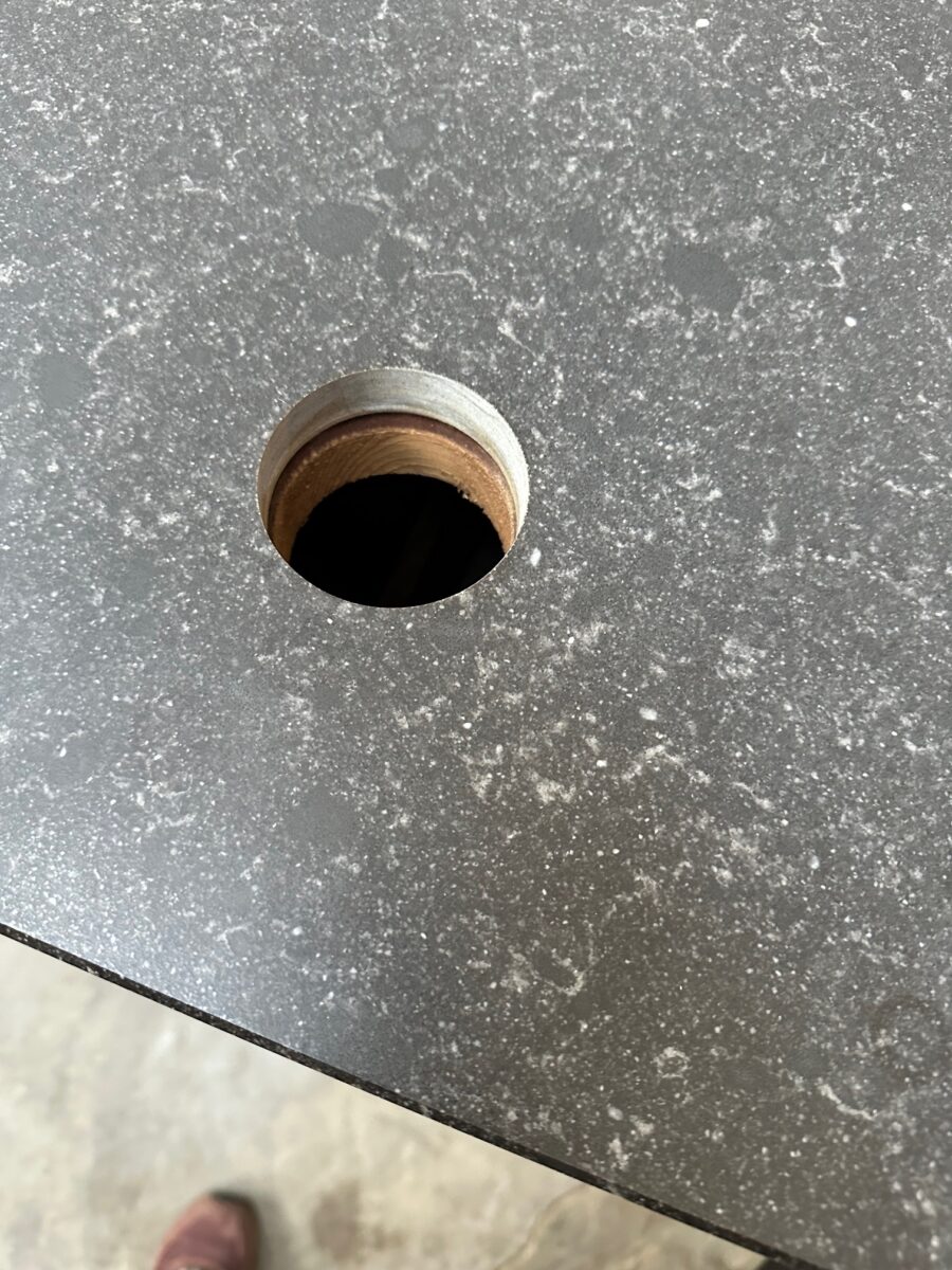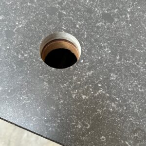 Sur le dessus, une pierre bleue a été posée . Une découpe est présente afin de pouvoir brancher une mini pompe à bière ou tout autre appareil