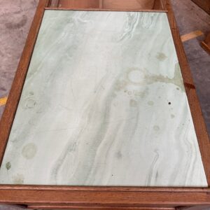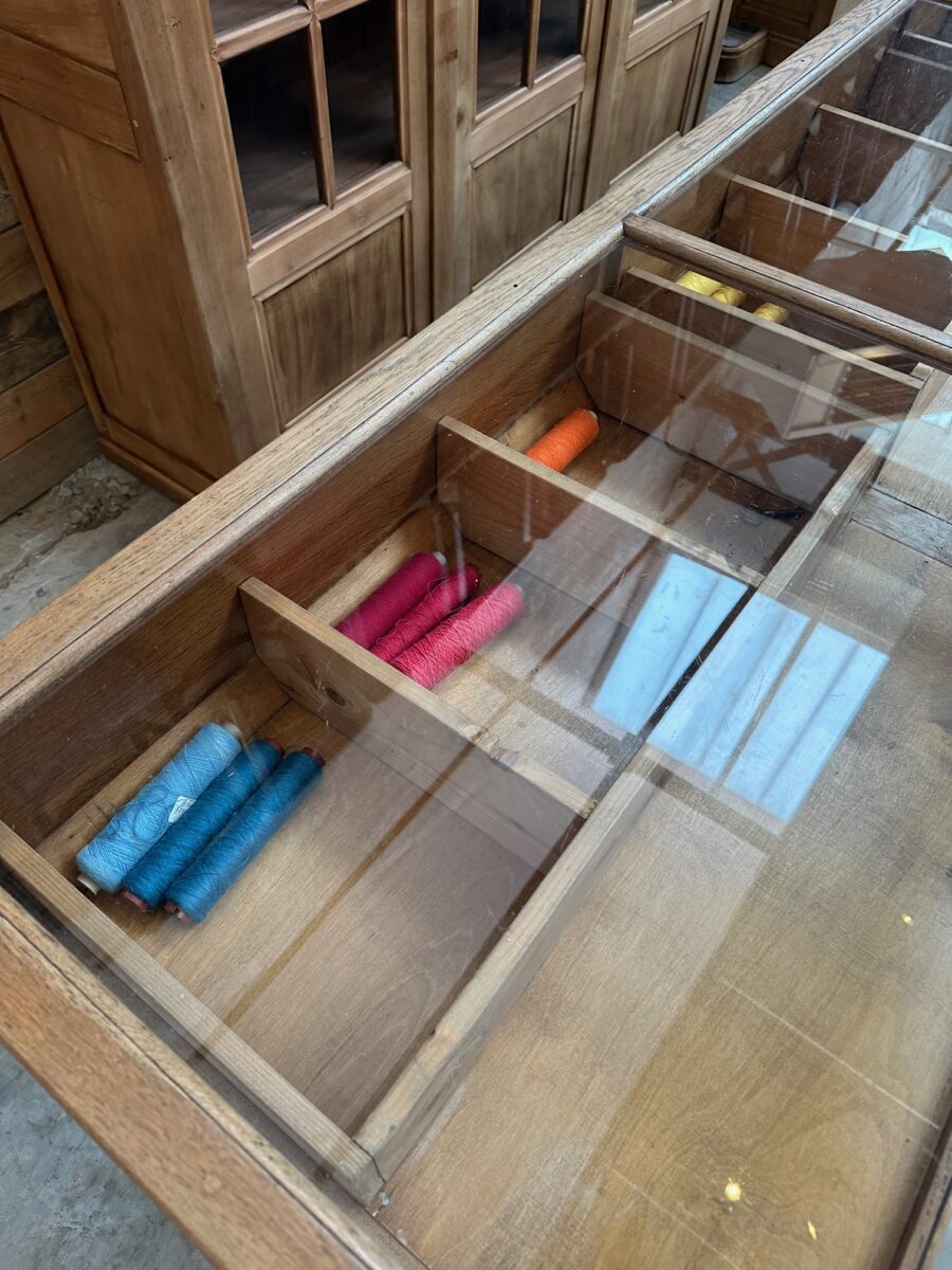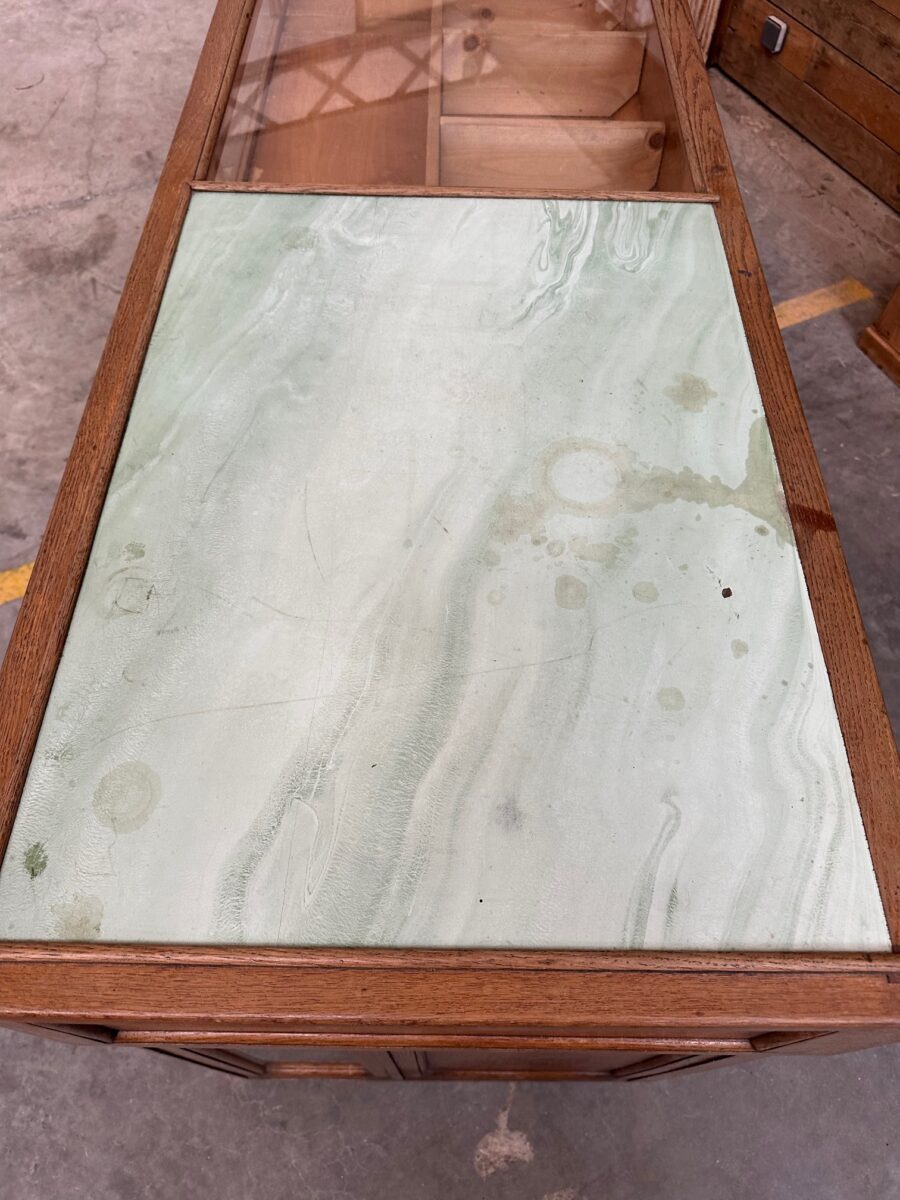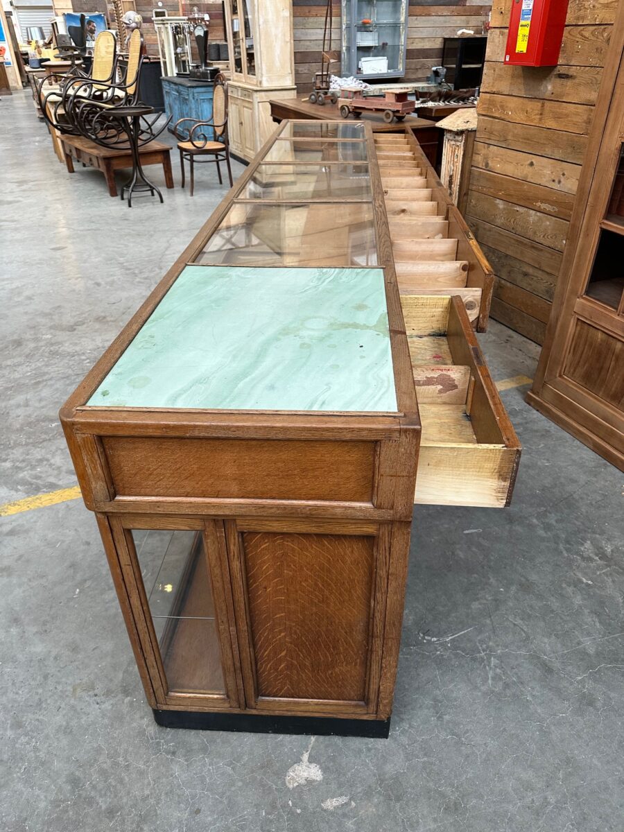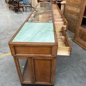 Le dessus est doté d’une vitrine, l’accès se faisant à l’aide de 4 grands tiroirs sur l’arrière