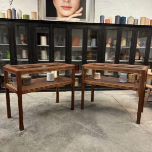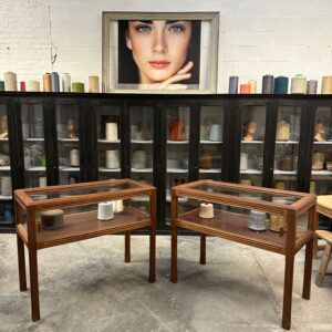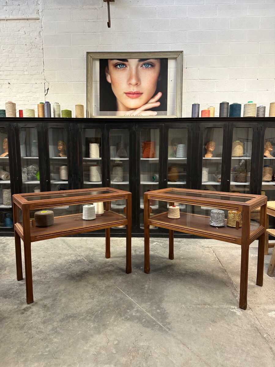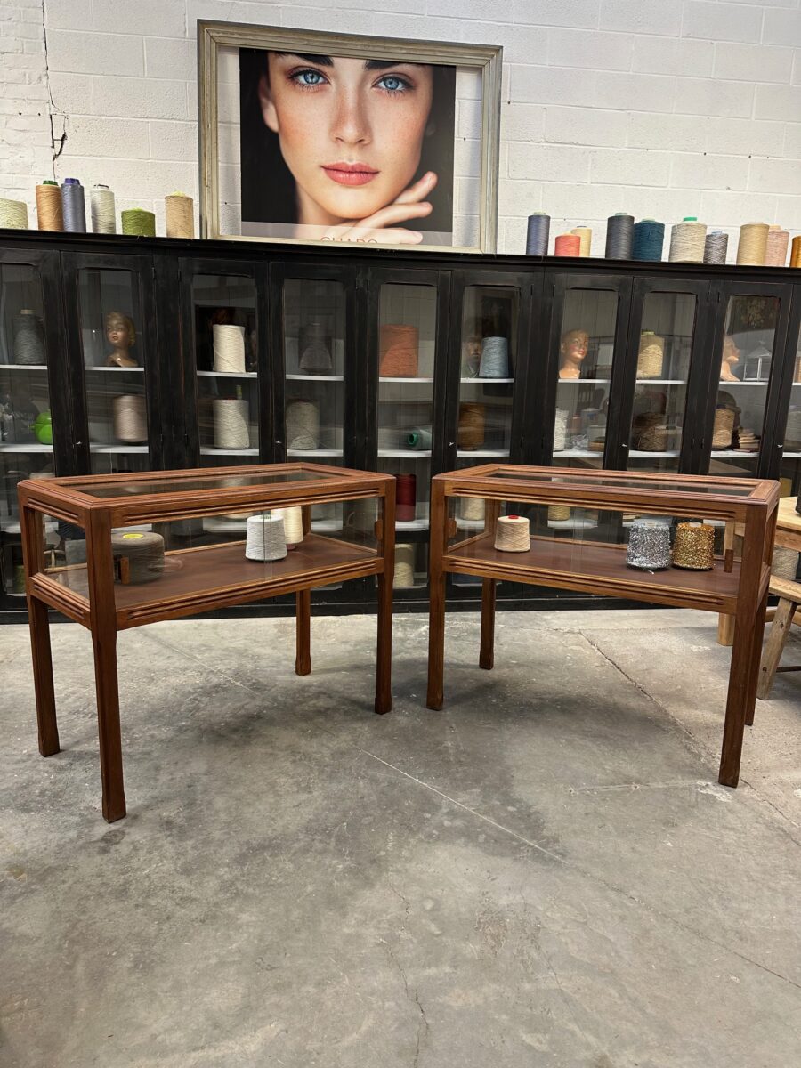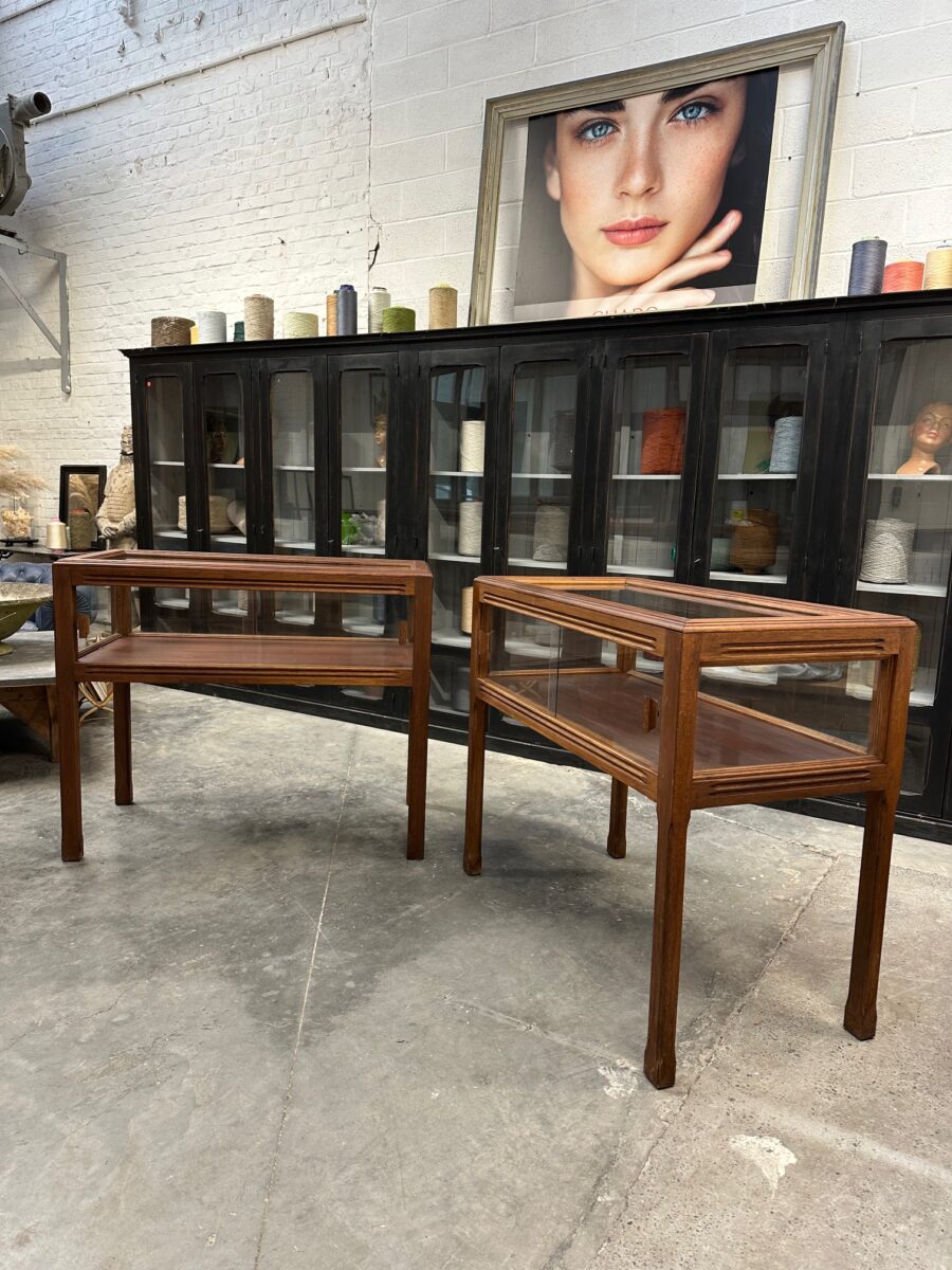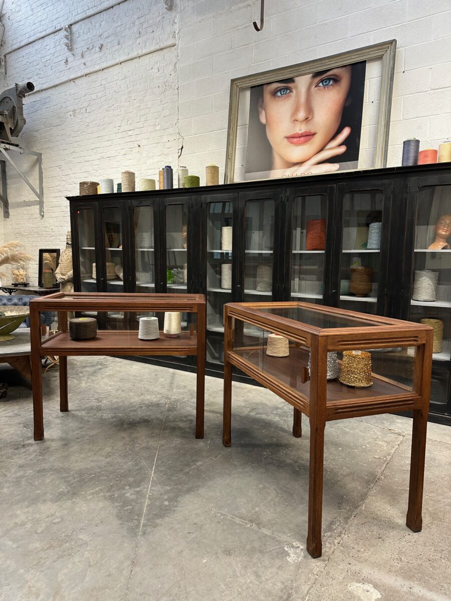 Ces deux vitrines en acajou massif ont été restaurées