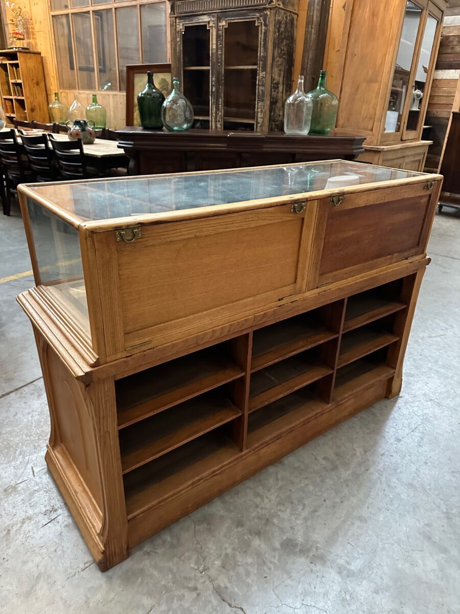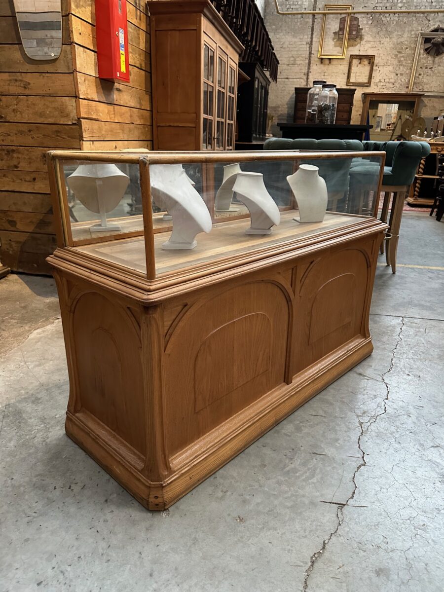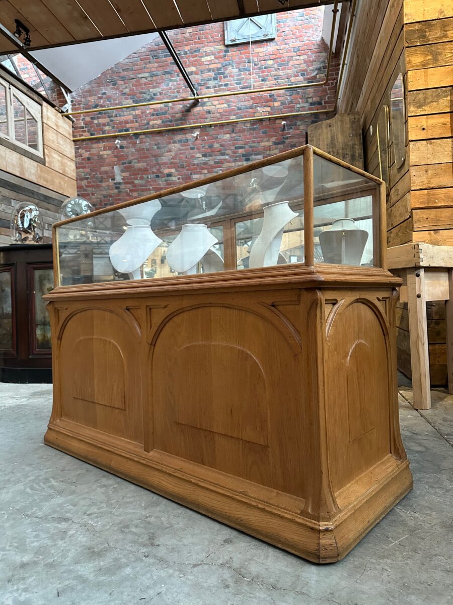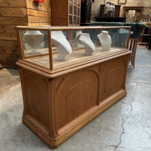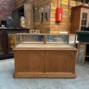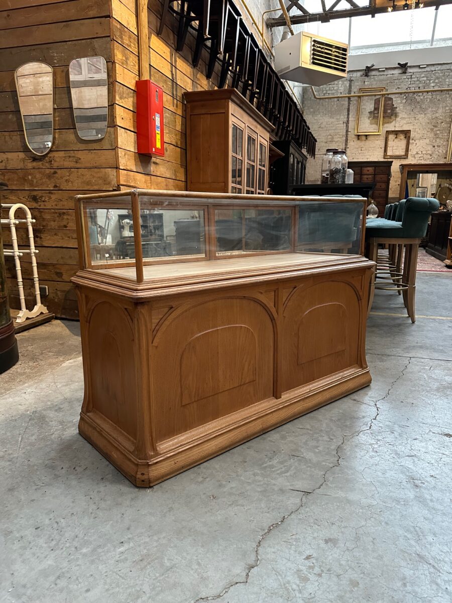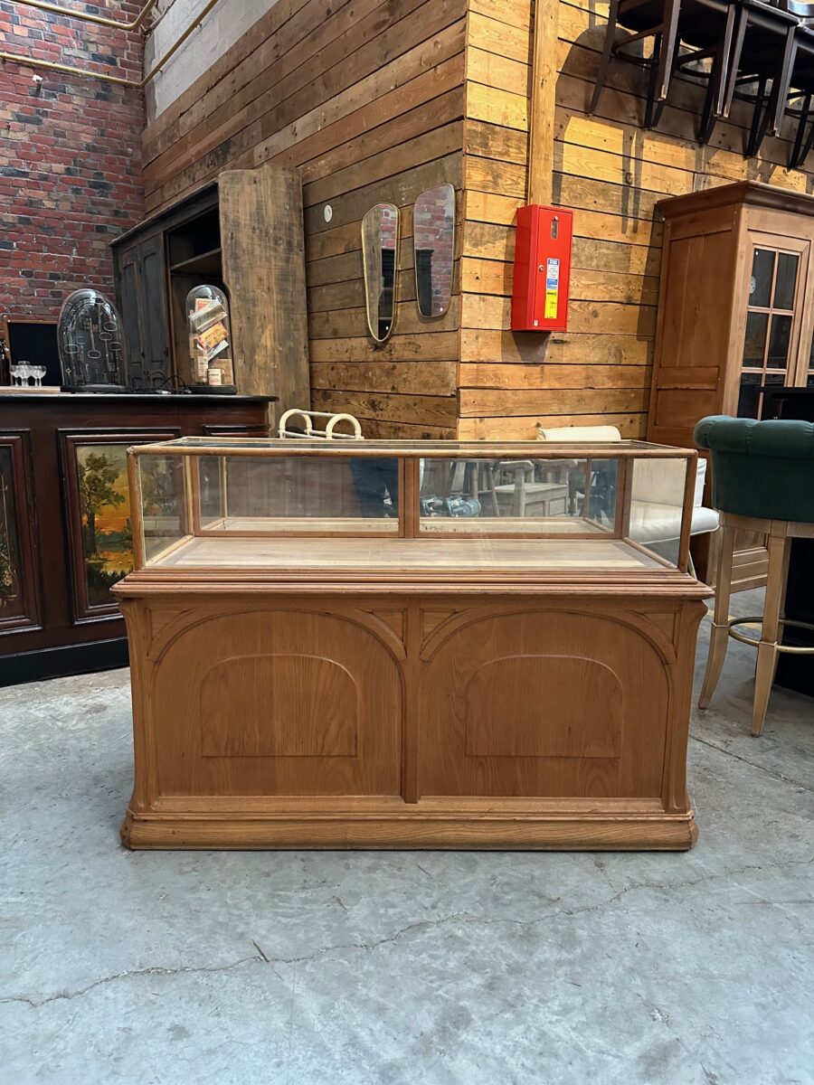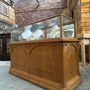 Cet ancien comptoir/vitrine en chêne massif a été entièrement restauré.