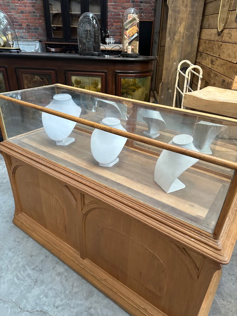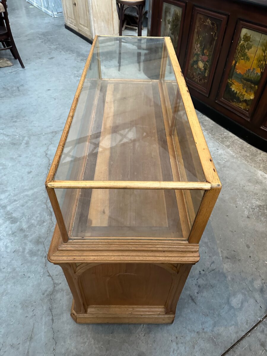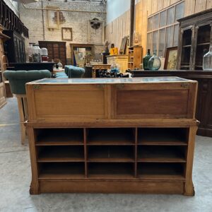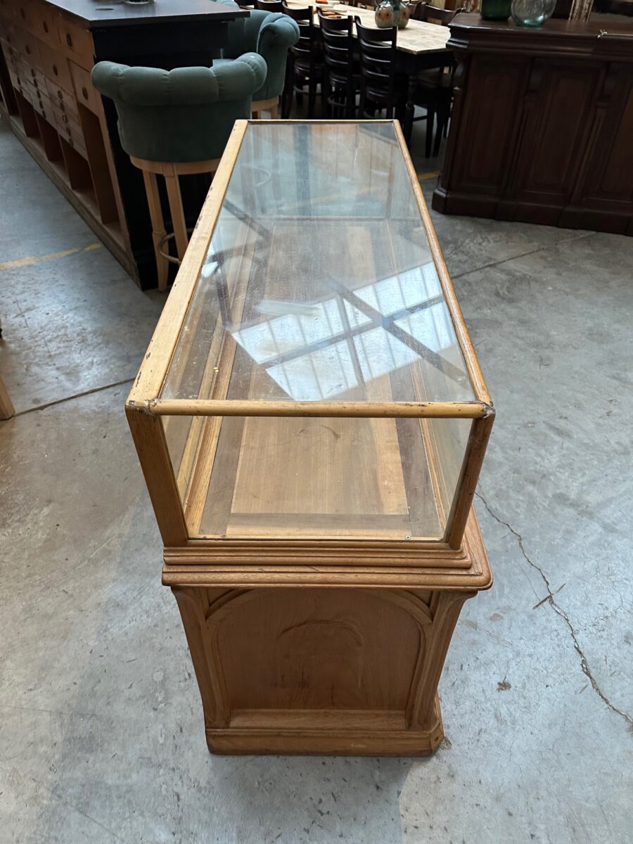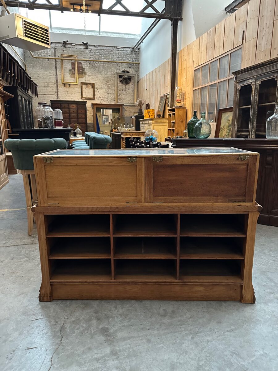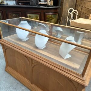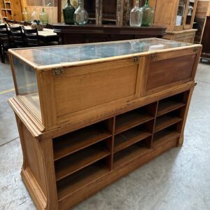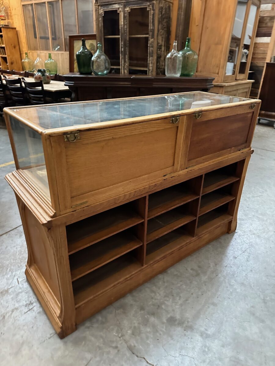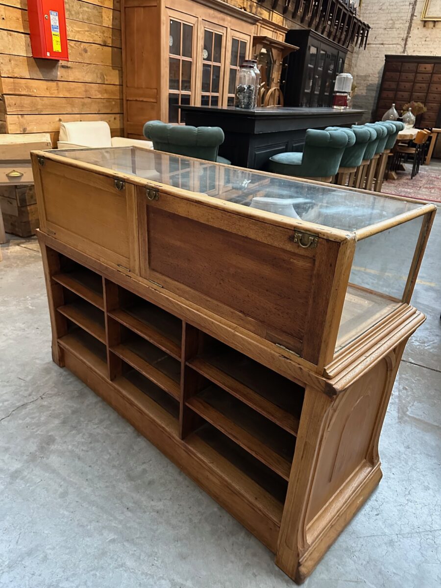 Cet ancien comptoir/vitrine en chêne massif a été entièrement restauré.
