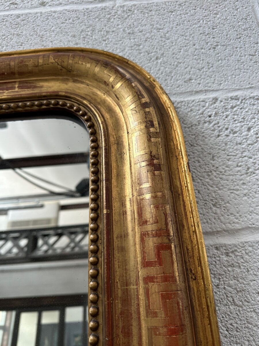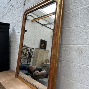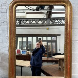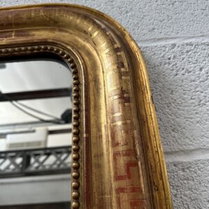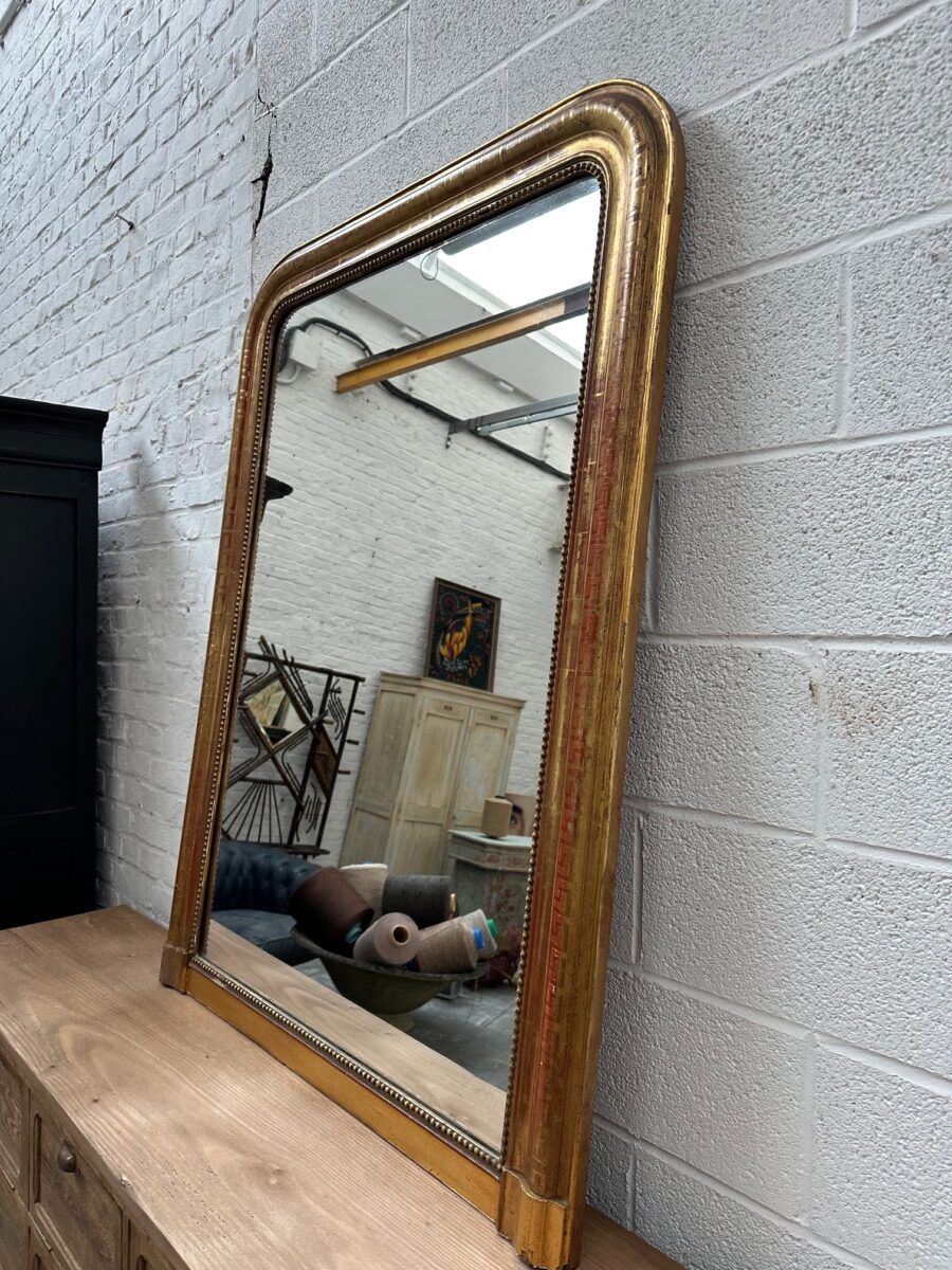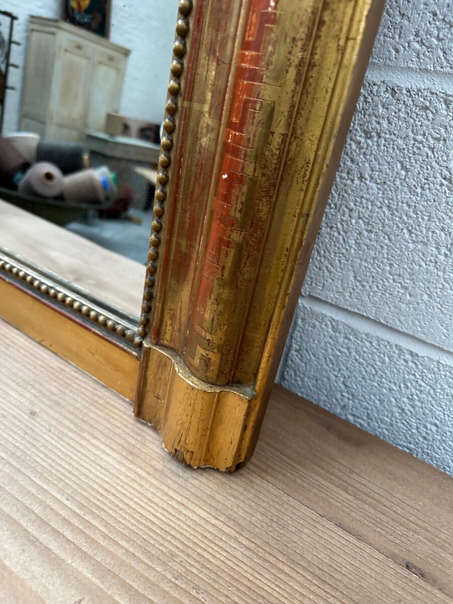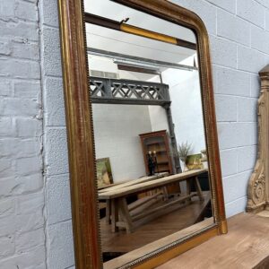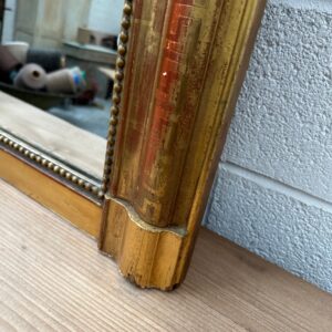 Grand miroir doré ancien doté d’une moulure décorée et perlée