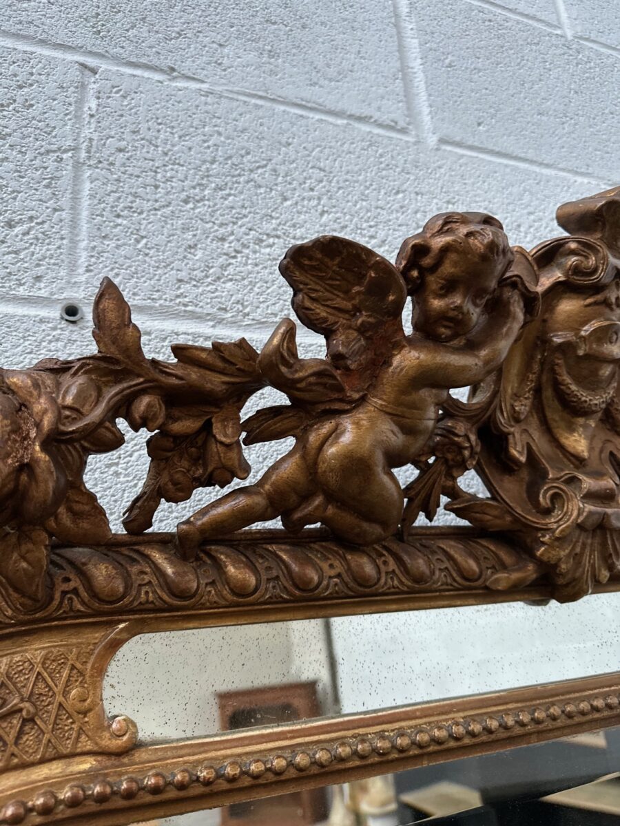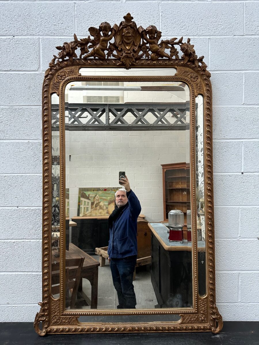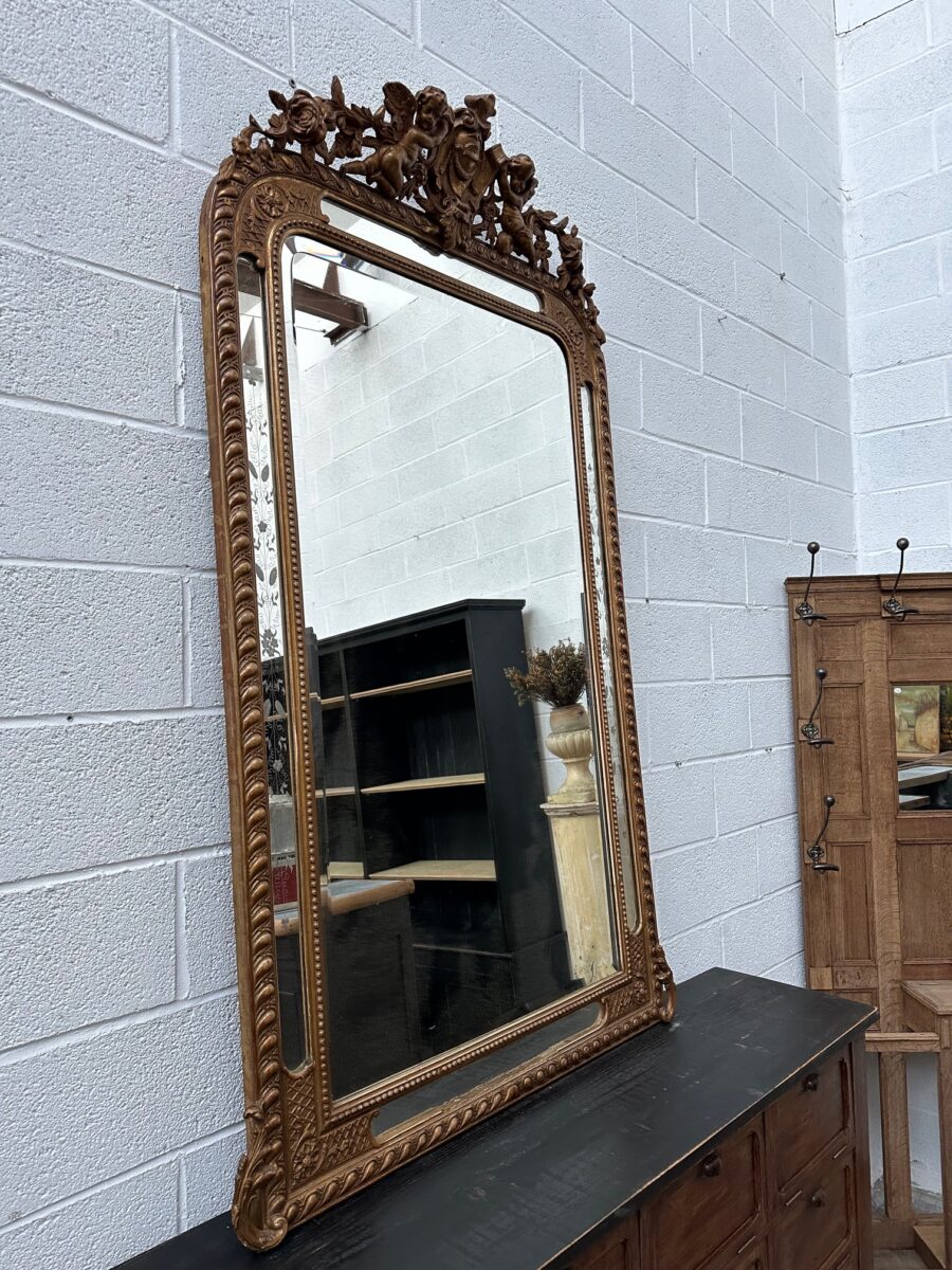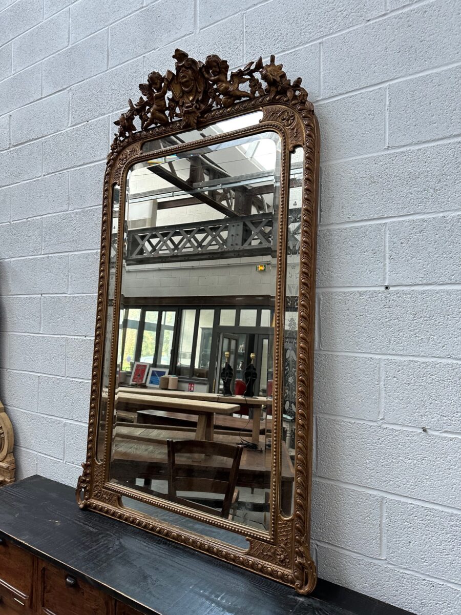 Rare miroir ancien doré en bois et plâtre datant du XIXème siècle