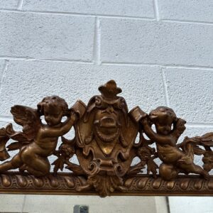 Son fronton est orné de 2 angelots entourant un écusson et garni de guirlandes florales.