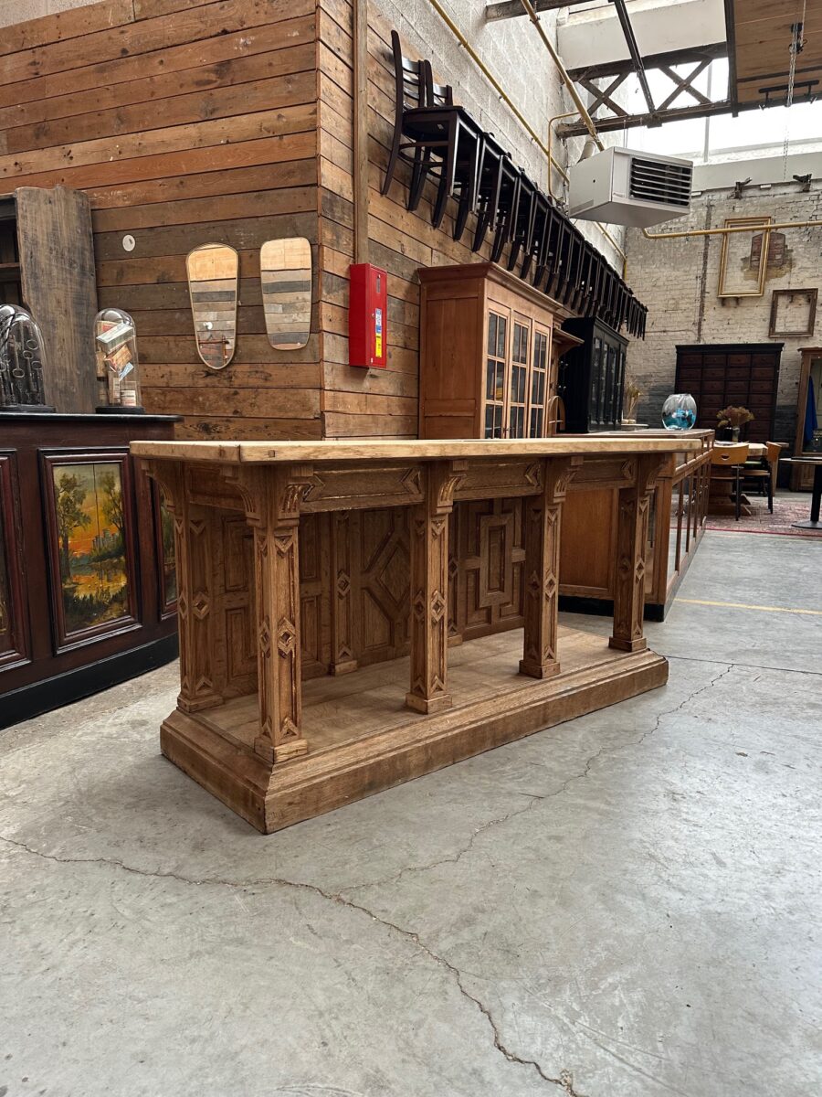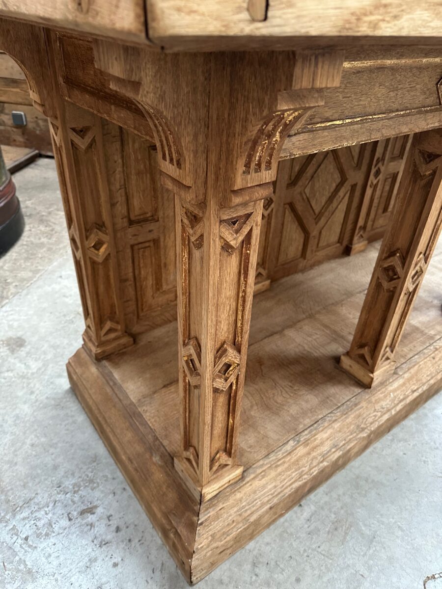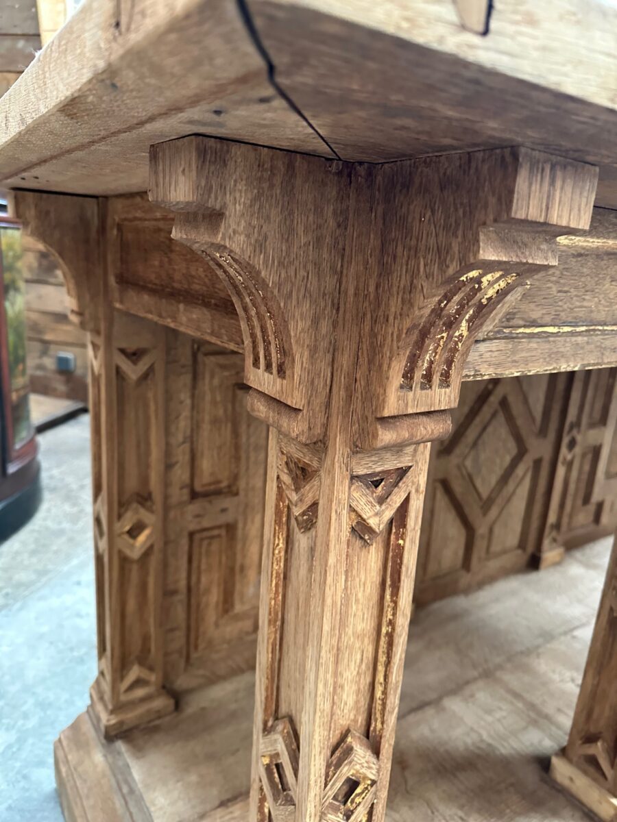 Cet ancien autel d’église en chêne massif et datant du XIXème siècle a été transformé en console.