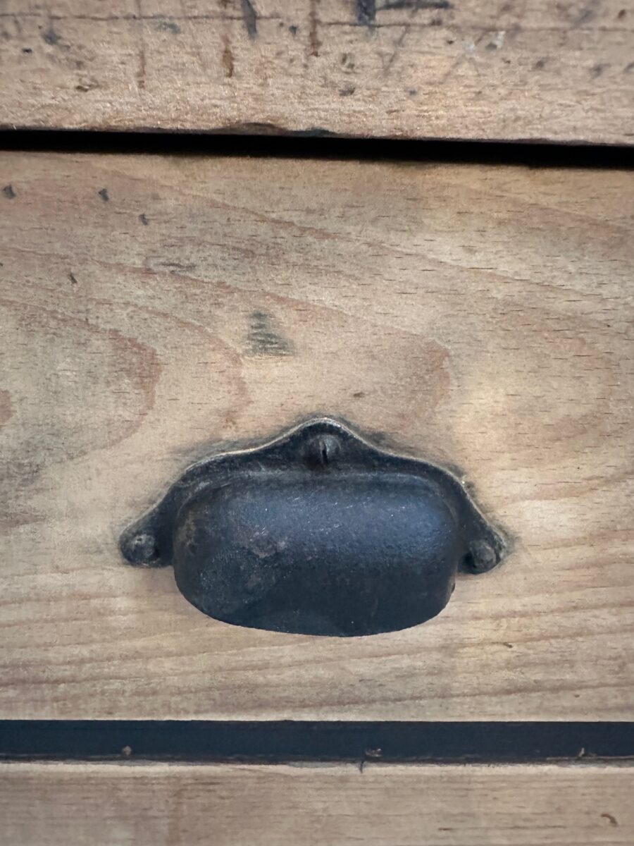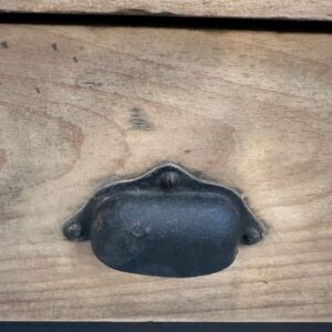 Sa partie basse se compose de 5 grands tiroirs fonctionnels avec poignées coquilles et de 2 portes ouvrant sur un espace de rangement.