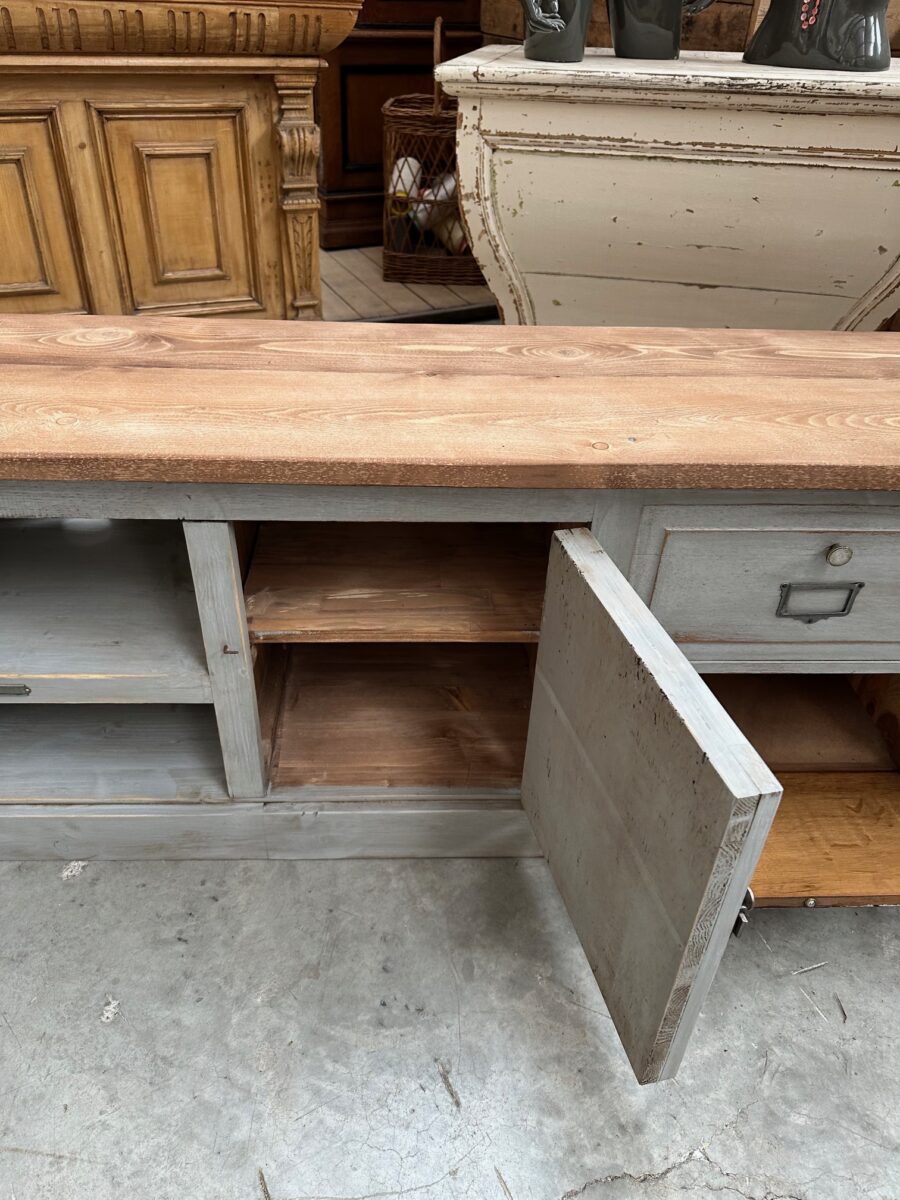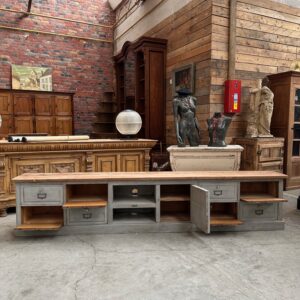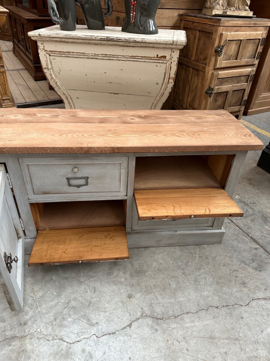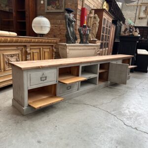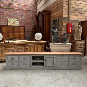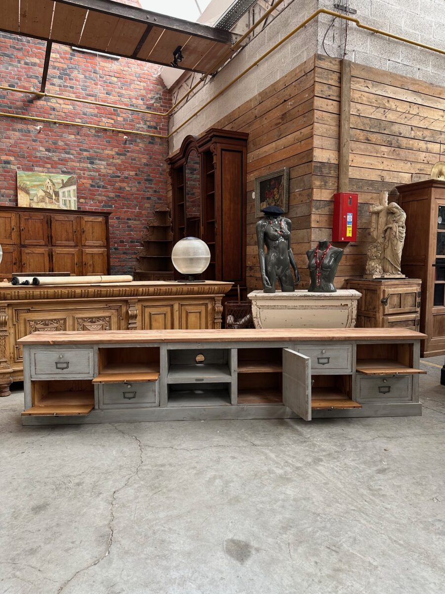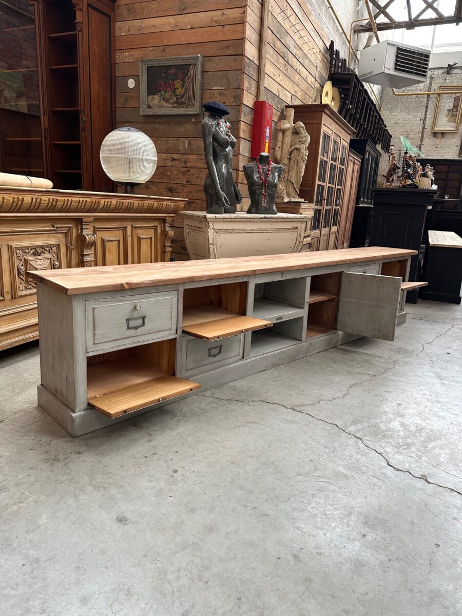 Cet ancien meuble de métier a été transformé en meuble de télévision
