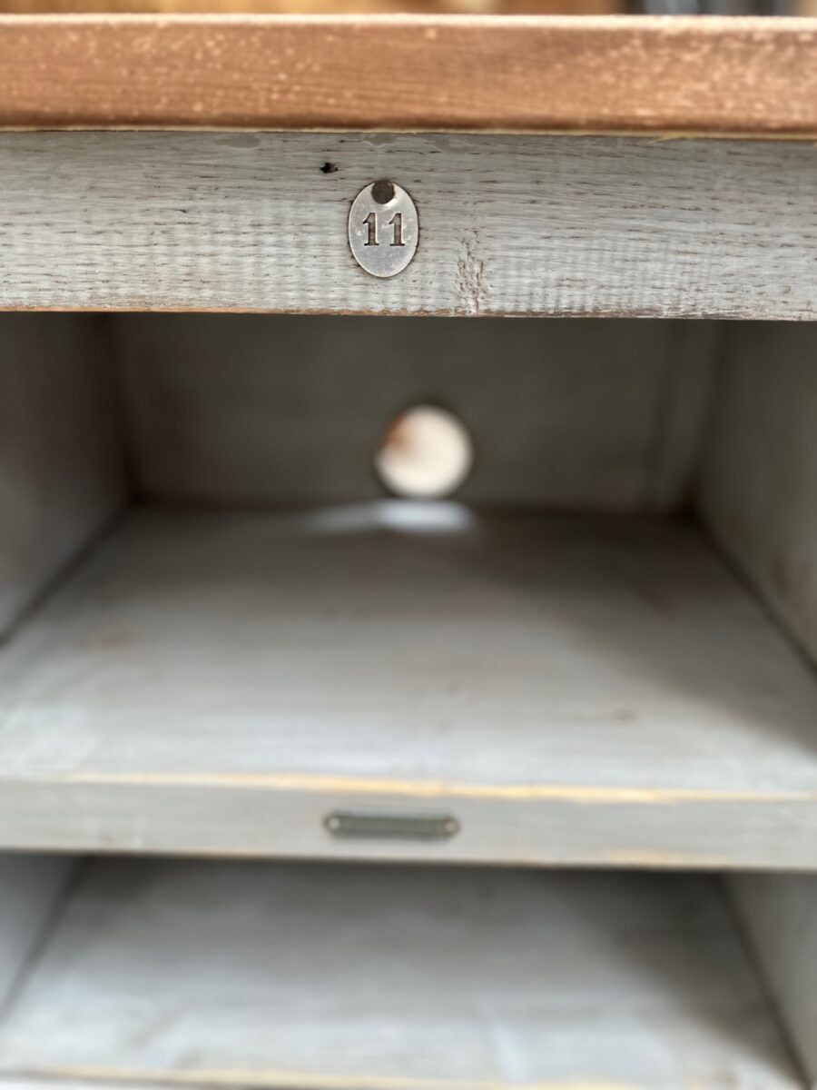 Il dispose de 8 casiers à clapets, dotés de porte étiquettes, d’une porte pleine ouvrant sur une étagère et de 2 niches ouvertes.
