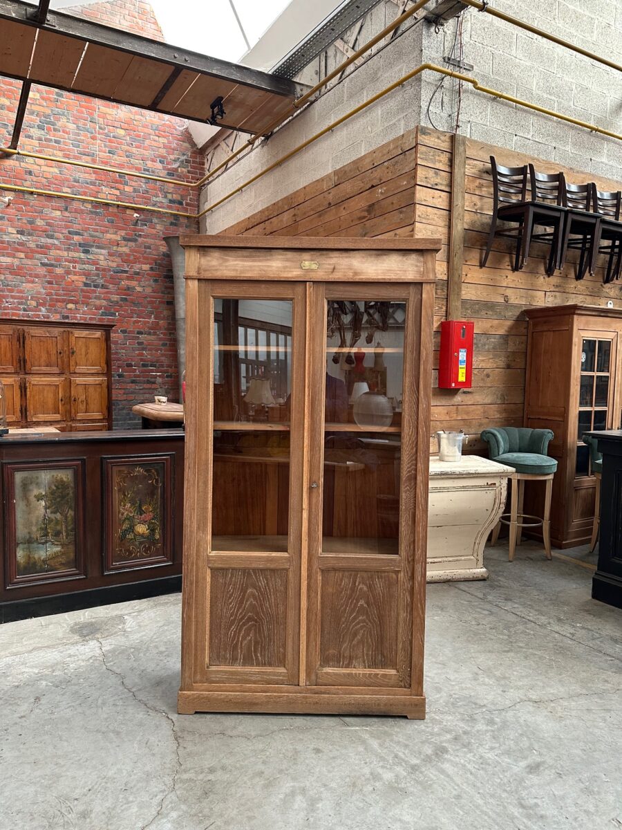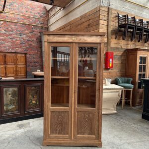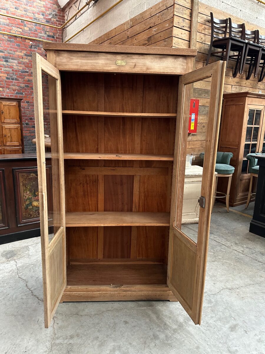 Elle dispose de deux grandes portes vitrées fermant à clef et ouvrant sur 3 étagères réglables en hauteur.