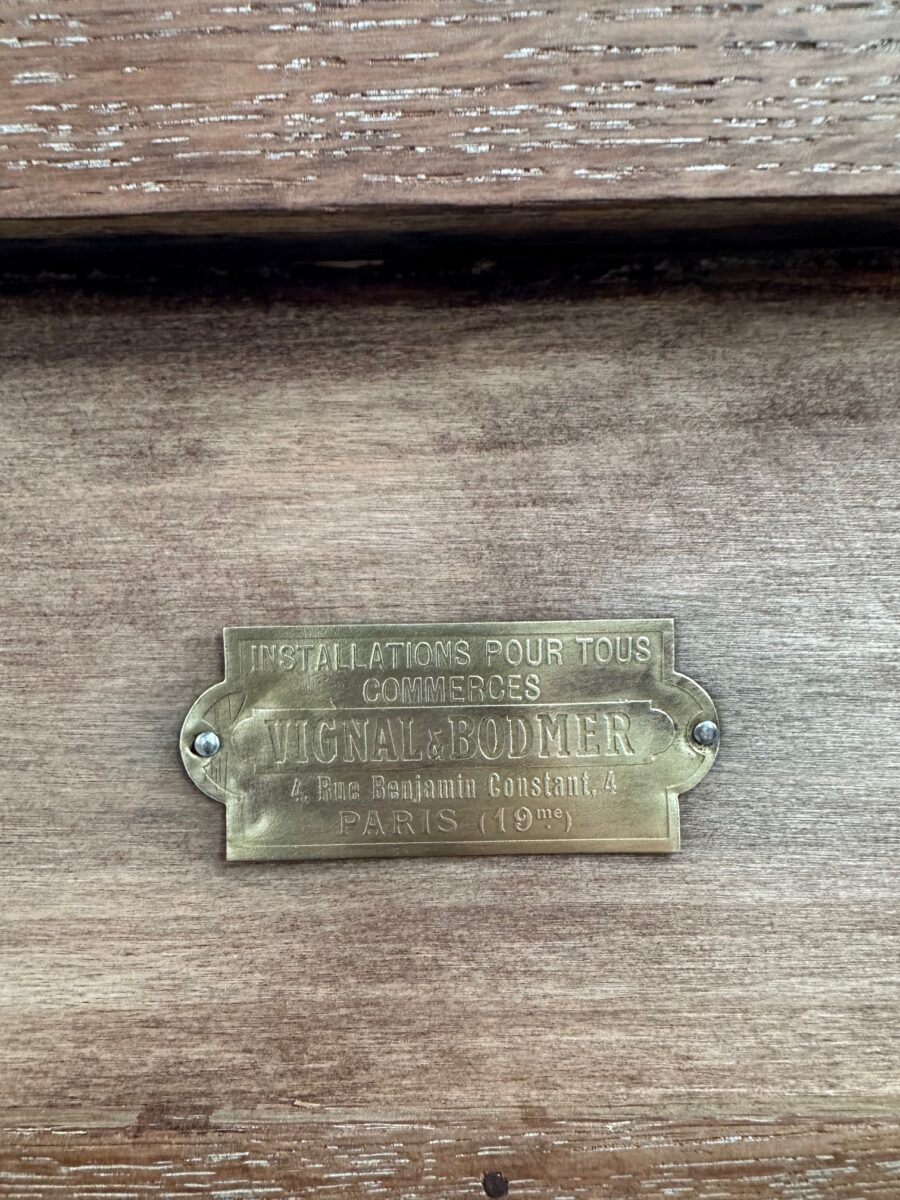 Son fronton est décoré d’une jolie plaque gravée en laiton.