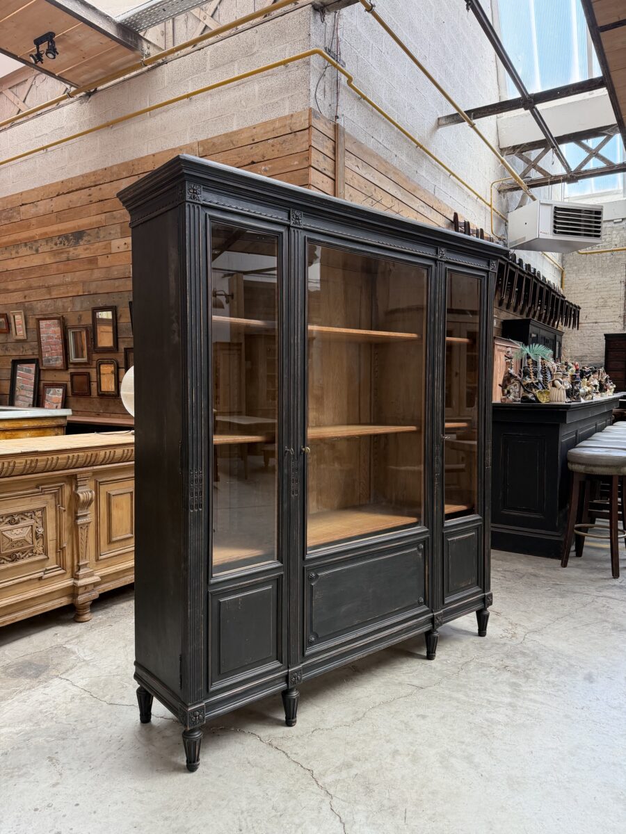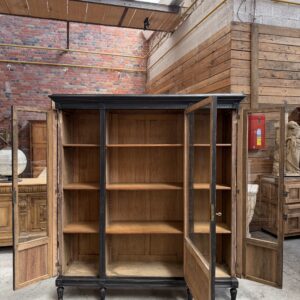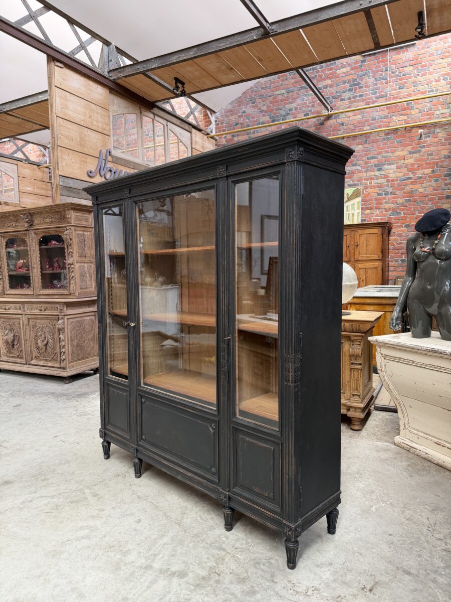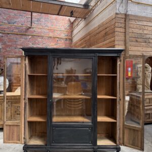 Elle dispose de 3 portes vitrées fermant à clef et ouvrant sur des étagères réglables en hauteur.