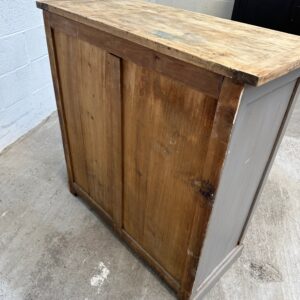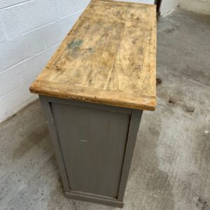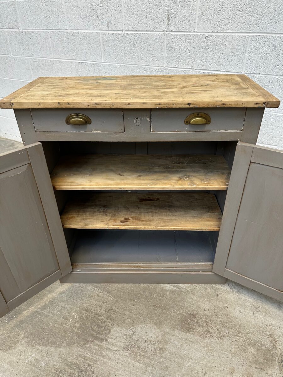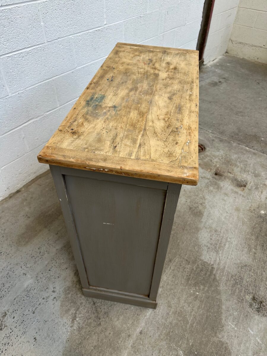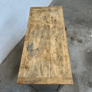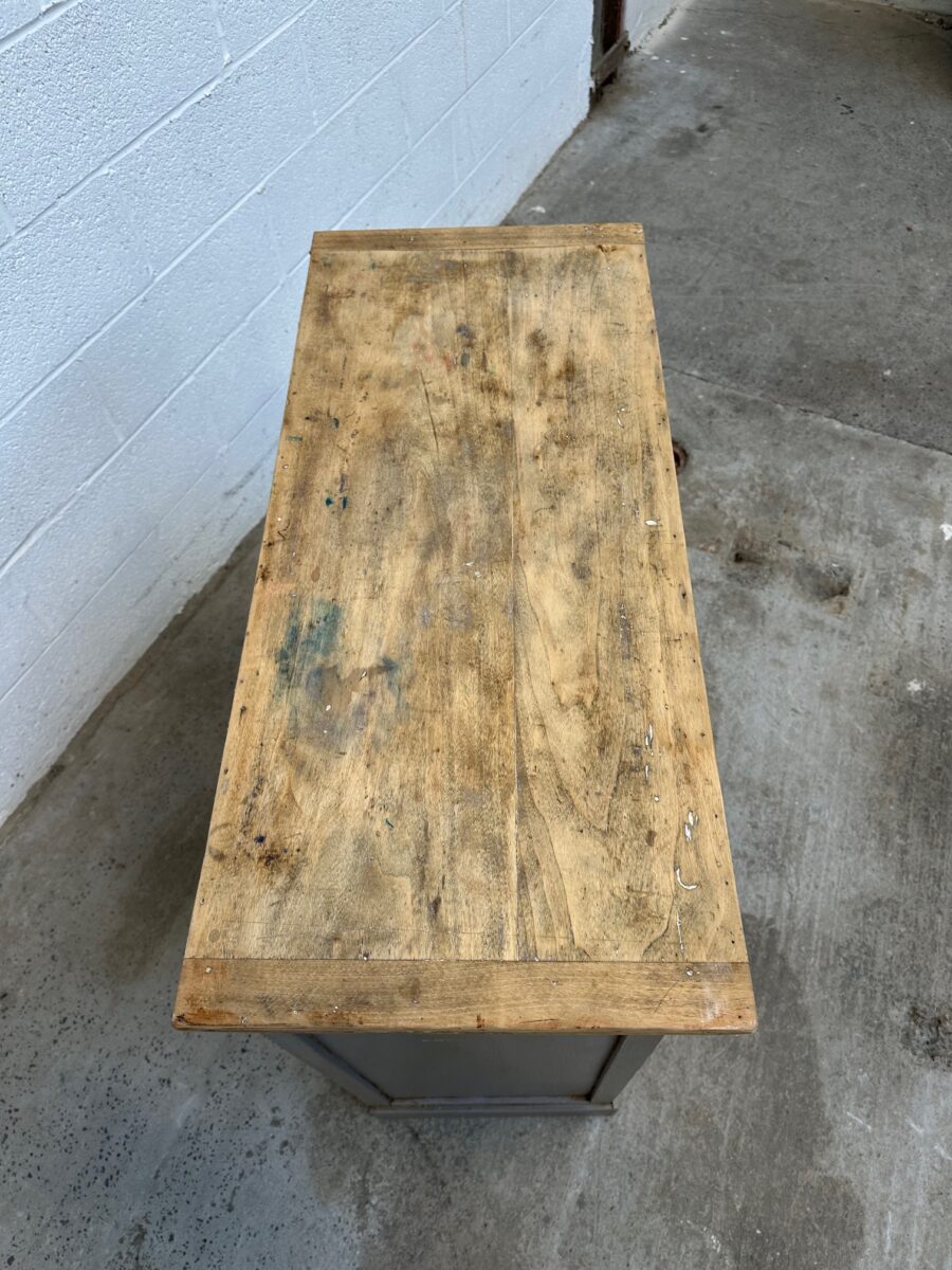 Son plateau en bois brut a conservé les traces de ses vies antérieures.