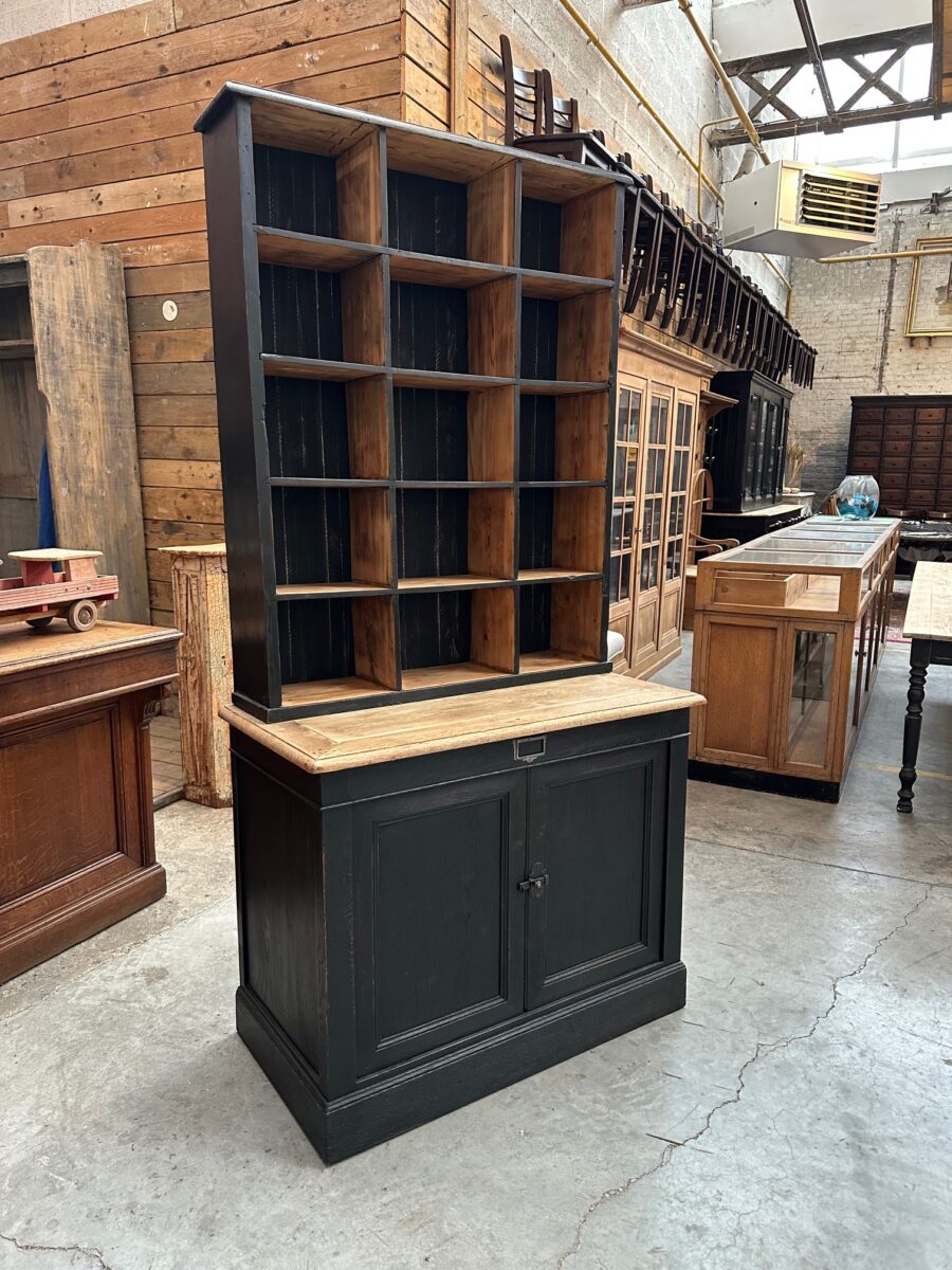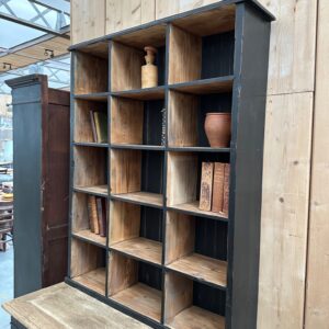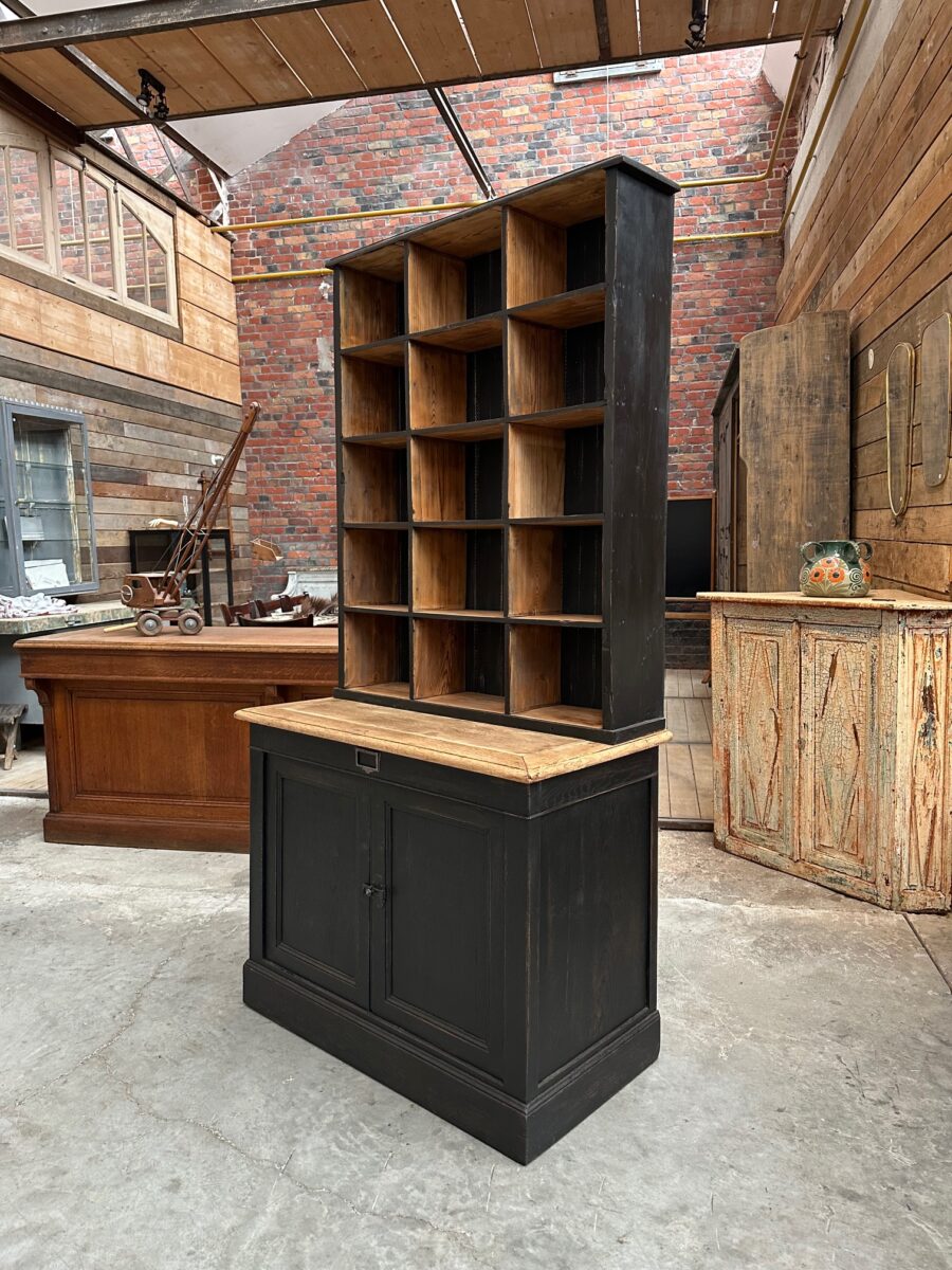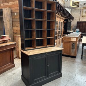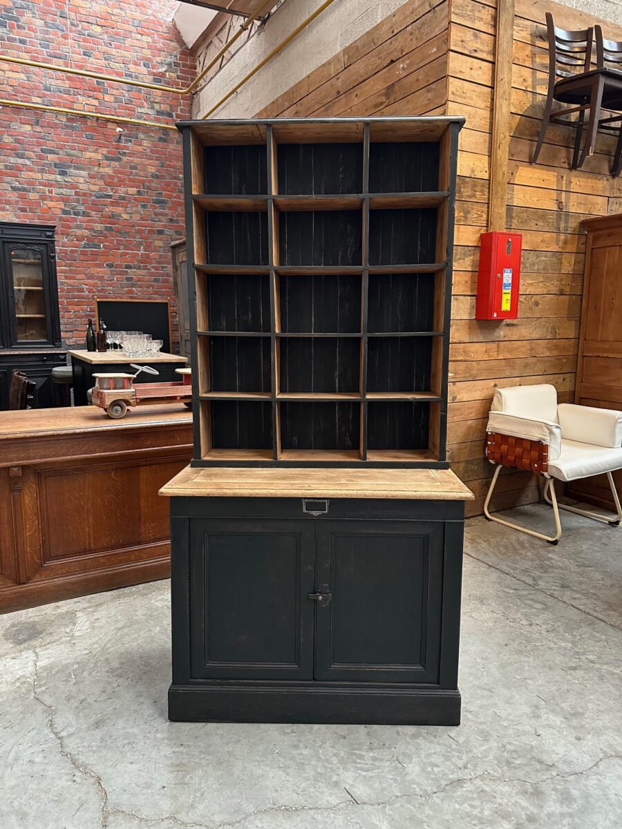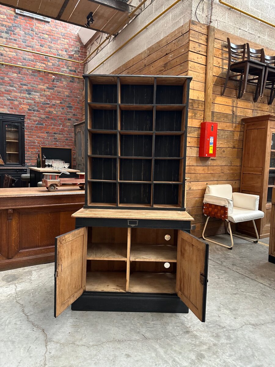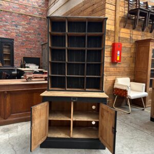 Il se compose d’une partie haute dotée de 15 casiers d’exposition et d’une partie basse disposant de 2 portes ouvrant sur 4 espaces de rangement.