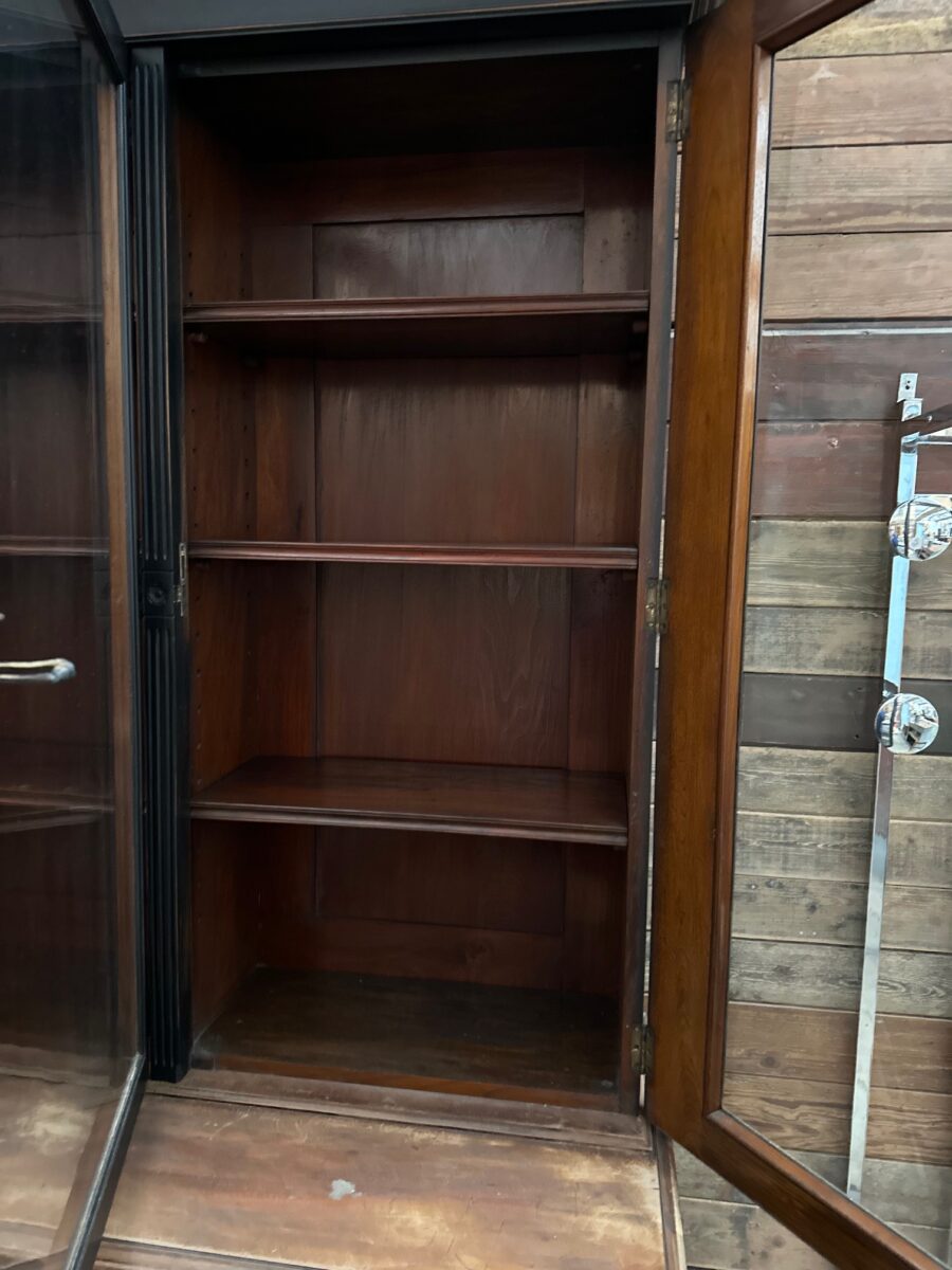 Cette ancienne vitrine en acajou a été entièrement restaurée