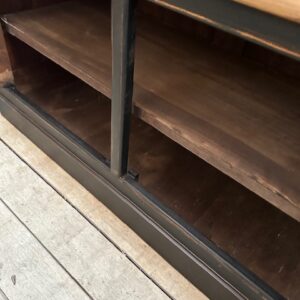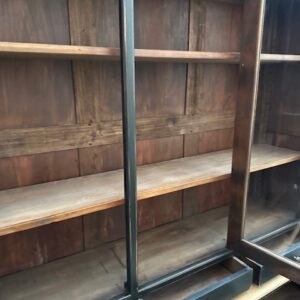 Sa partie basse dispose de 3 portes pleines ouvrant également sur des étagères.