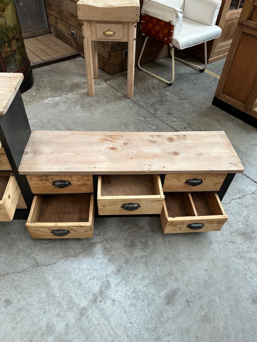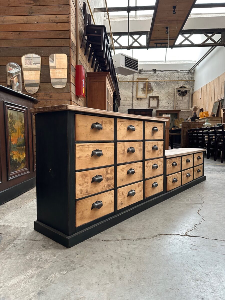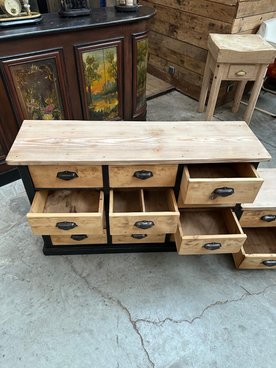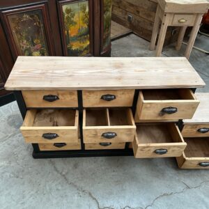 Cet ancien meuble de métier en sapin a été totalement restauré.