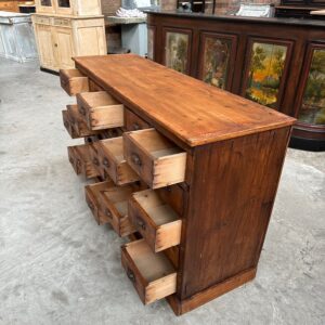 Cet ancien meuble de métier en sapin a été entièrement restauré.