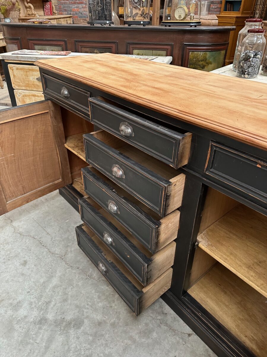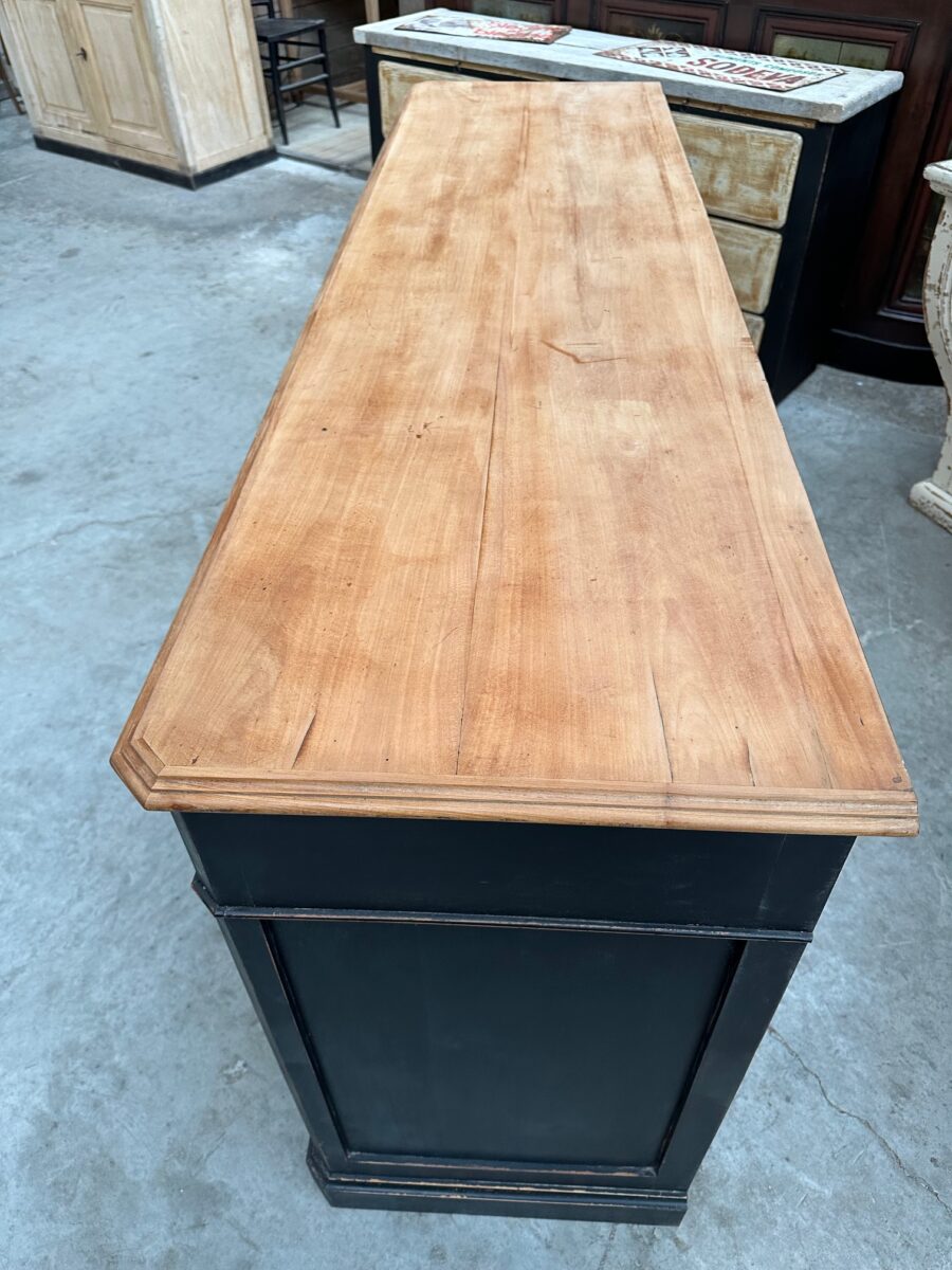 Cet ancien meuble de métier en merisier a été entièrement restauré